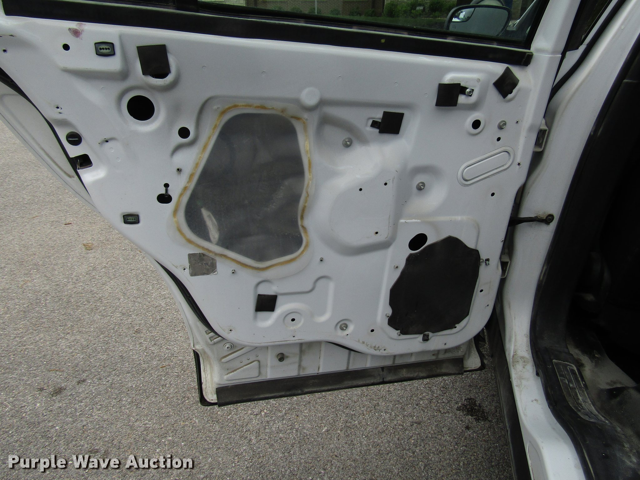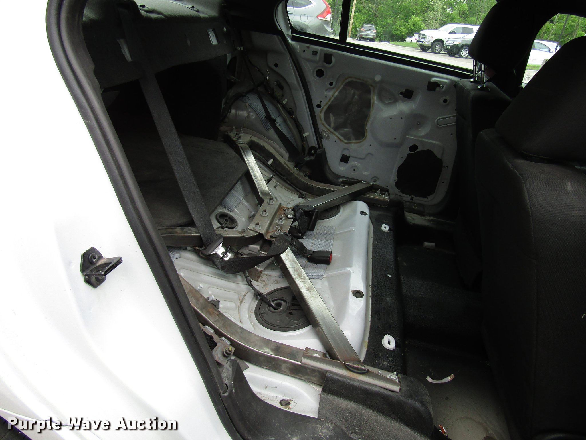 - Rear door panel and seat missing