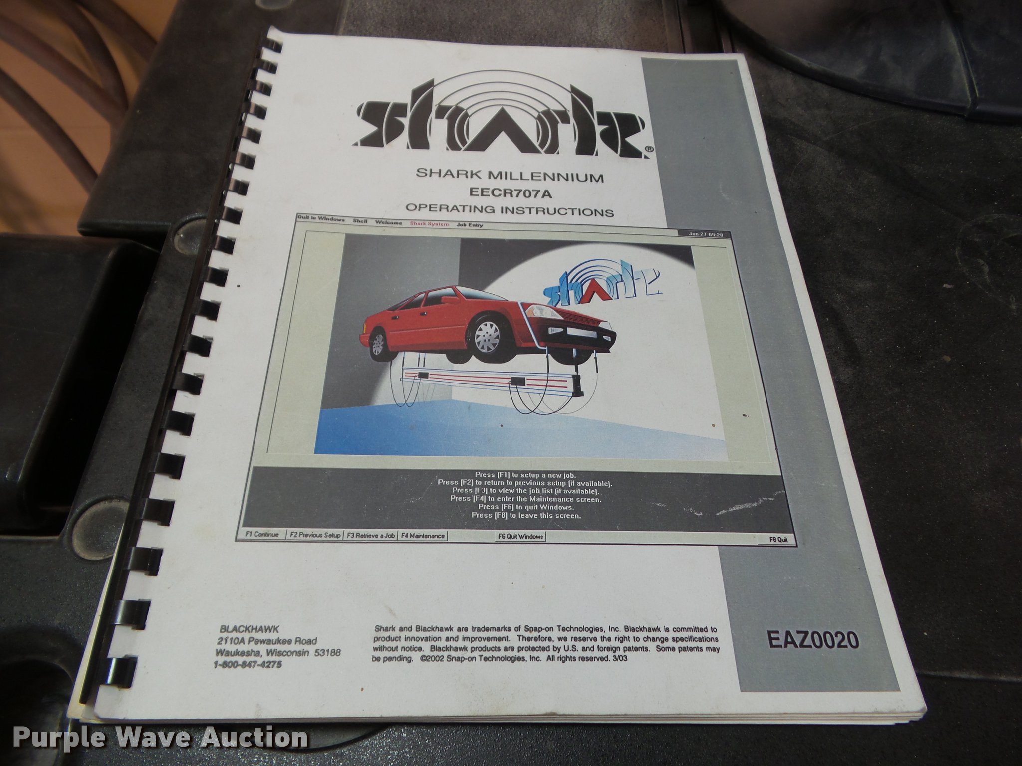 Purple Wave is selling a used Tools in Iowa. This item is a Kansas Jack Magna Rack 4 tower frame machine with Blackhawk Shark measuring system with the following: Magna Rack MR100, Serial 0479, Snap-on Blackhawk measuring system, Shark Millennium EECR707A, Serial C-05-A-6659, Shark collision beam, Serial B-14-G-730,, Assorted tools and equipment