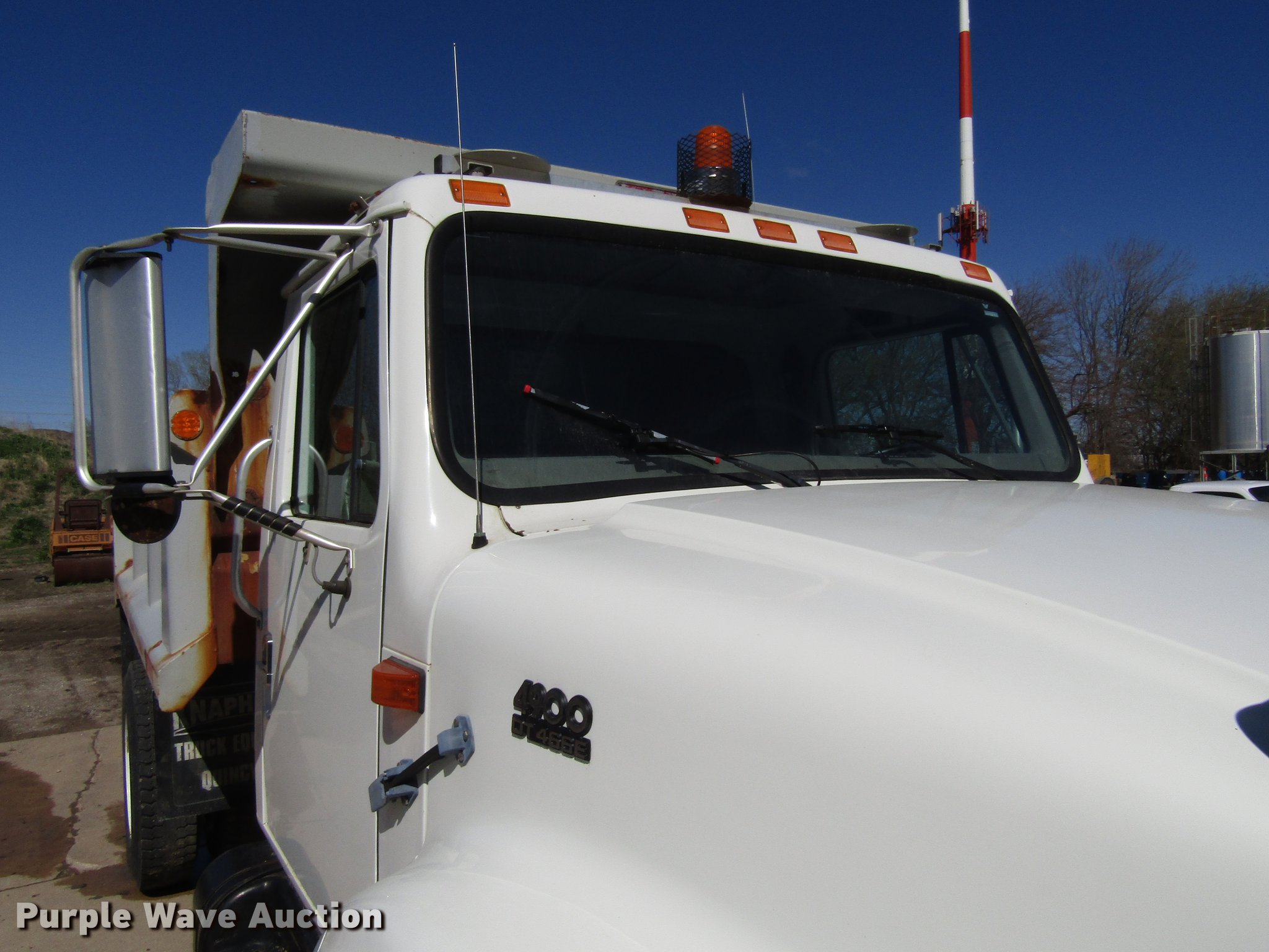 Purple Wave is selling a used Construction Dump Truck in Iowa. This item is a 1999 International 4900 dump truck with the following: 57,563 miles on odometer, International DT466 7.6L L6 diesel engine, Six speed manual transmission, Single axle, Heat, AM/FM, Suspension seat, 10'L x 96"W steel dump bed, 34" side height, Single ram hoist, Manual end gate, Single fuel tank, Spring suspension, Air brakes, 152" wheelbase, 11R22.5 tires, GVWR 33,000 lbs