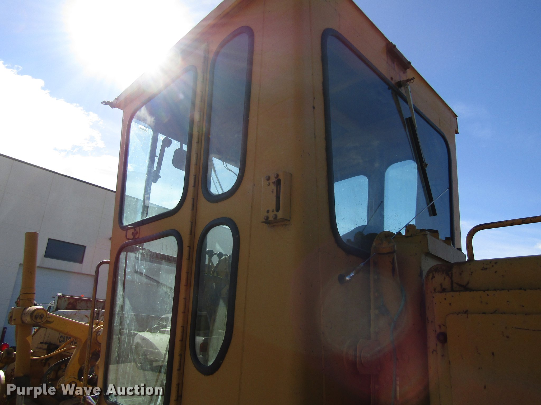 Purple Wave is selling a used Motor Grader in Iowa. This item is a 1976 Caterpillar 120G motor grader with the following: 43 hours on meter, Caterpillar 3304PC four cylinder diesel engine, Powershift transmission, 6F-6R gears, Enclosed cab, Nine hydraulic control valves, 12'W moldboard, Side shift, 14.00-24 tires, Tire chains, Serial 78P28263
