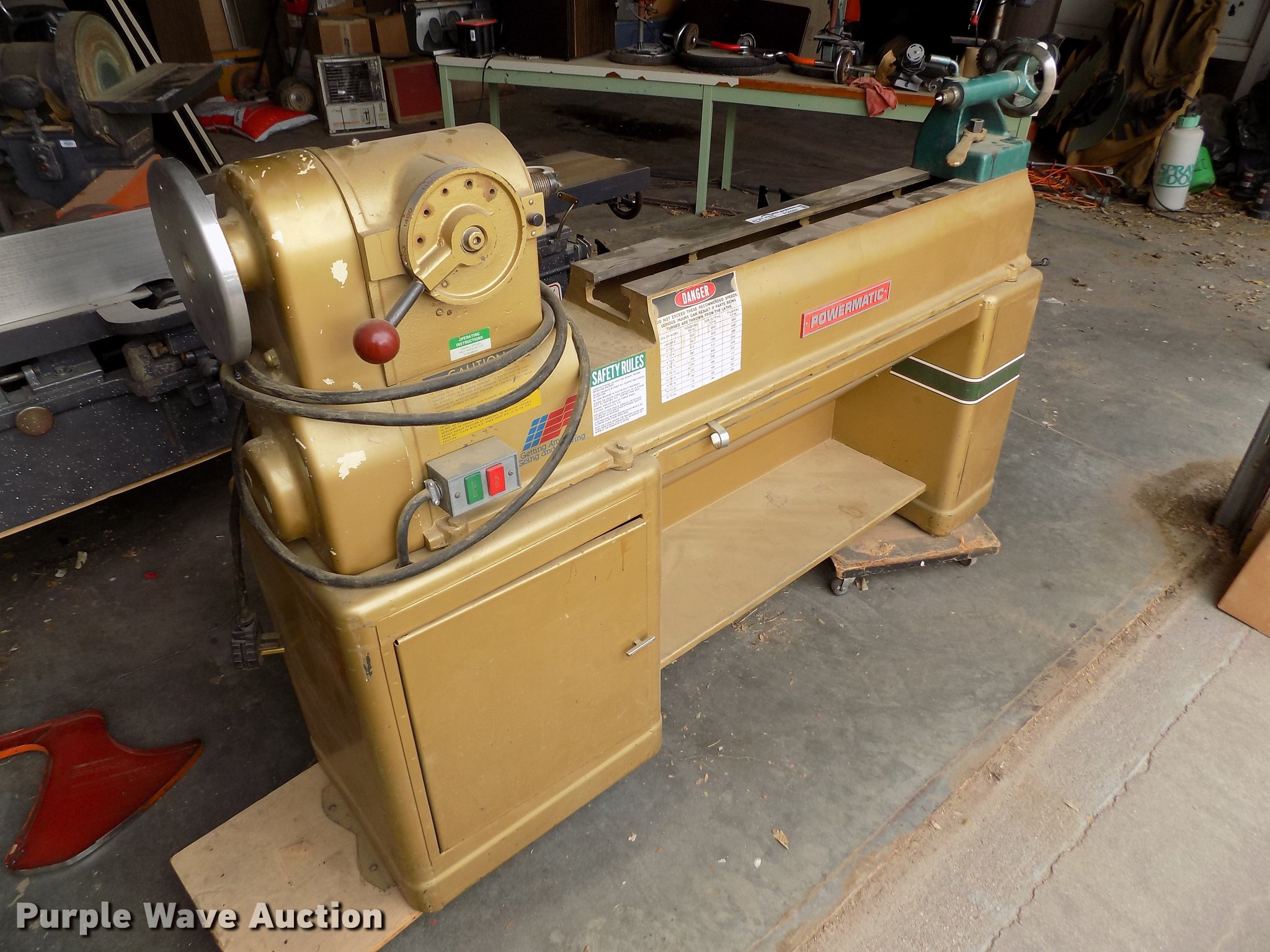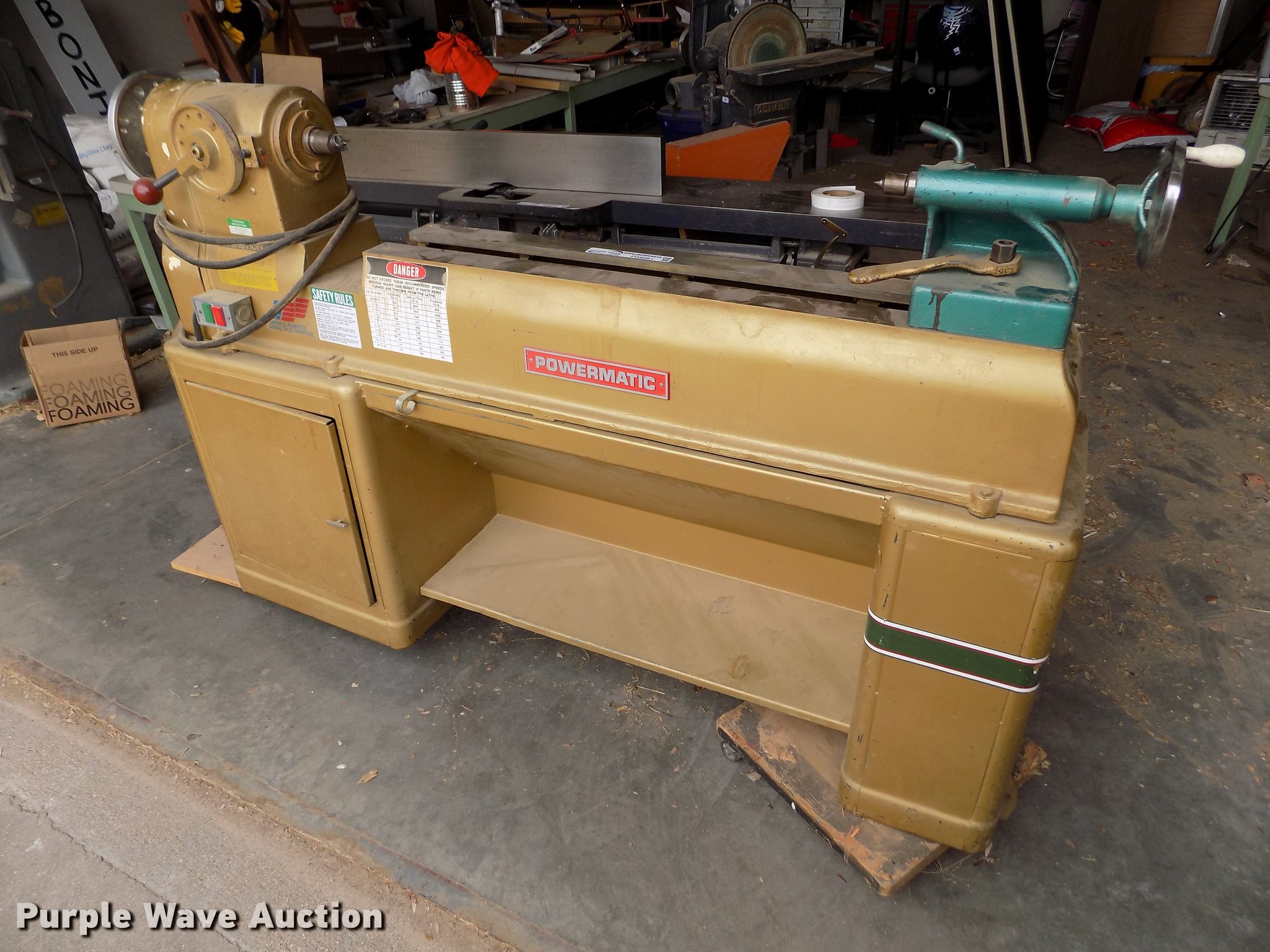 Purple Wave is selling a used Tools in Kansas. This item is a Powermatic 90 lathe with the following: Three phase, 220V, 12" swing over bed, 17" swing over gap, 8" swing over tool rest, 38" between centers, Serial 8290107