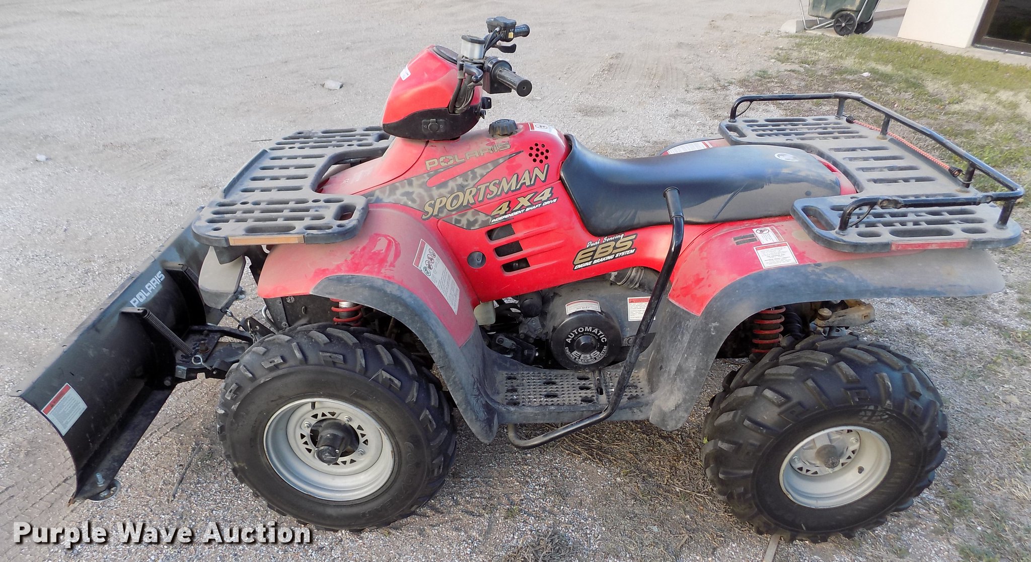Purple Wave is selling a used ATV in Kansas. This item is a 1999 Polaris Sportsman 500 ATV with the following: Unknown miles on odometer, Odometer has been replaced, One cylinder gas engine, Automatic transmission, Four wheel drive, Electric start, Glacier snow plow, 48"W, 25x8.00-12 front tires, 25x11-10 rear tires
