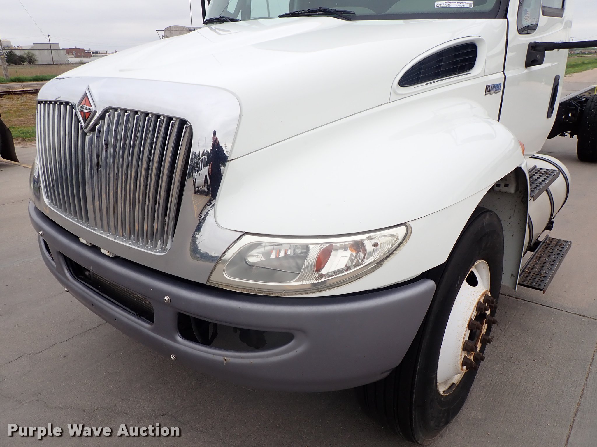 Purple Wave is selling a used Truck Chassis in Kansas. This item is a 2014 International DuraStar 4300 truck cab and chassis with the following: 122,403 miles on odometer, International MaxxForce 7 6.4L V8 diesel engine, Automatic transmission, Single axle, AC and heat, Cruise, Single fuel tank, Spring suspension, Hydraulic brakes, 11R22.5 tires, Regeneration system issues