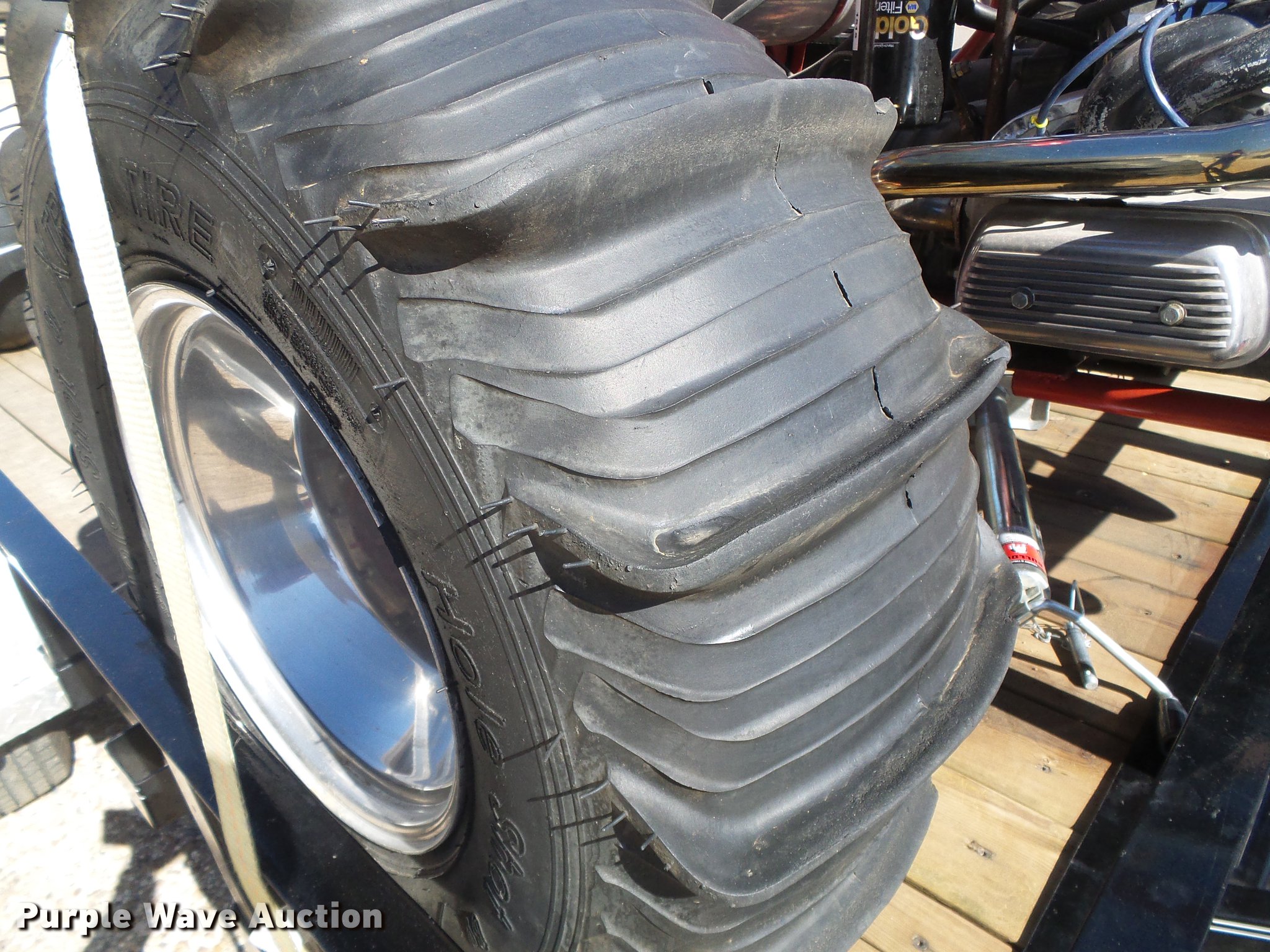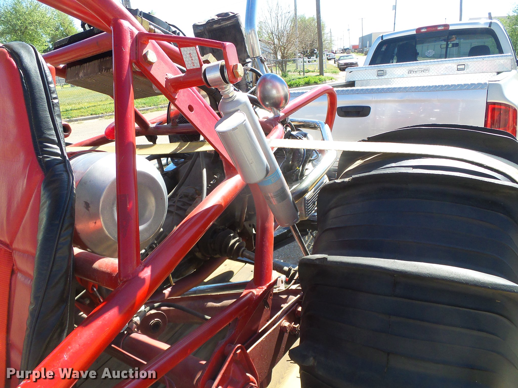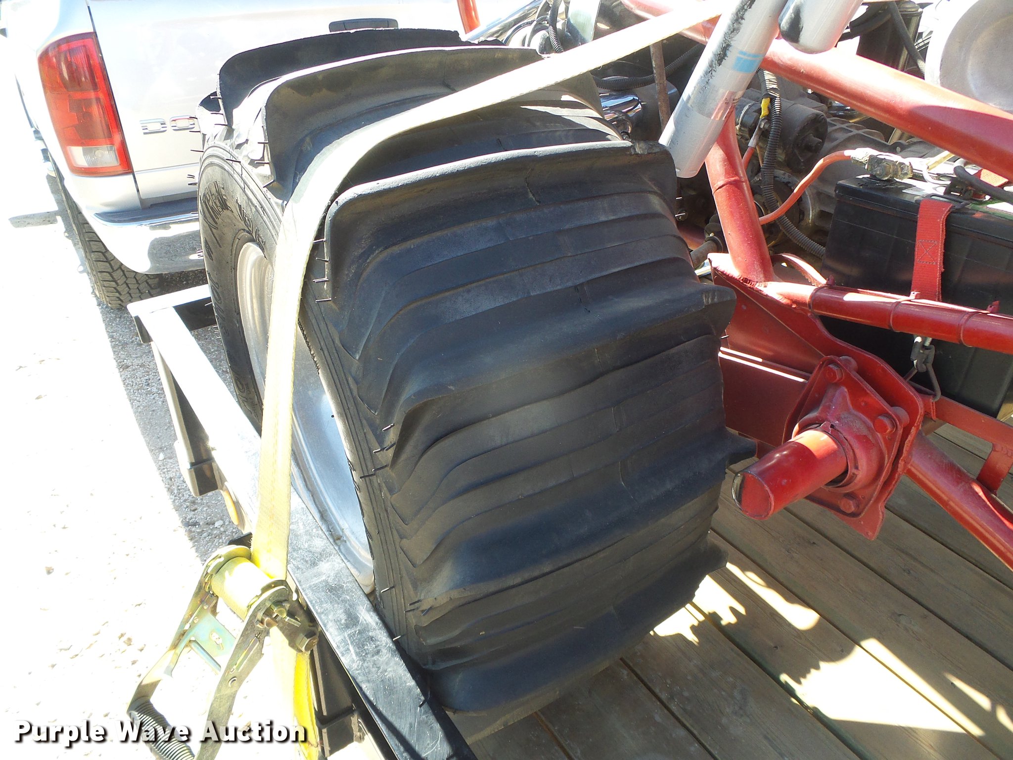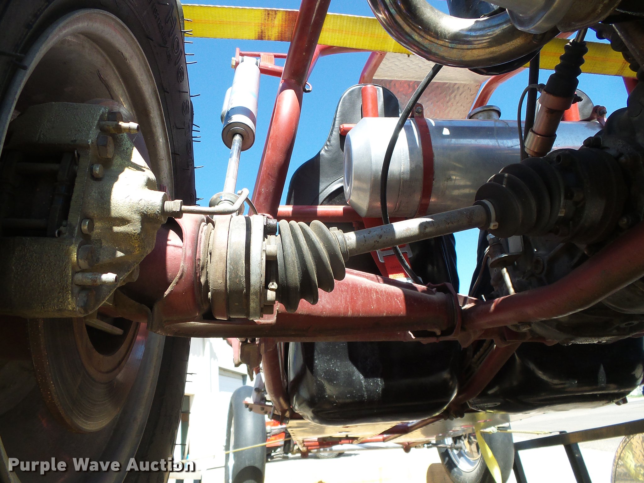Purple Wave is selling a used Sporting Goods in Oklahoma. This item is a VW dune buggy and trailer with the following: Four cylinder gas engine, IRS transmission, Lights, Aluminum wheels, 6.80-15 smooth front tires, 13.50-15 paddle track rear tires, (4) Cooper Cobra P275/60R15 tires, (3) helmets