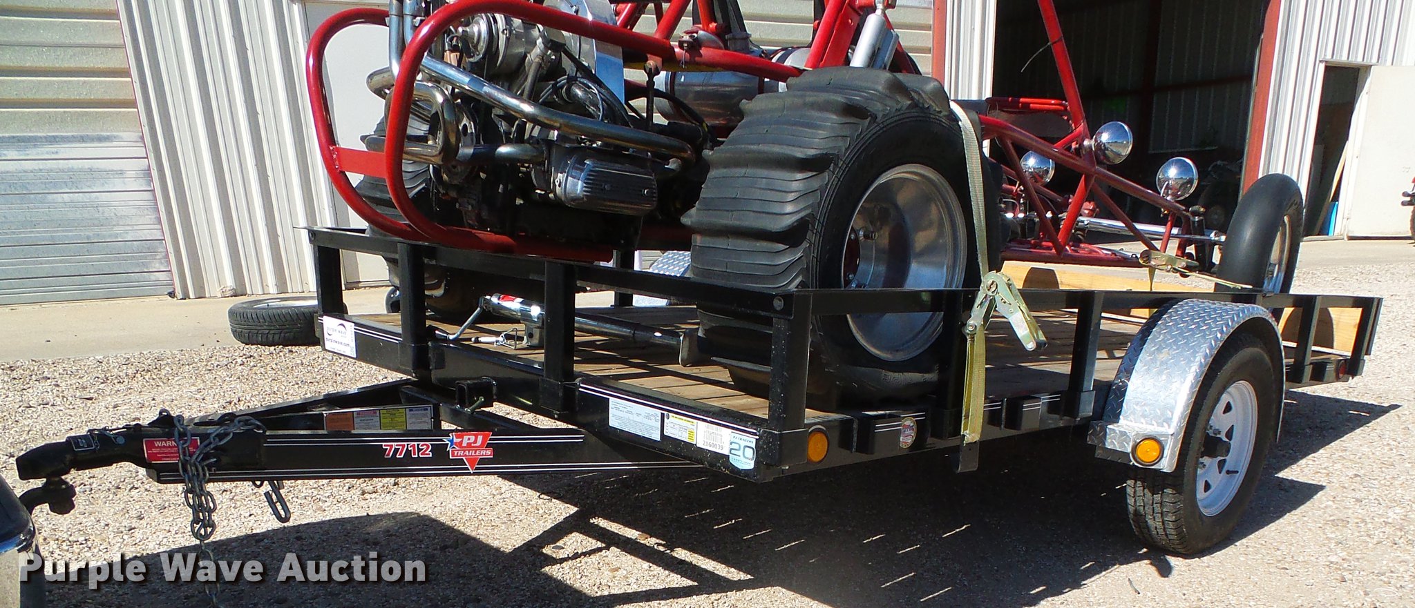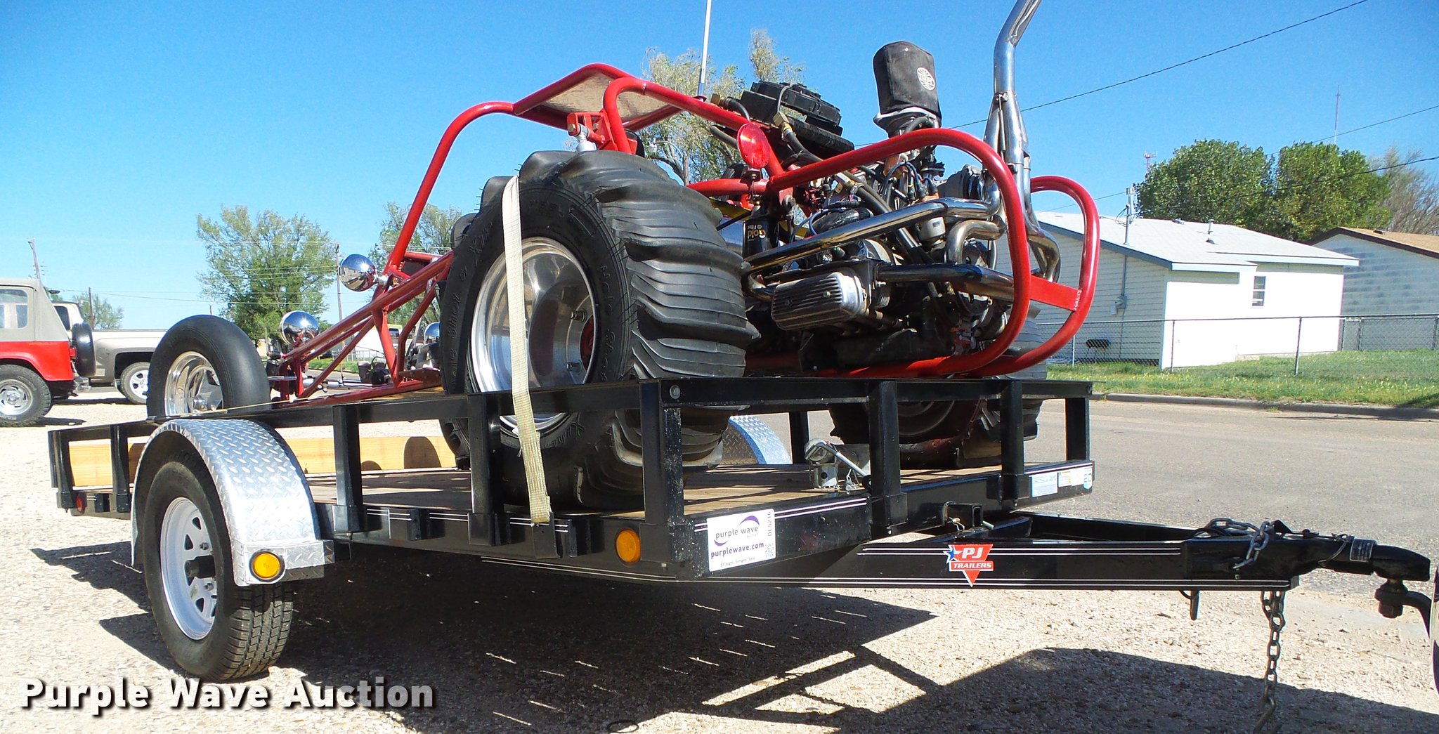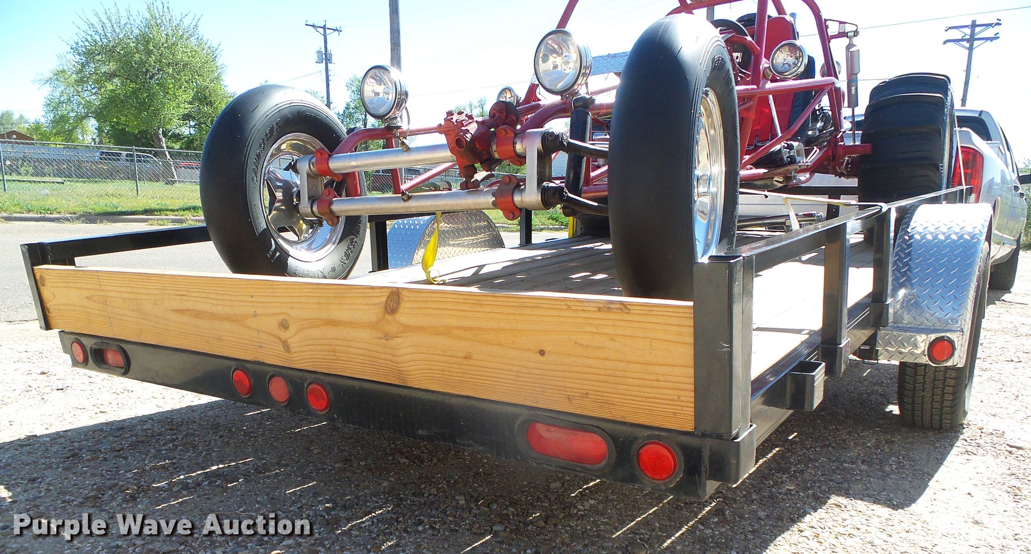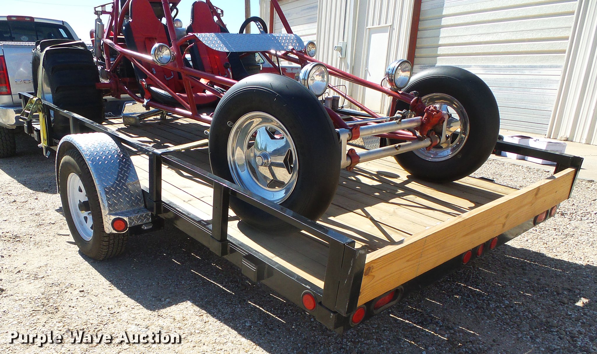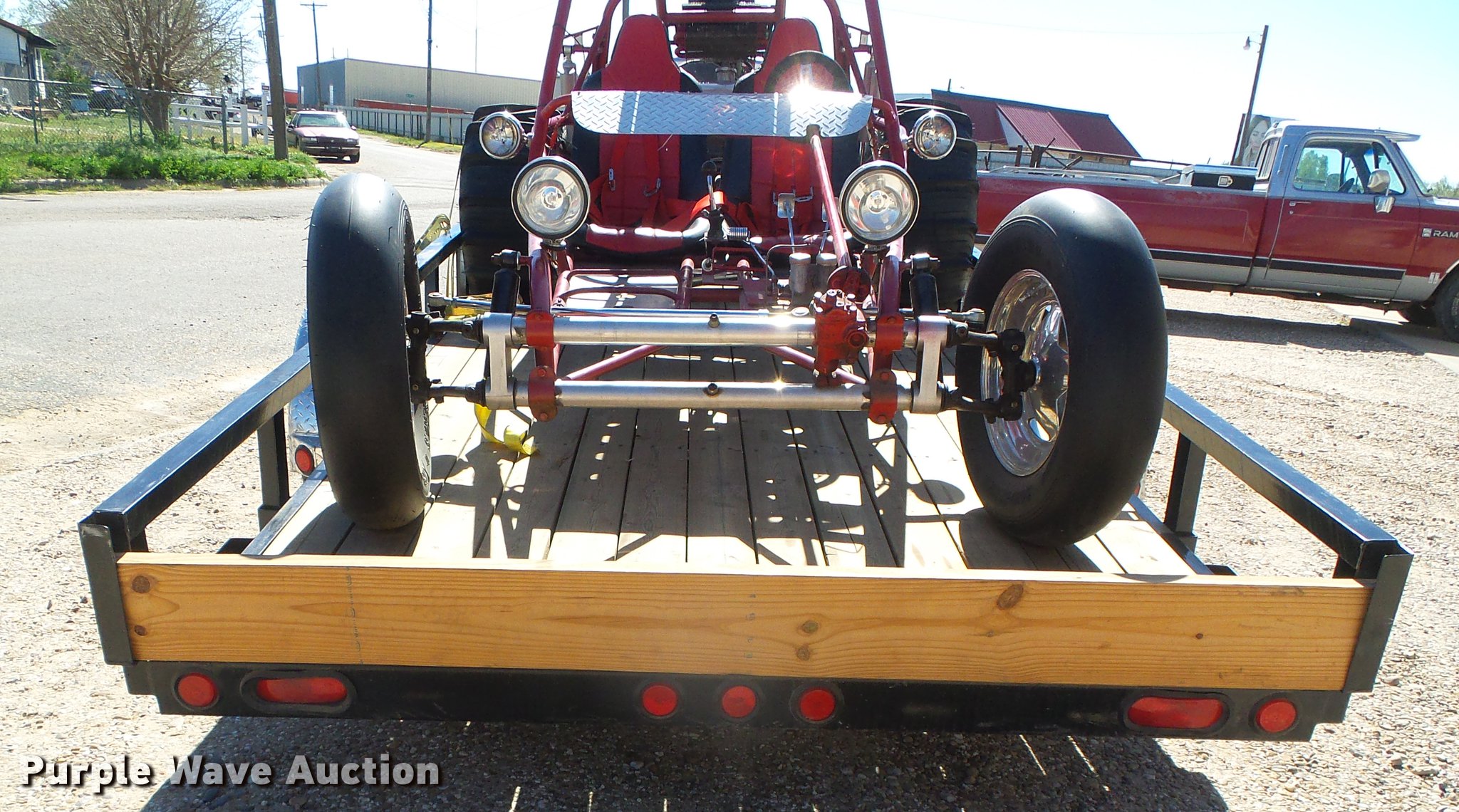 VW dune buggy and trailer. Four cylinder gas engine, IRS transmission, Lights, Aluminum wheels, 6.80-15 smooth front tires, 13.50-15 paddle track rear tires, (4) Cooper Cobra P275/60R15 tires, (3) helmets. 2011 PJ 7712 tilt deck trailer 15' overall length, 80"W, Wood deck, 2" ball hitch, Spring suspension, ST205/75R15 tires. Transfer of ownership documentation will be a bill of sale. 4P5U71215B2160039. 324 SW 2nd St. Guymon, OK 73942