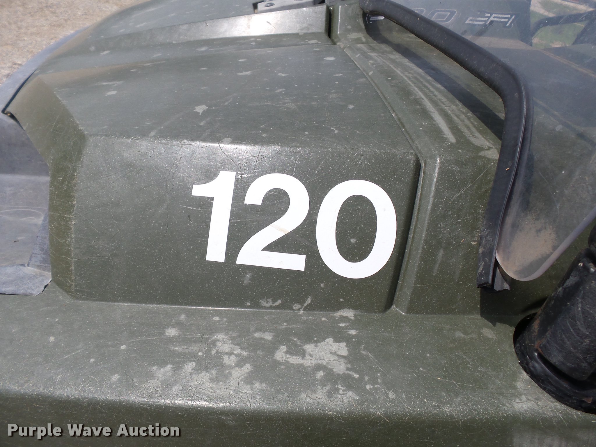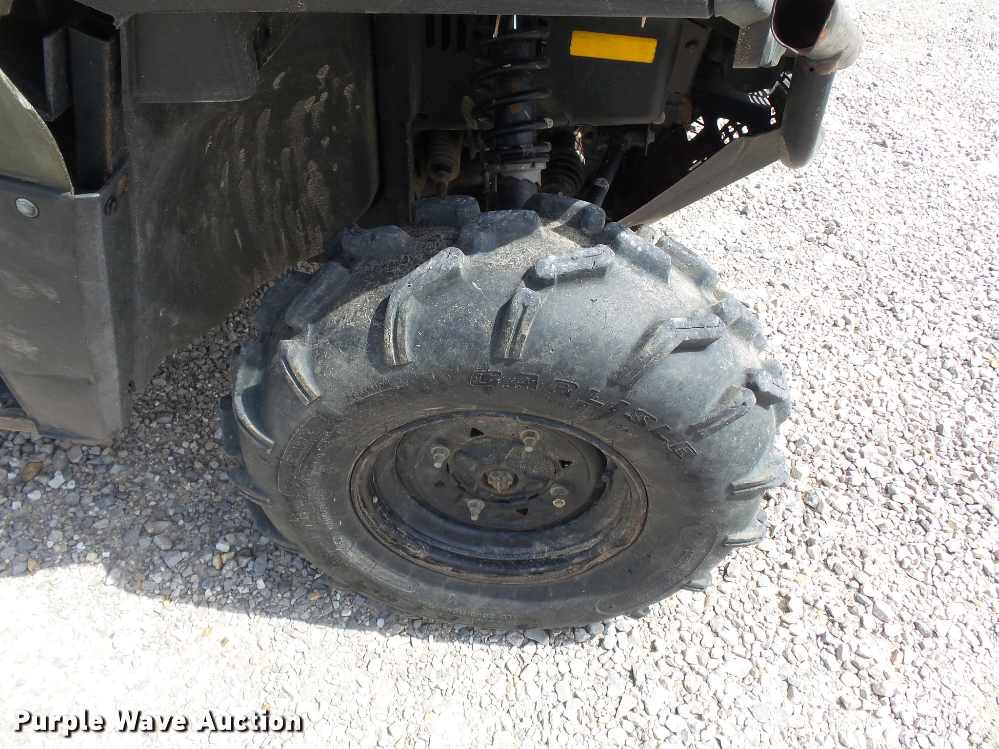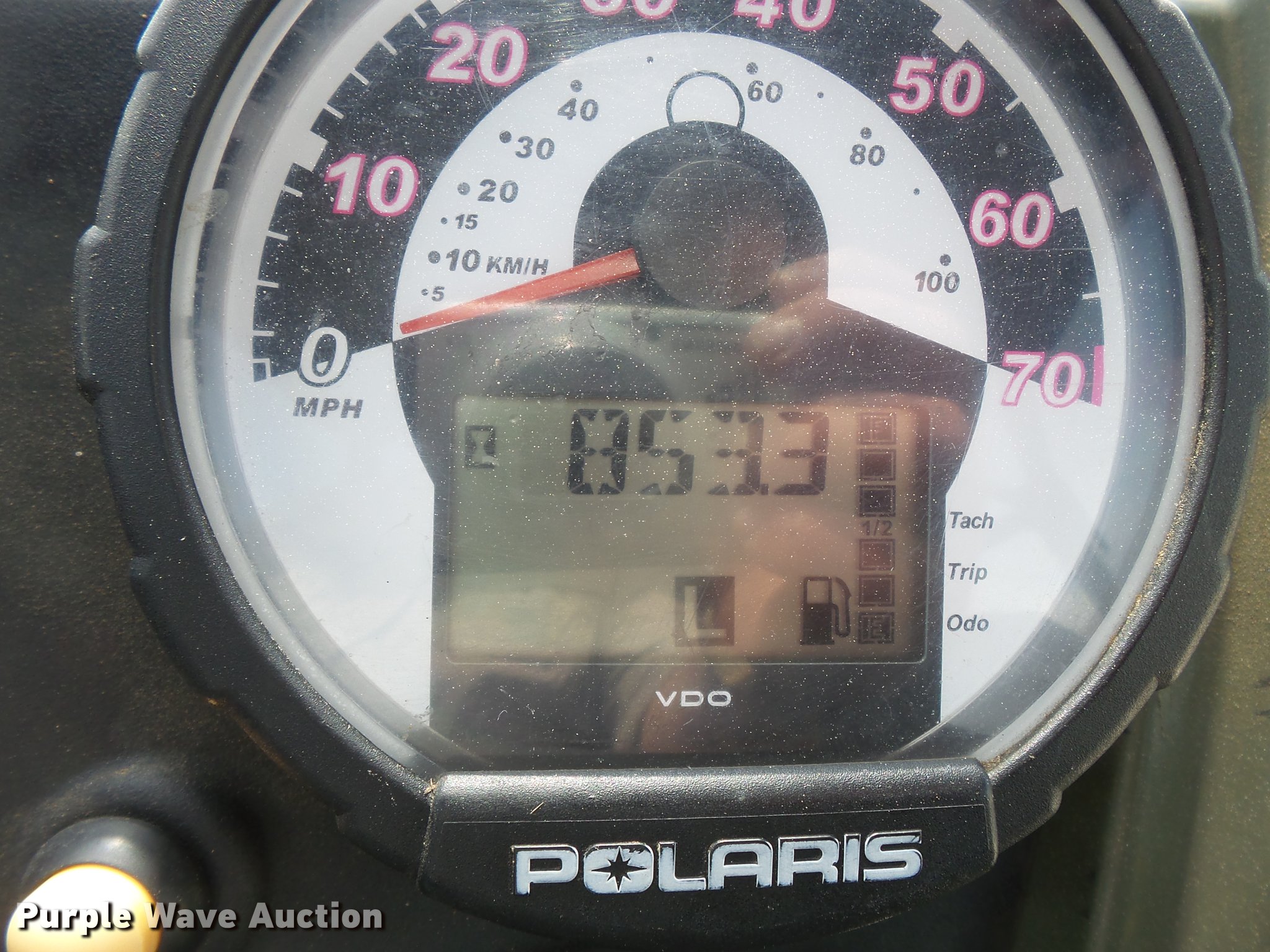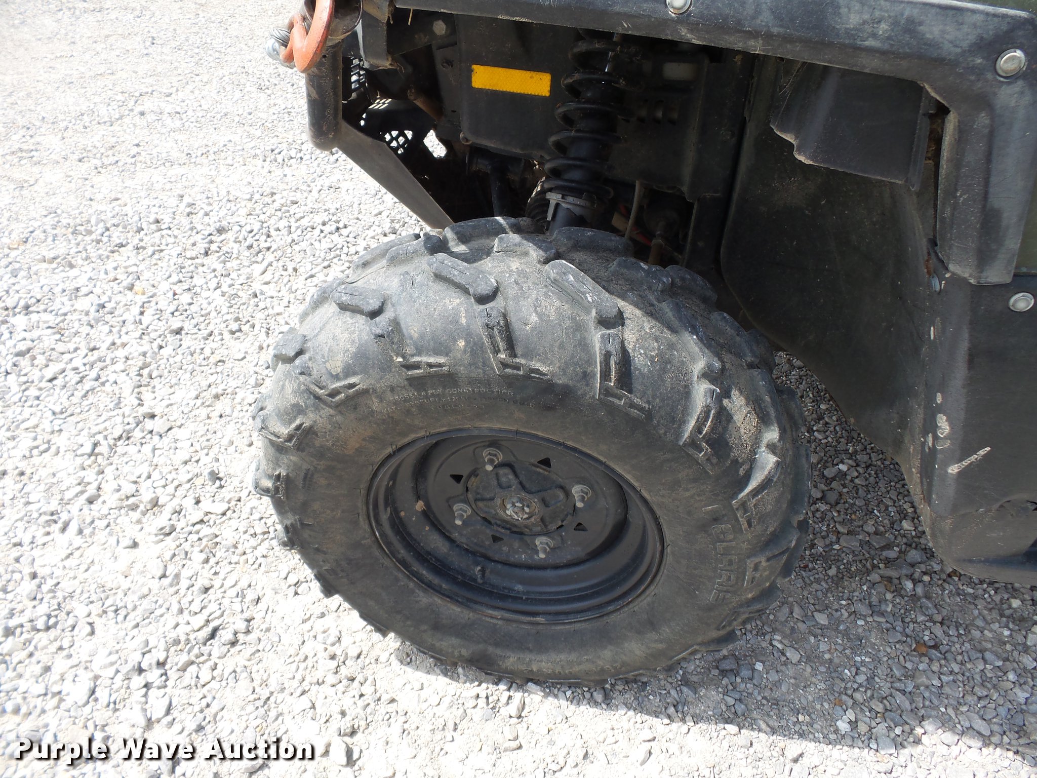 Purple Wave is selling a used Utility Vehicle in Missouri. This item is a 2010 Polaris Ranger 800 utility vehicle with the following: 4,255 miles on odometer, 853 hours on meter, Two cylinder gas engine, CVT transmission, 2F-1R gears, All wheel drive, Two seats, Canopy, 44"L x 55"W manual dump bed, Winch, 26 x 9.00R12 front tires, 26 x 11.00R12 rear tires, Unit# 120