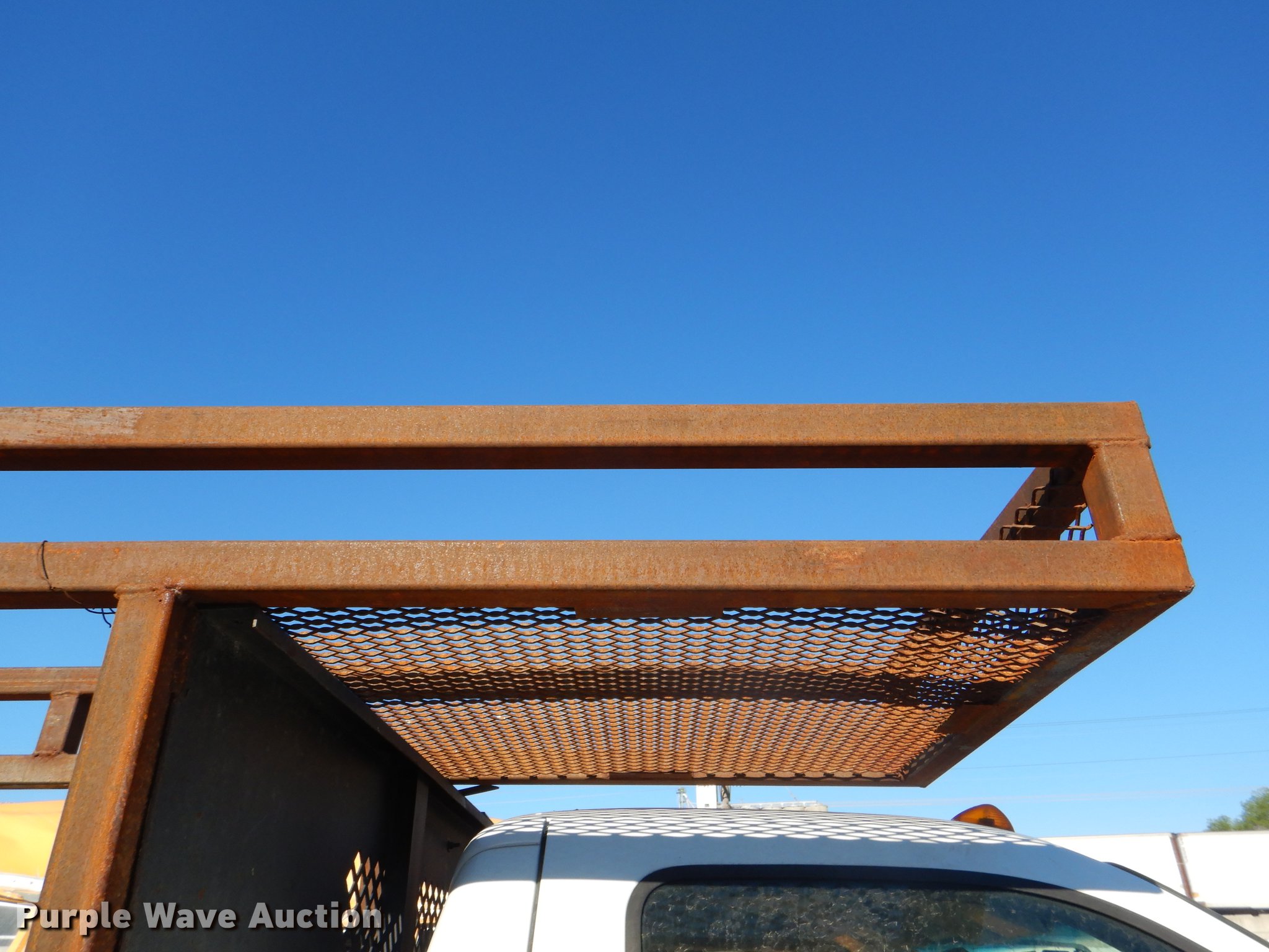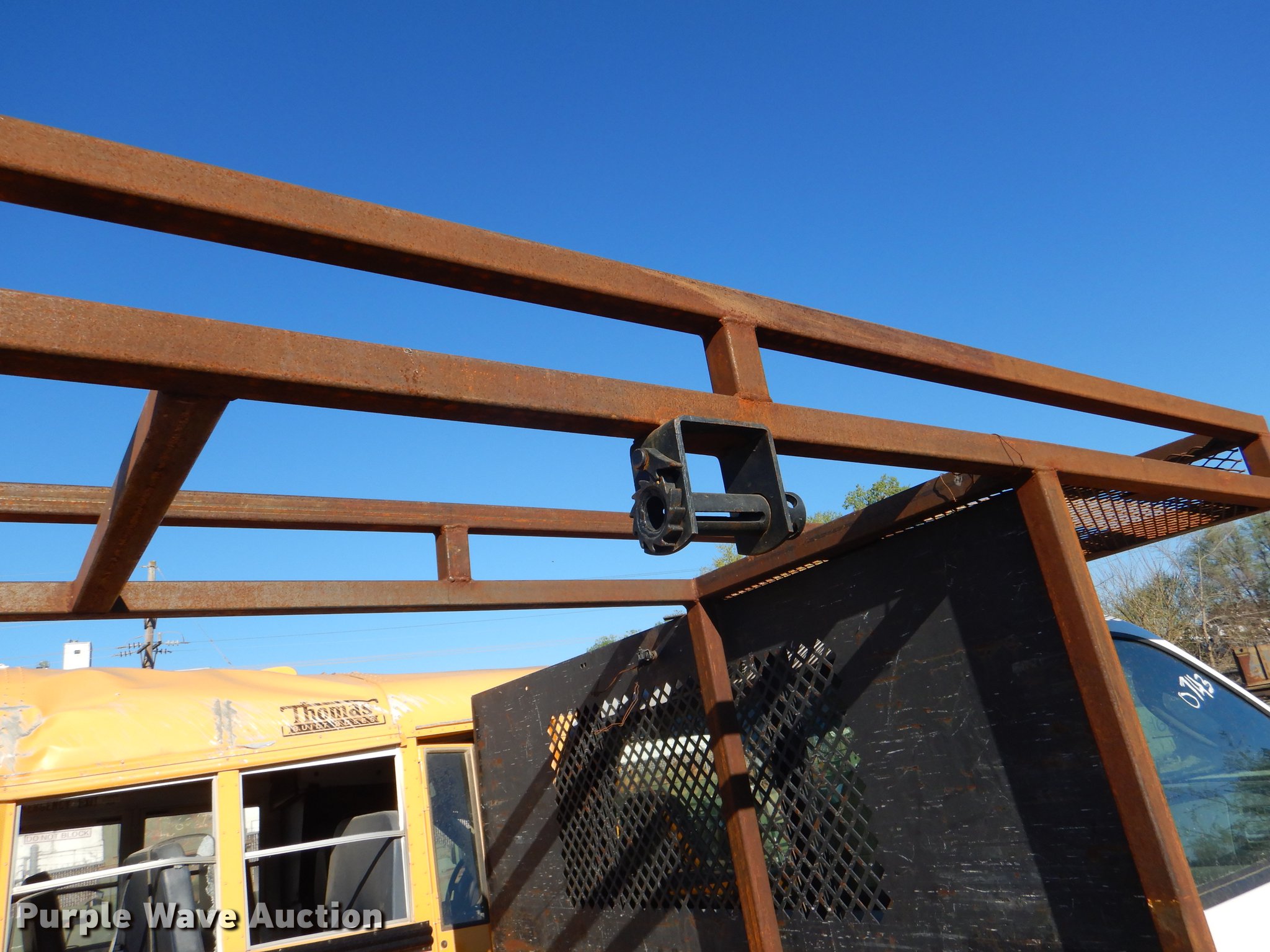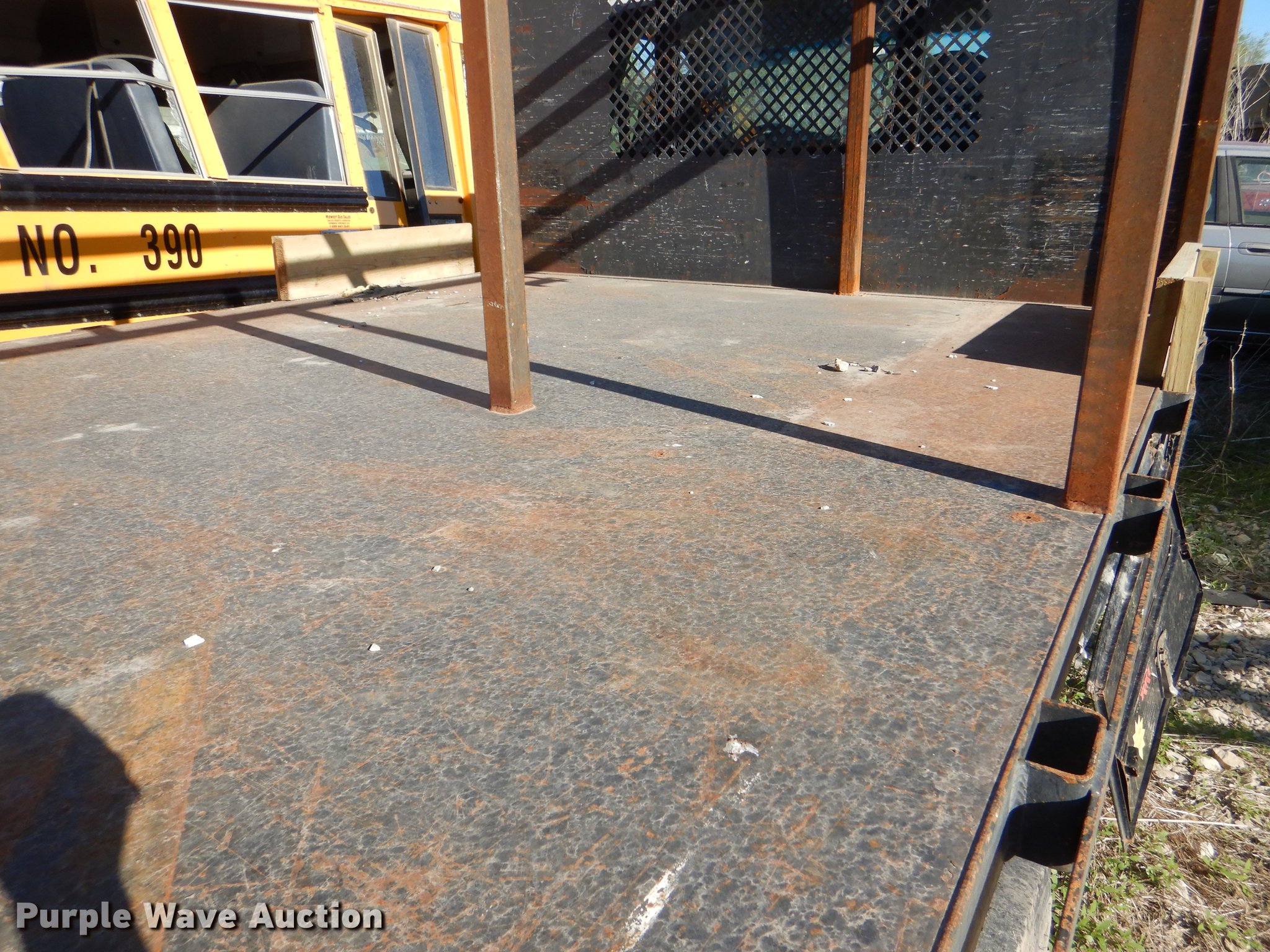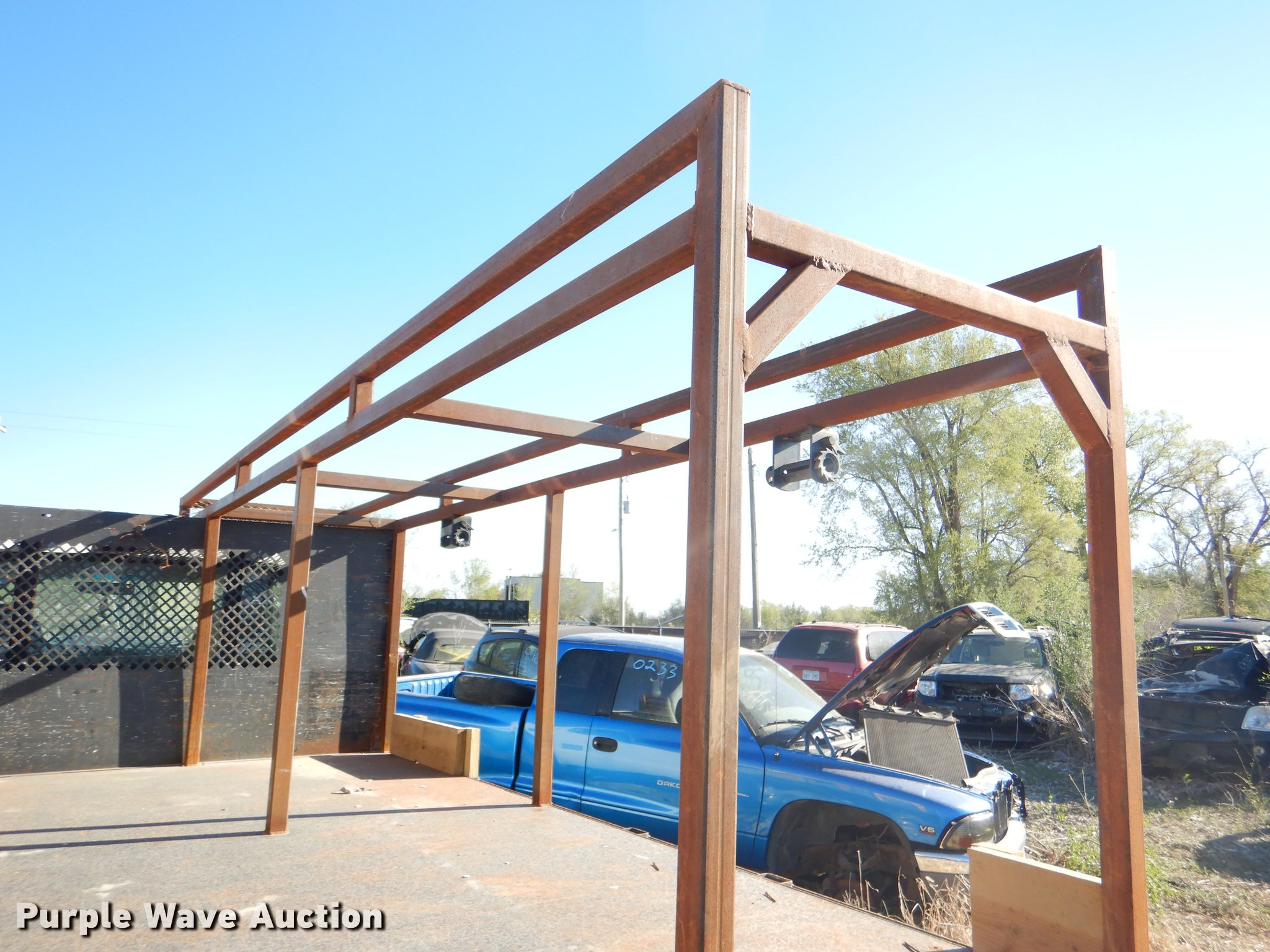 Flatbed. 12'L x 92"W, Stake pockets, Toolboxes, Utility rack, Receiver hitch, Trailer wiring, One toolbox damaged, Unit will be removed from truck prior to auction. Junction City, KS 66441