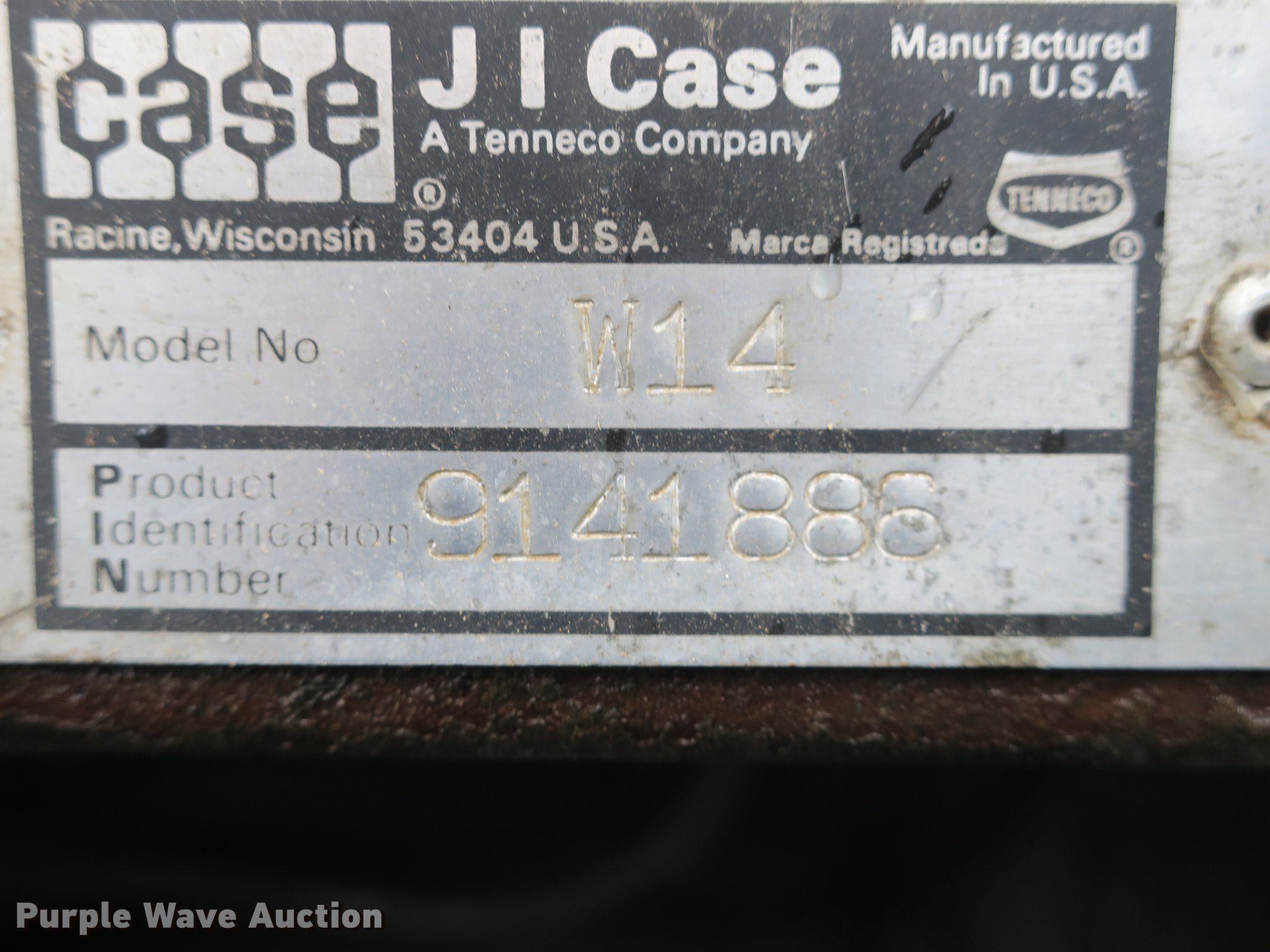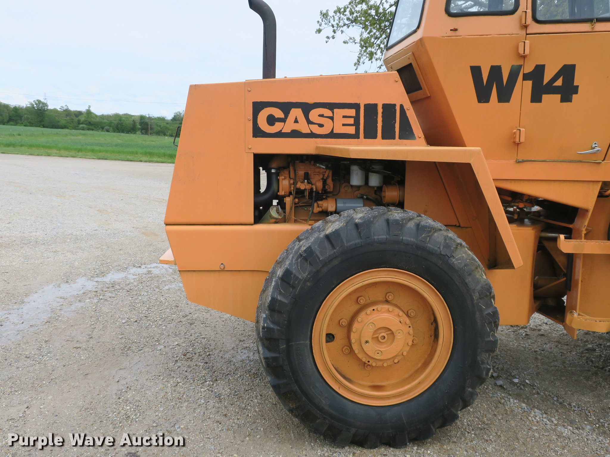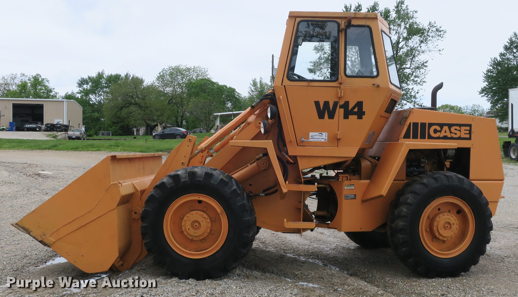 Purple Wave is selling a used Wheel Loader in Missouri. This item is a 1981 Case W14 wheel loader with the following: 4,086 hours on meter, Case four cylinder diesel engine, Two speed hydrostatic transmission, Enclosed cab, Suspension seat, Front work lights, 85"W general purpose bucket, Bolt-on cutting edge, 15.5-25 tires, Serial 9141888