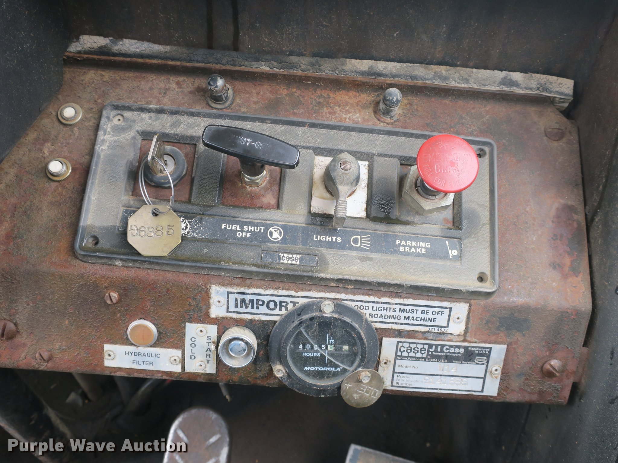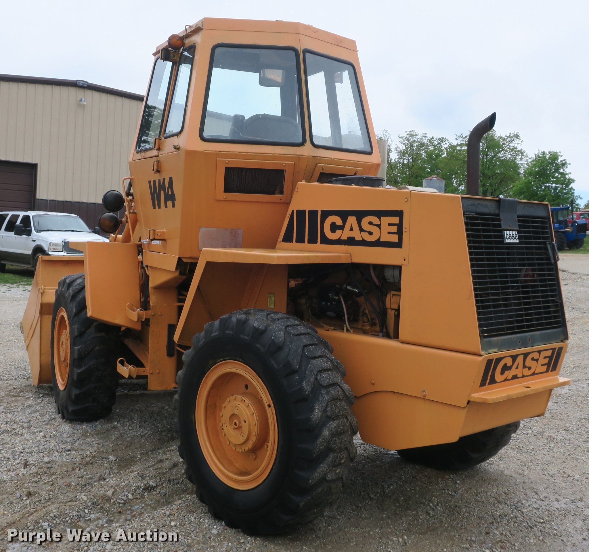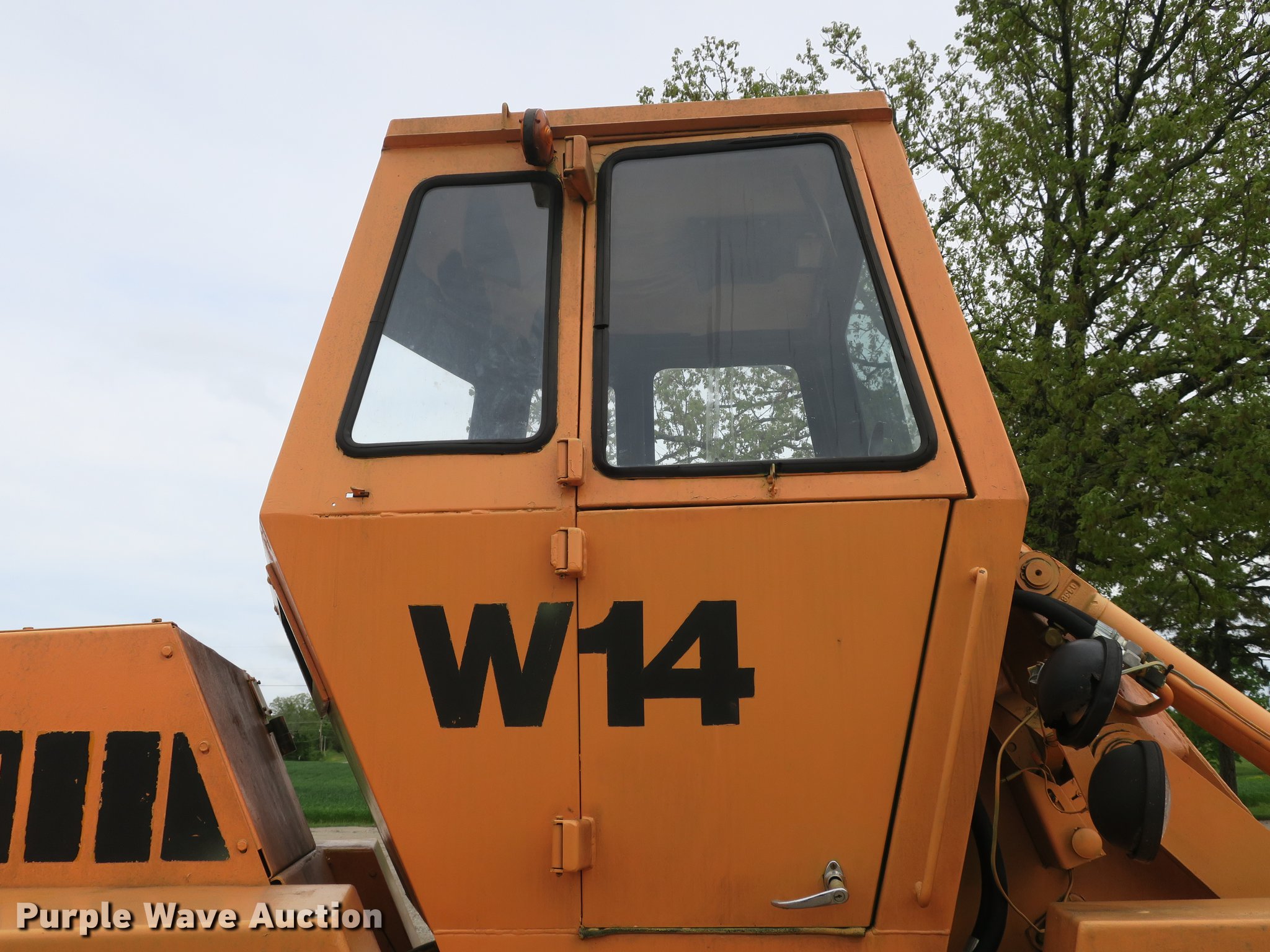 Purple Wave is selling a used Wheel Loader in Missouri. This item is a 1981 Case W14 wheel loader with the following: 4,086 hours on meter, Case four cylinder diesel engine, Two speed hydrostatic transmission, Enclosed cab, Suspension seat, Front work lights, 85"W general purpose bucket, Bolt-on cutting edge, 15.5-25 tires, Serial 9141888