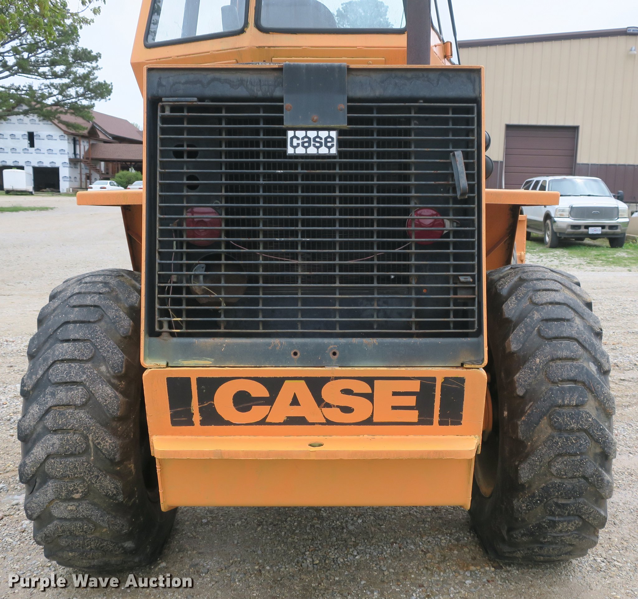 1981 Case W14 wheel loader. 4,086 hours on meter, Case four cylinder diesel engine, Two speed hydrostatic transmission, Enclosed cab, Suspension seat, Front work lights, 85"W general purpose bucket Bolt-on cutting edge, 15.5-25 tires, Serial 9141888. 2520 S. Route 76. Willow Springs, MO 65793