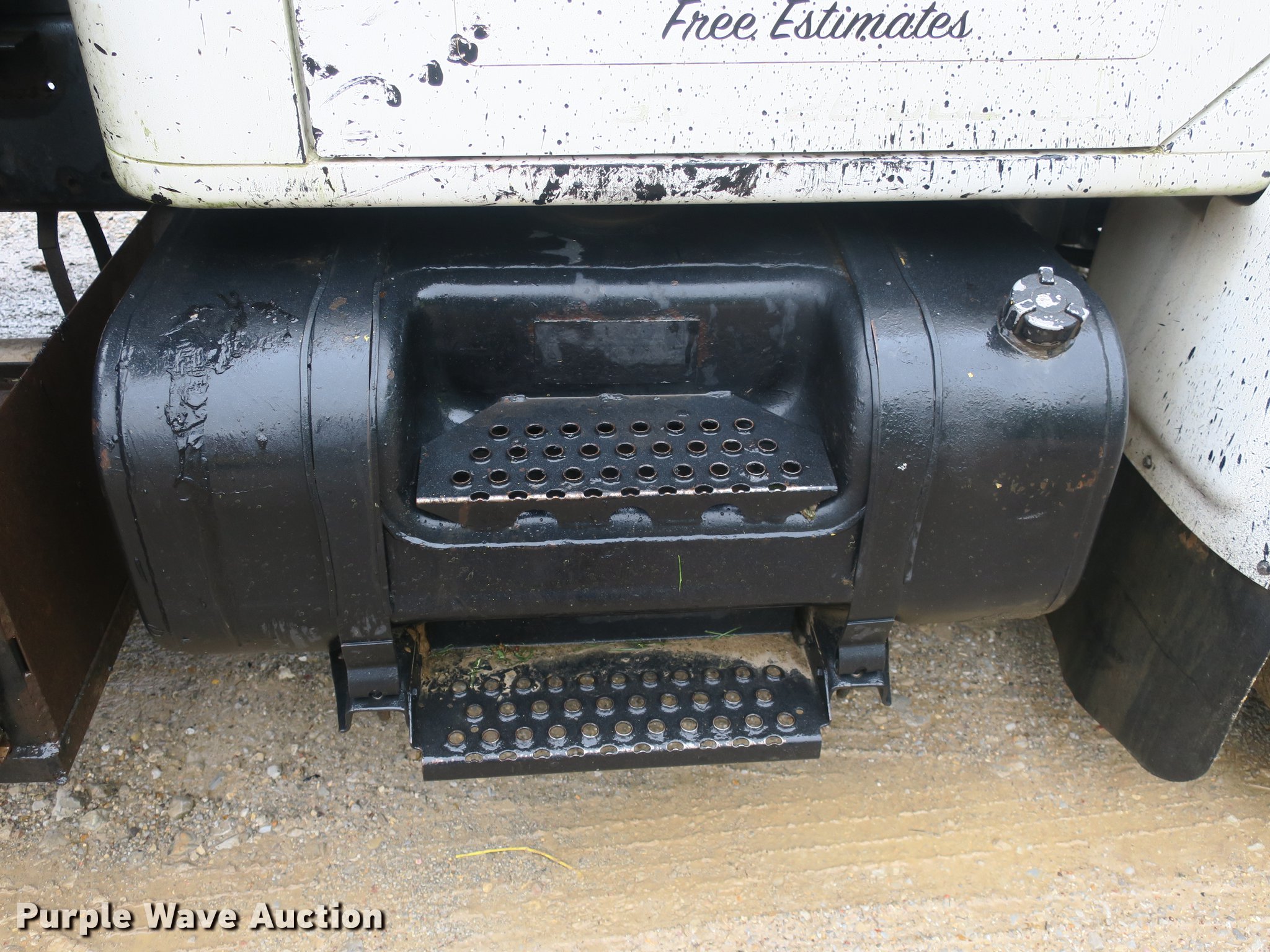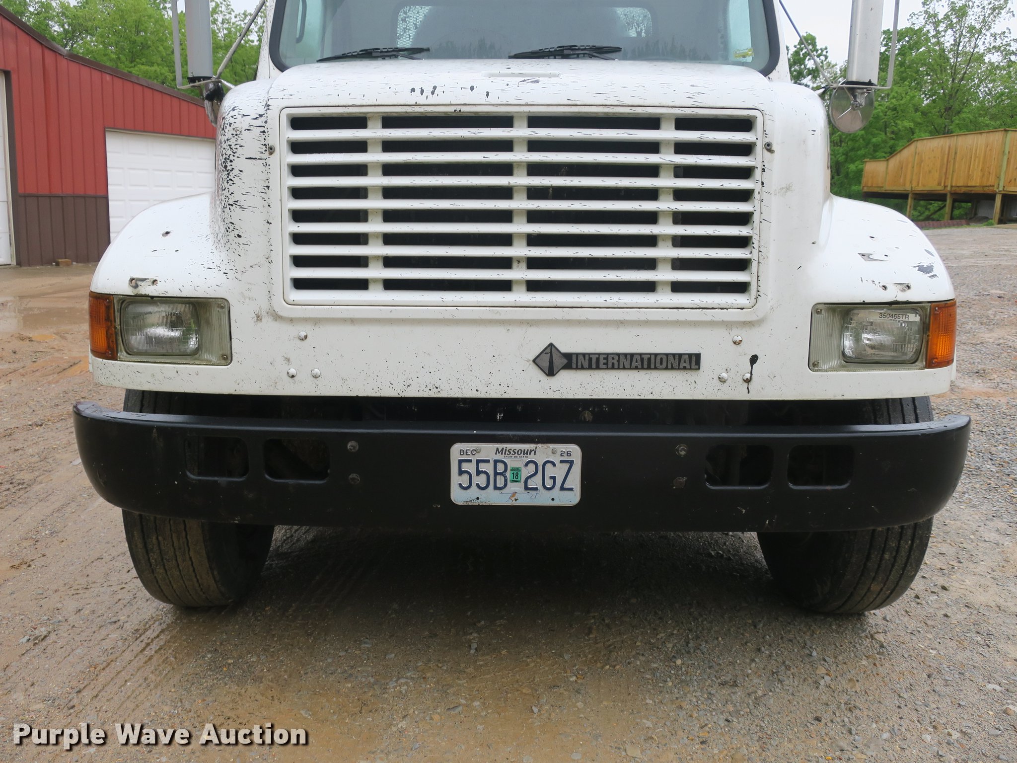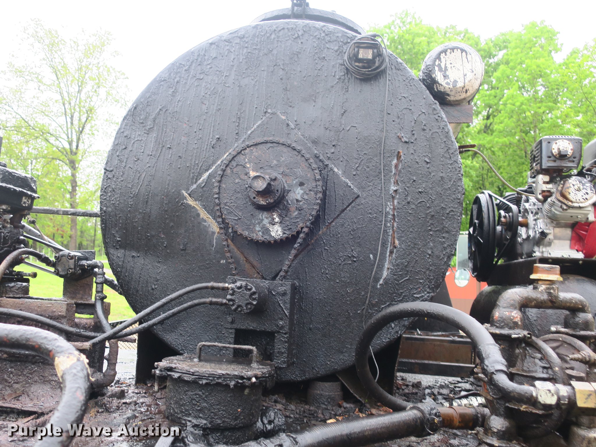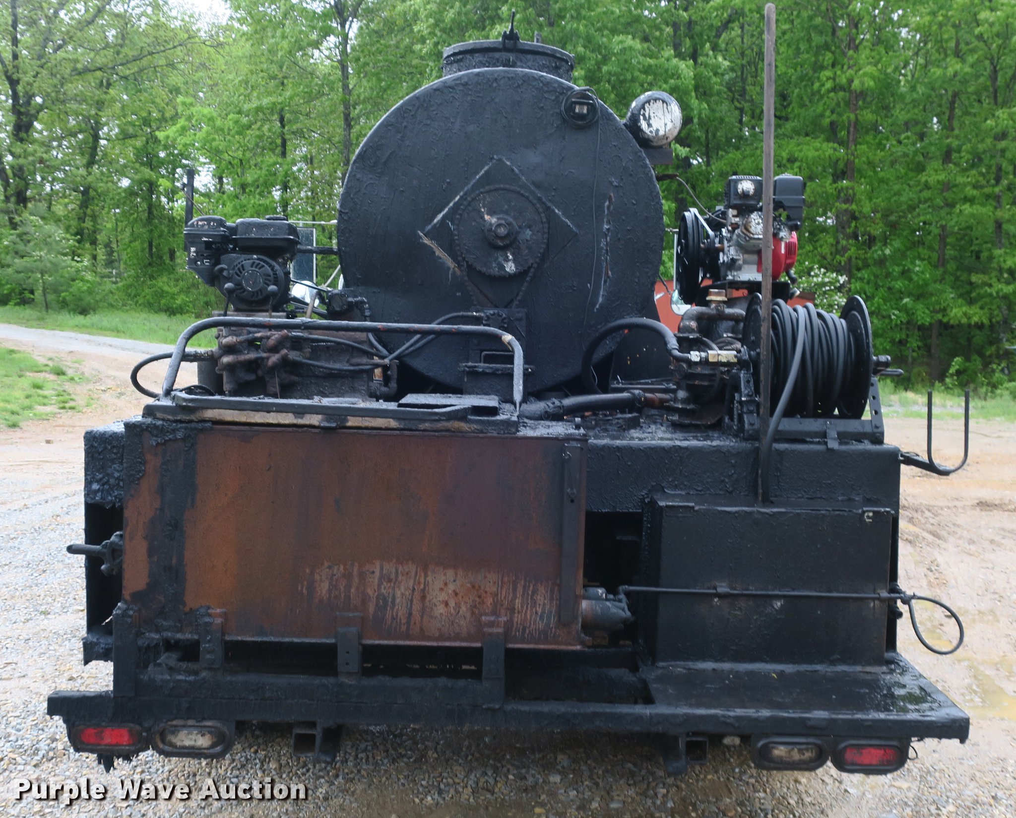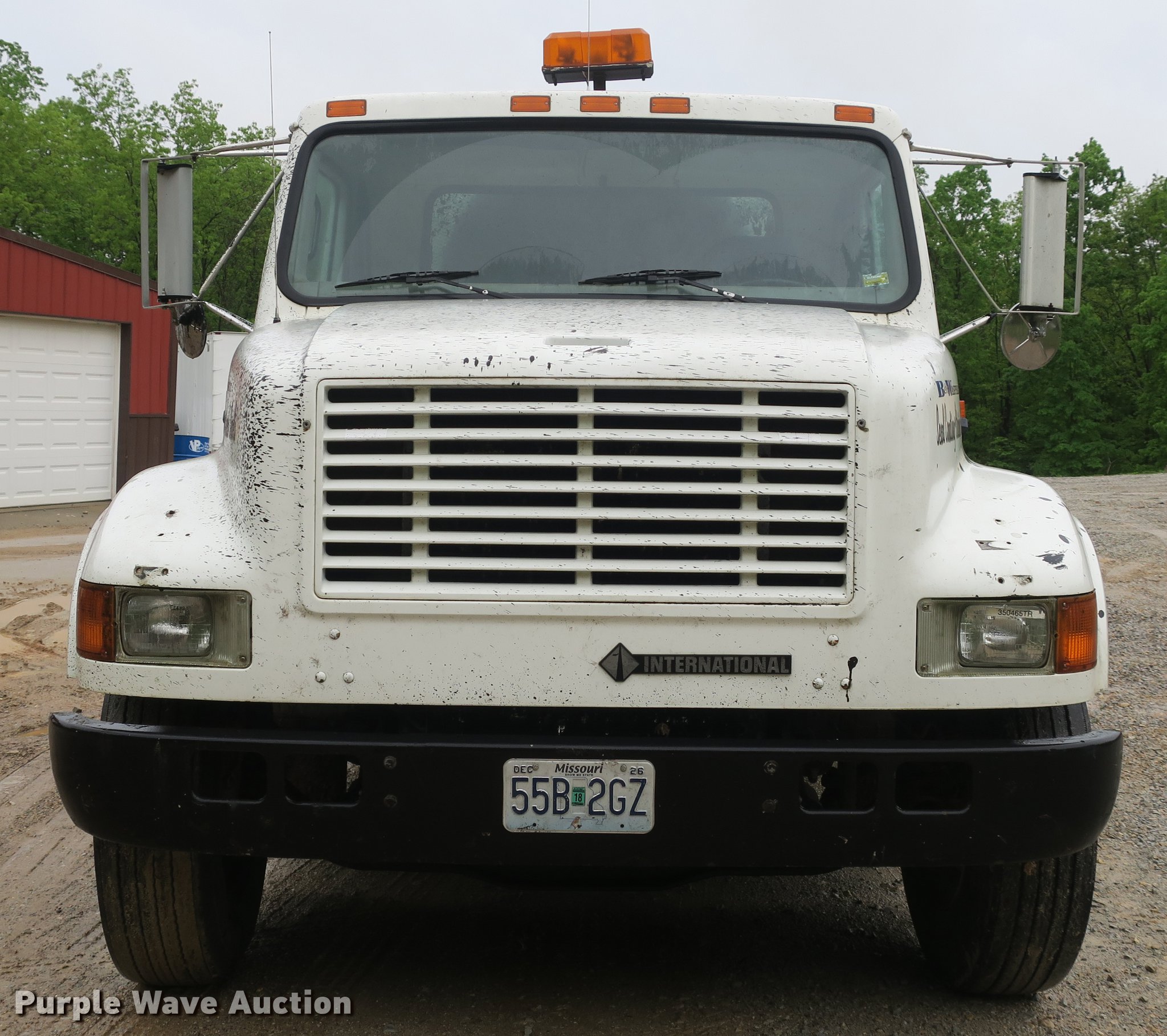 Purple Wave is selling a used Oil Distributor Truck in Missouri. This item is a 1999 International 4700 seal coat truck with the following: 37,661 miles on odometer, International 7.3L V8 diesel engine, Spicer five speed manual transmission, Single axle, AC and heat, Cruise, Suspension seat, Backup camera, 1,000 gallon tank, Paddles, Cleasby 55 gallon direct fire crack melter, Hydraulic agitation power unit, Wilden P4 diaphragm pump, Two gallon filter pot, Strainer, Hannay hose reel, 100'L hose, Air compressor, Honda GX270 gas engine, Shultz pump,, Spring suspension, Hydraulic brakes, 275/80R22.5 tires, Propane tanks included