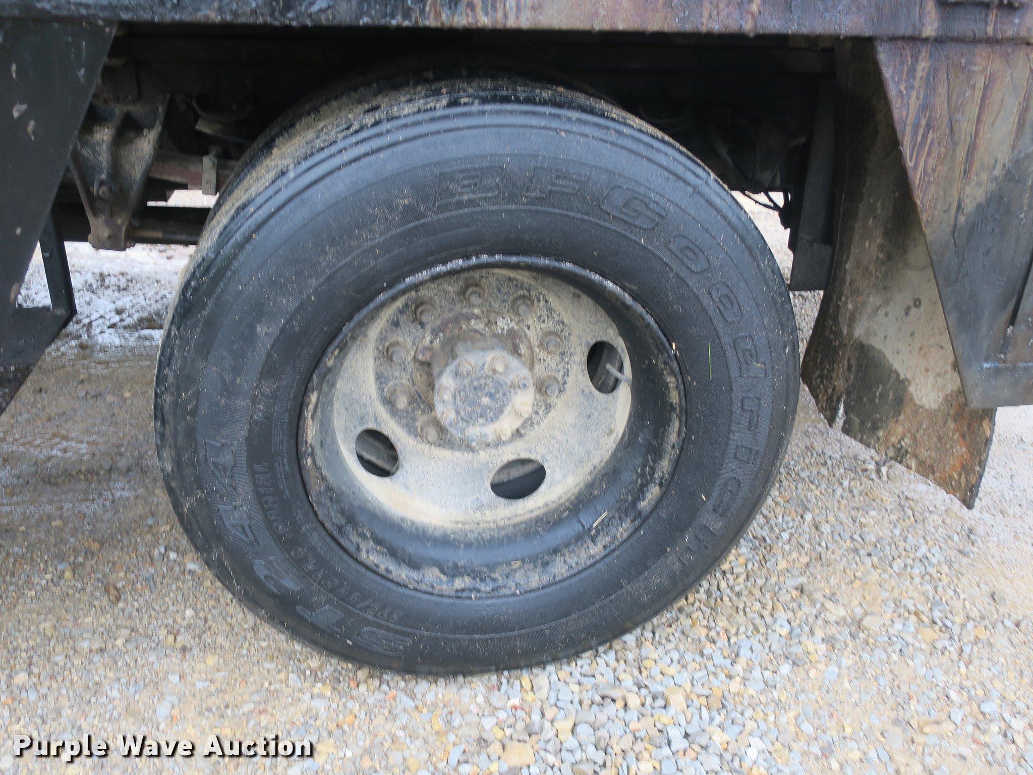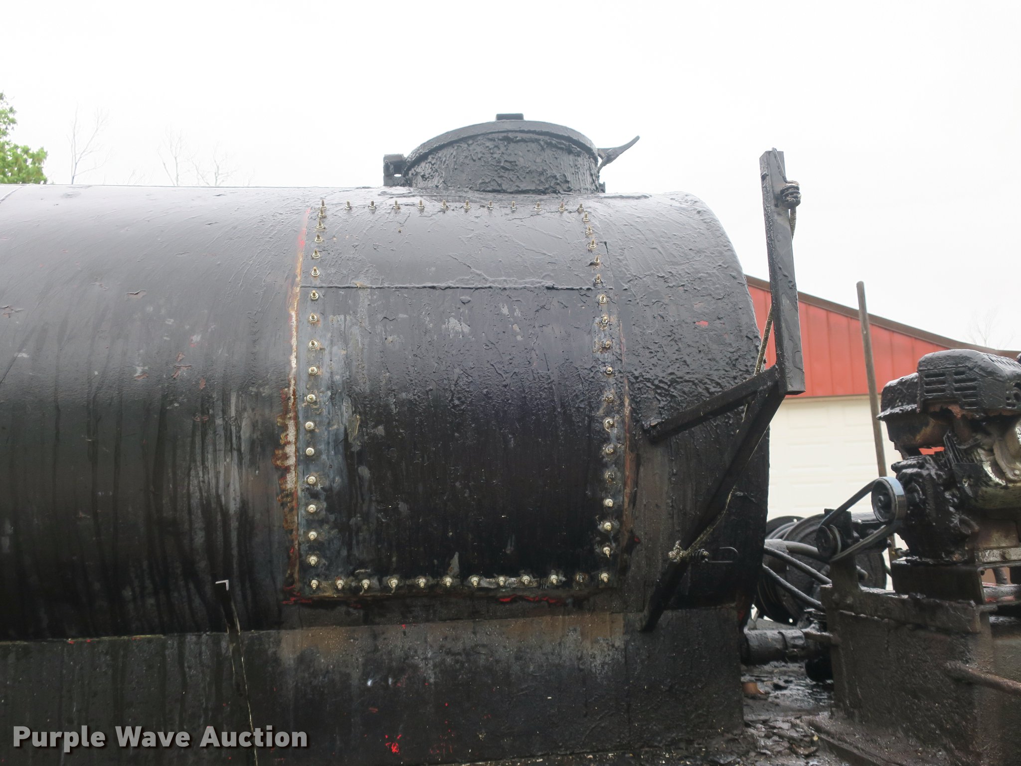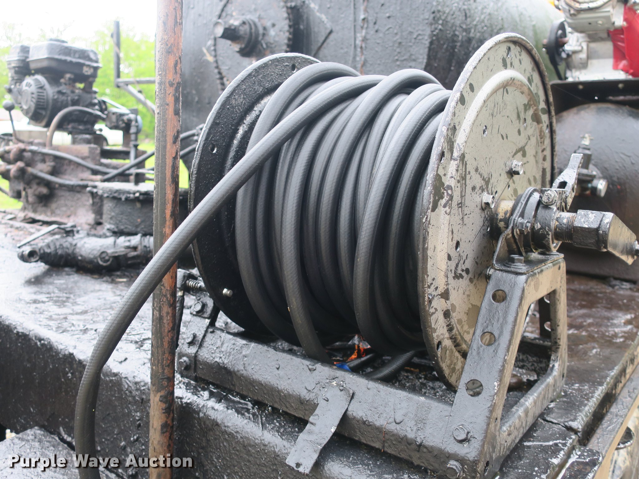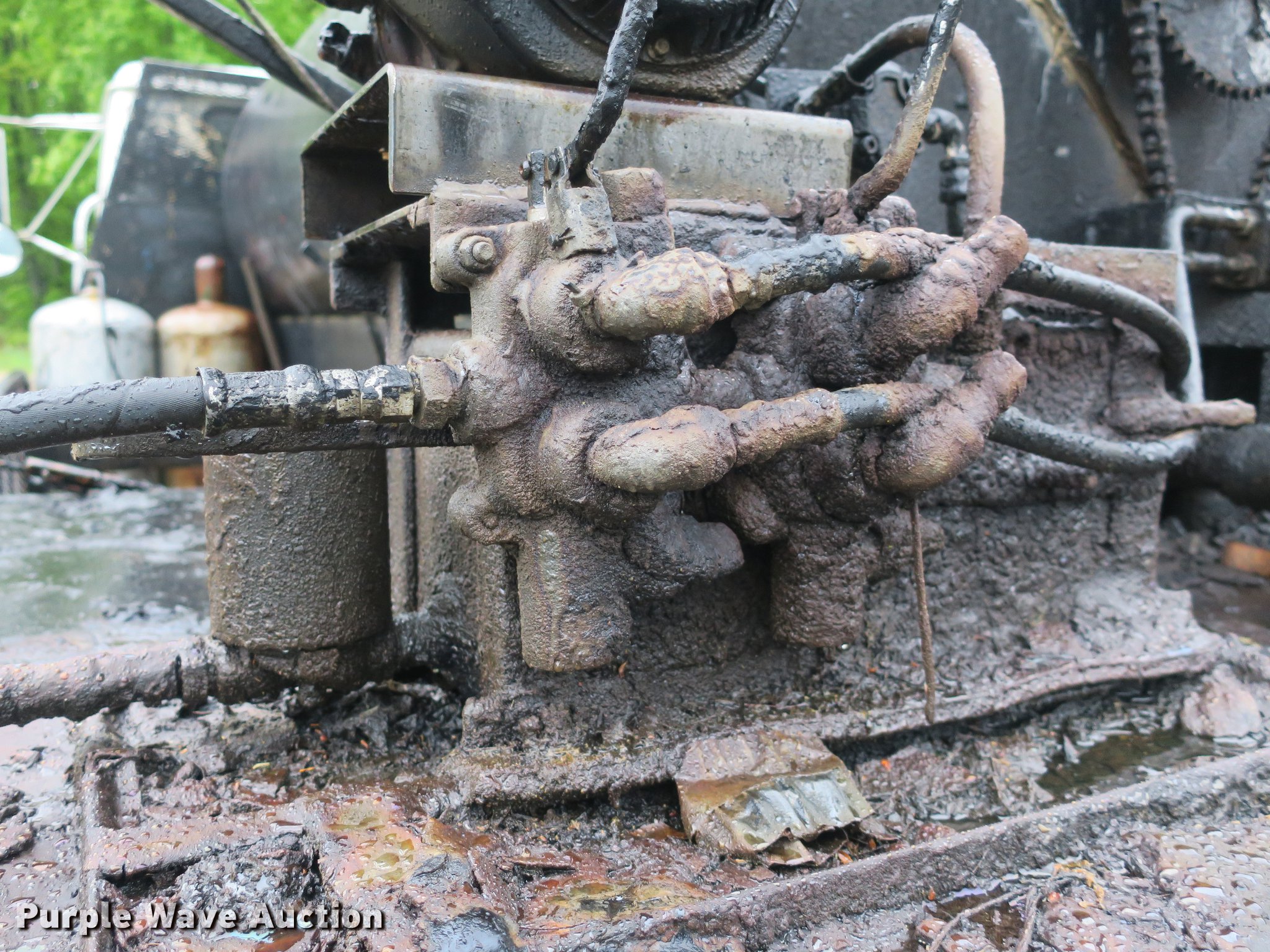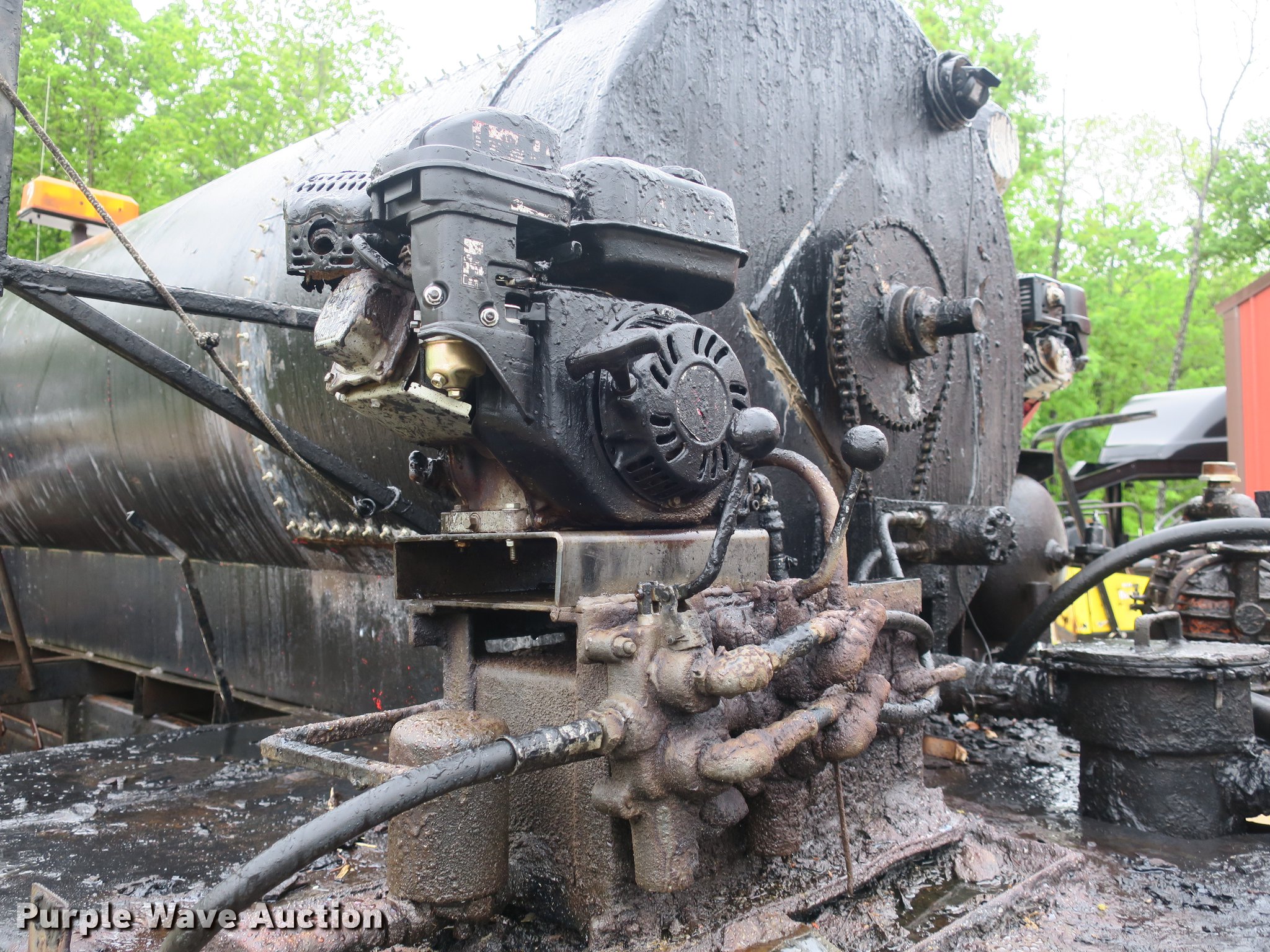 Purple Wave is selling a used Oil Distributor Truck in Missouri. This item is a 1999 International 4700 seal coat truck with the following: 37,661 miles on odometer, International 7.3L V8 diesel engine, Spicer five speed manual transmission, Single axle, AC and heat, Cruise, Suspension seat, Backup camera, 1,000 gallon tank, Paddles, Cleasby 55 gallon direct fire crack melter, Hydraulic agitation power unit, Wilden P4 diaphragm pump, Two gallon filter pot, Strainer, Hannay hose reel, 100'L hose, Air compressor, Honda GX270 gas engine, Shultz pump,, Spring suspension, Hydraulic brakes, 275/80R22.5 tires, Propane tanks included