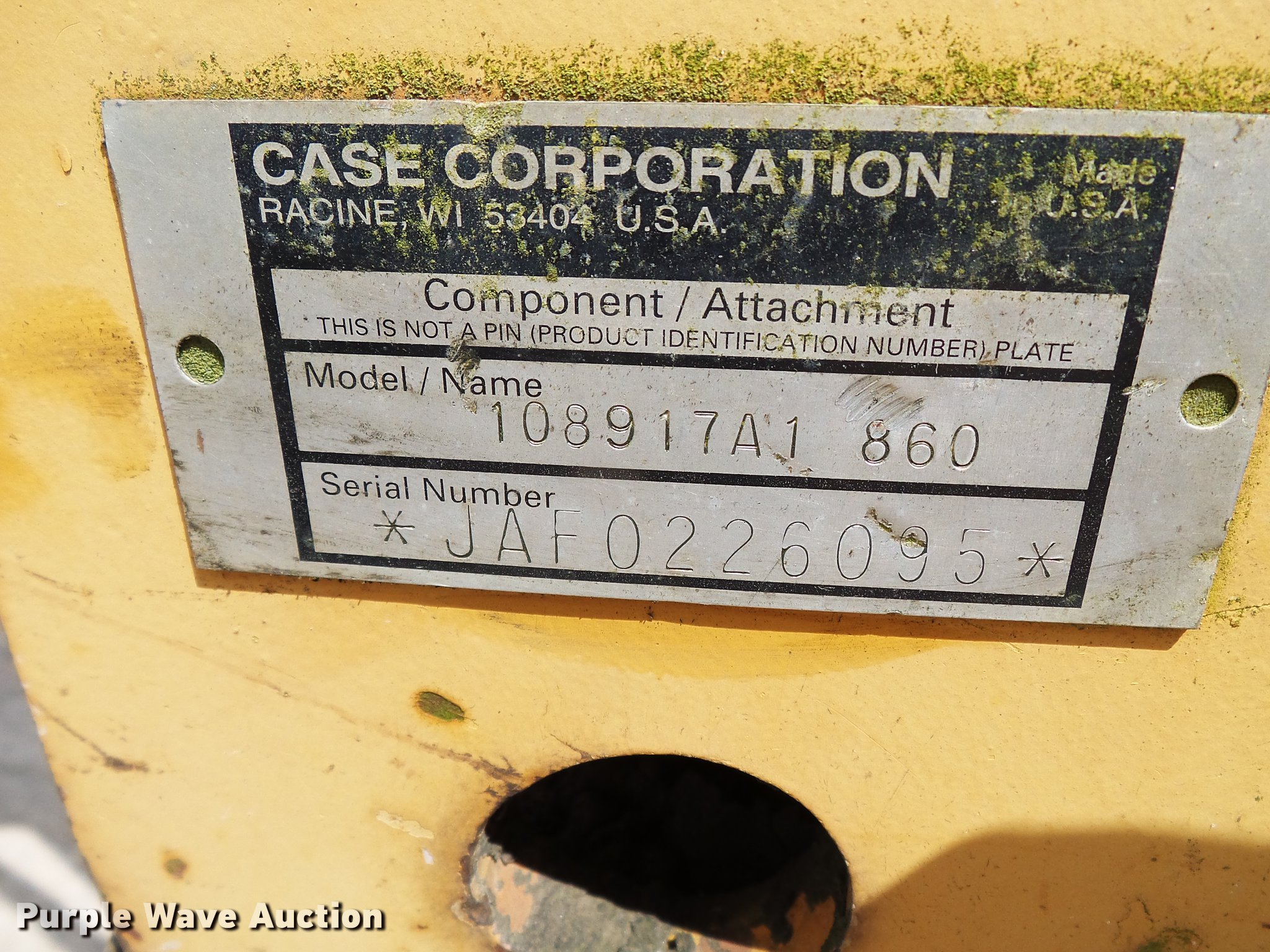 1988 Case 760 cable plow. 645 hours on meter, Cummins 4B four cylinder diesel engine Serial 44250568, Manual transmission 4F-4R gears, Four wheel drive, Four wheel steer, OROPS Suspension seat, Vibratory plow model 108917A1 36" pull blade depth, 1 1/4" thick, Reel carrier 57" maximum width, Titan 38 x 18-20 tires, Serial JAF0003119. Coastal Bay Inc.. 915 Mallory. Dexter, MO 63841