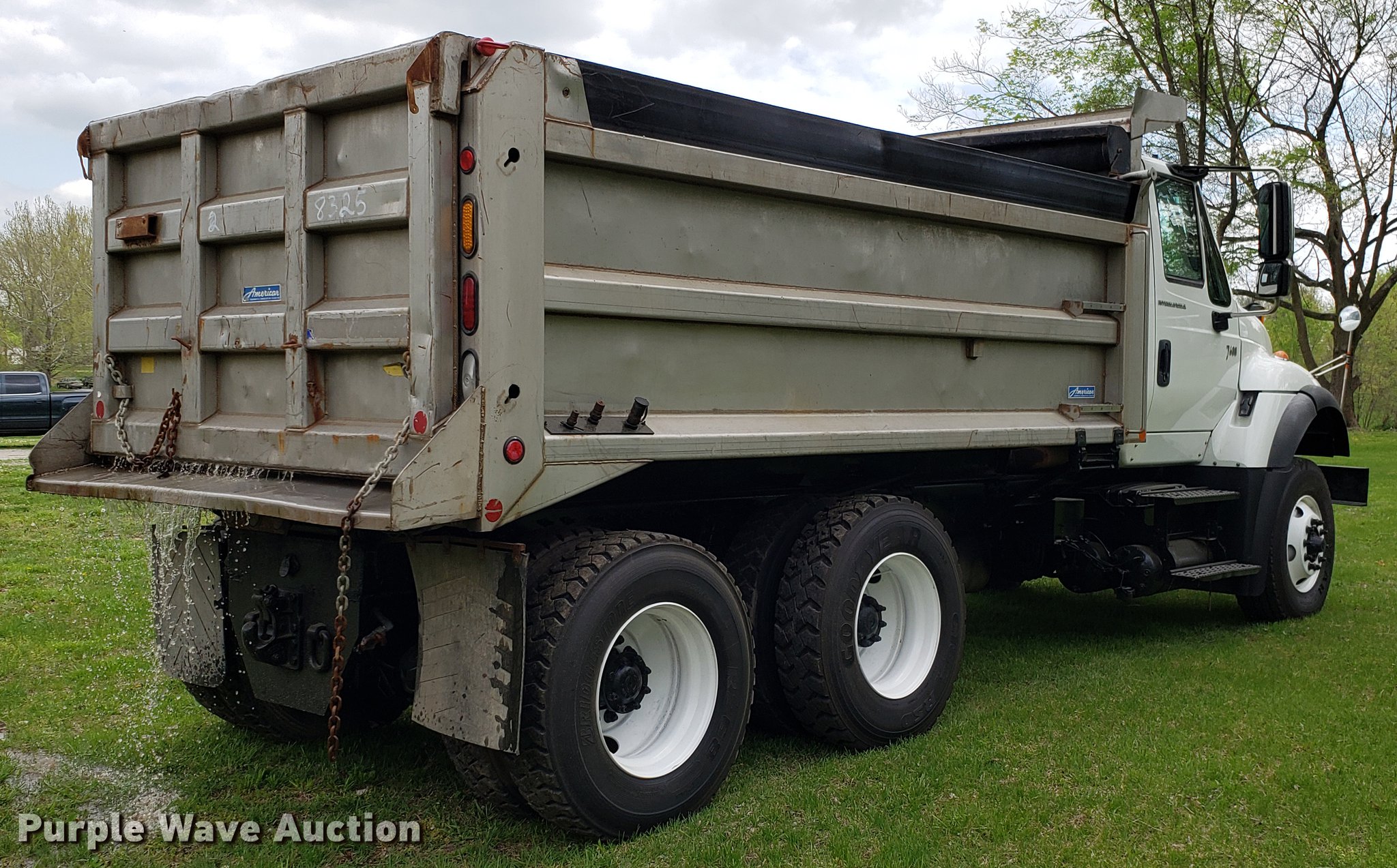 Purple Wave is selling a used Construction Dump Truck in Missouri. This item is a 2006 International 7600 dump truck with the following: 103,498 miles on odometer, 8,753 hours on meter, Cummins ISM 10.8L L6 diesel engine, Allison automatic transmission, AC and heat, Cruise, AM/FM/CD, Air suspension seat, Block heater, 14'L x 8'W stainless steel dump bed, 32" side height, 8" side board height, Roll tarp, Single ram hoist, Air operated end gate, Front plow mount, Spring over walking beam suspension, Air brakes, 315/80R22.5 front tires, 11R22.5 rear tires