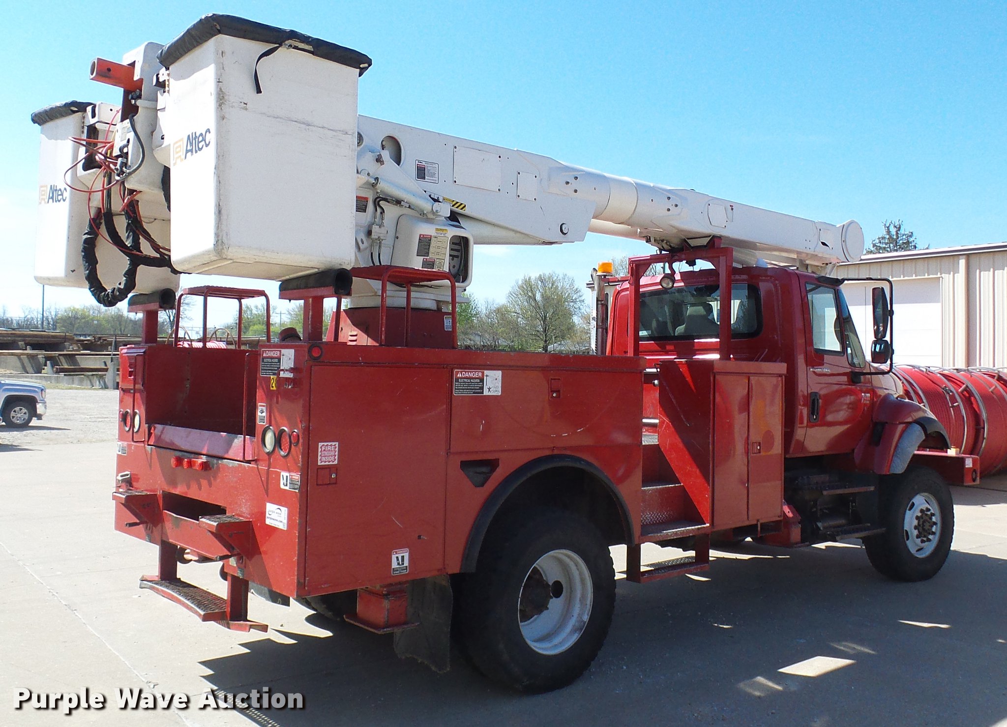 Purple Wave is selling a used Bucket Truck in Missouri. This item is a 2005 International 7400 bucket truck with the following: 107,592 miles on odometer, 10,915 hours on meter, 5,285 PTO hours on meter, International DT466 7.6 L6 diesel engine, Automatic transmission, Four wheel drive, Single axle, AC and heat, Cruise, AM/FM, Air suspension seat, PTO, Front tow hooks, Braden winch, Altec utility bed, 13'L, Shelving, Serial 47-27526, Altec AWS47 boom, 600 lbs maximum lift capacity, 48' maximum lift height, (2) man baskets, Ground and platform controls, Boom rotation, Articulating insulated boom, Rope material handler, (4) outriggers, Serial 0904BB3598, Certification valid through October 2019, Single fuel tank, Single exhaust stack, Spring suspension, Air brakes, 315/80R22.5 front tires, 11R22.5 rear tires, GVWR 35,000 lbs, View Aerial Device Test Report, Unit# 28