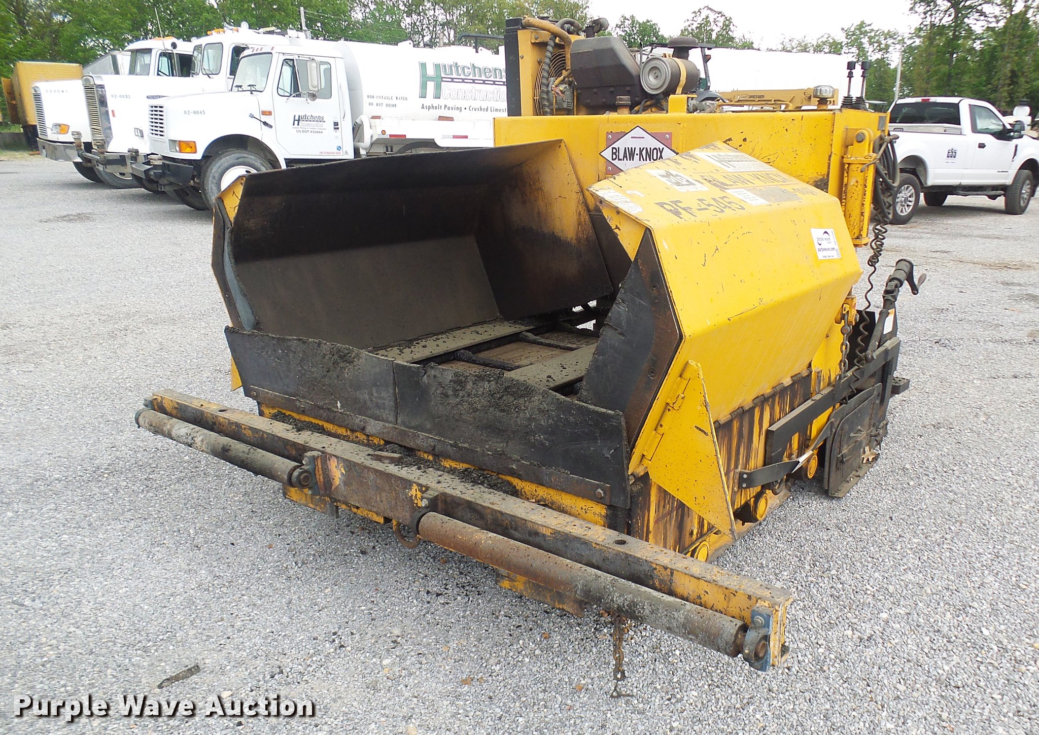 Purple Wave is selling a used Paver or Screed in Missouri. This item is a 2001 Blaw Knox PF545 paver with the following: 736 hours on meter, Kubota four cylinder diesel engine, Hydrostatic transmission, Propane screed heater, 5' to 8' paving width, 15"W tracks