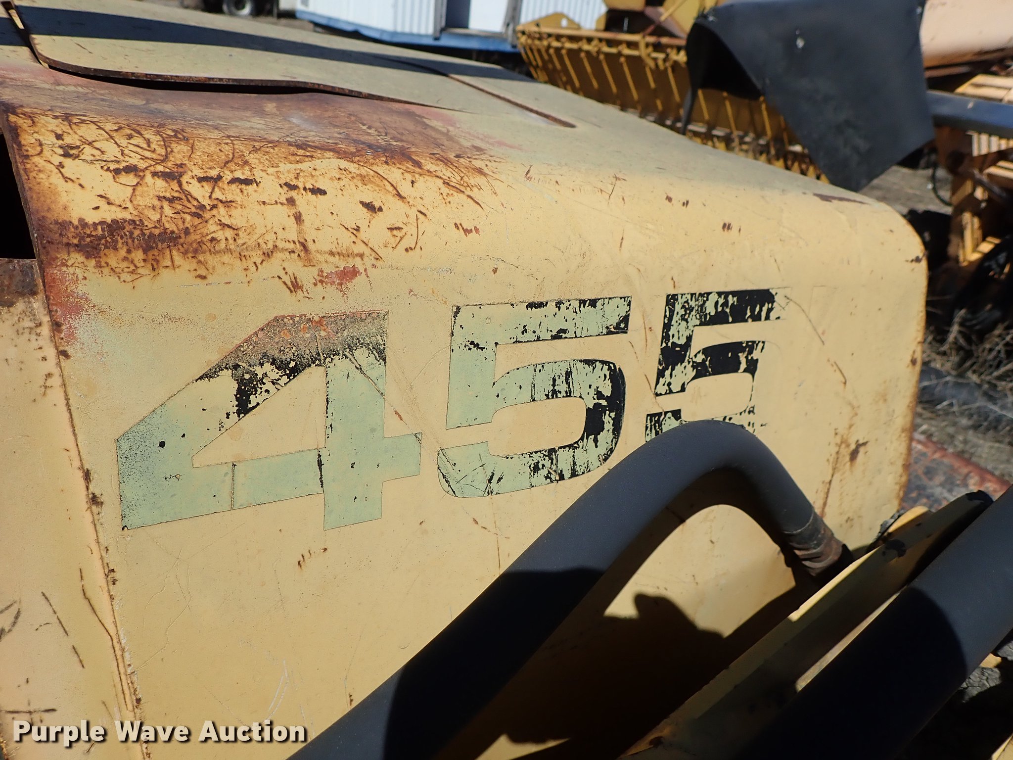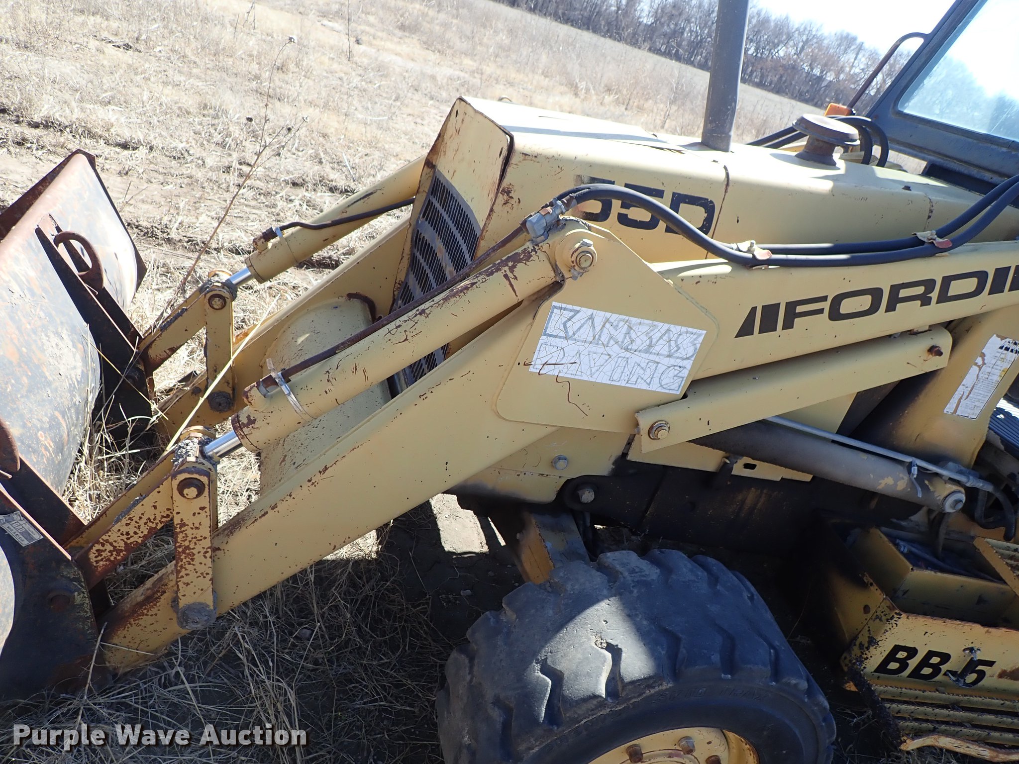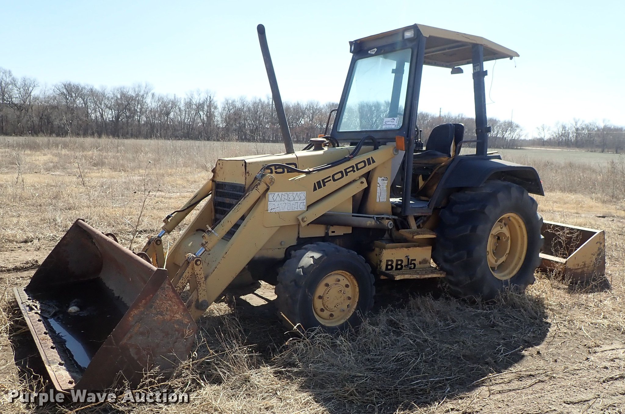 Purple Wave is selling a used Industrial Loader Tractor in Kansas. This item is a Ford 455D landscape tractor with the following: 10,161 hours on meter, Ford three cylinder diesel engine, Shuttle shift transmission, 4F-4R gears, Canopy, 88"W bucket, 89"W box blade, 12-16.5 front tires, 19.5L-24 rear tires, Unknown operating condition