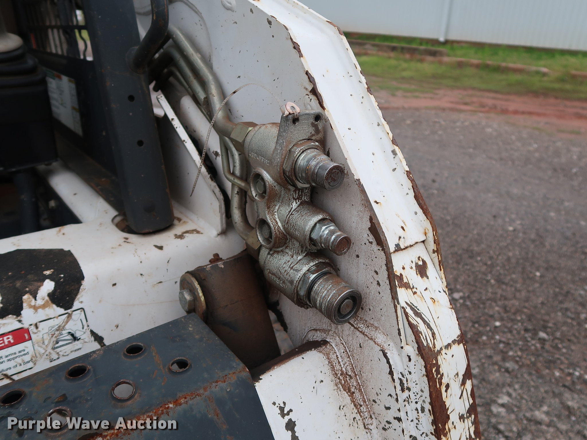 Purple Wave is selling a used Tracked Skid Steer Loader in Oklahoma. This item is a 2008 Bobcat T190 skid steer with the following: 2,789 hours on meter, Kubota 2.4L four cylinder diesel engine, 61 HP, Two speed hydrostatic transmission, Open station/canopy, Joystick bucket control, Pattern changer, Spring suspension seat, Front and rear work lights, 68"W bucket, Bolt-on cutting edge, Bolt-on teeth, Manual quick coupler, Auxiliary hydraulics, Earthforce 12"W tracks, Cylinder head rebuilt 01/2019, Serial 531620460