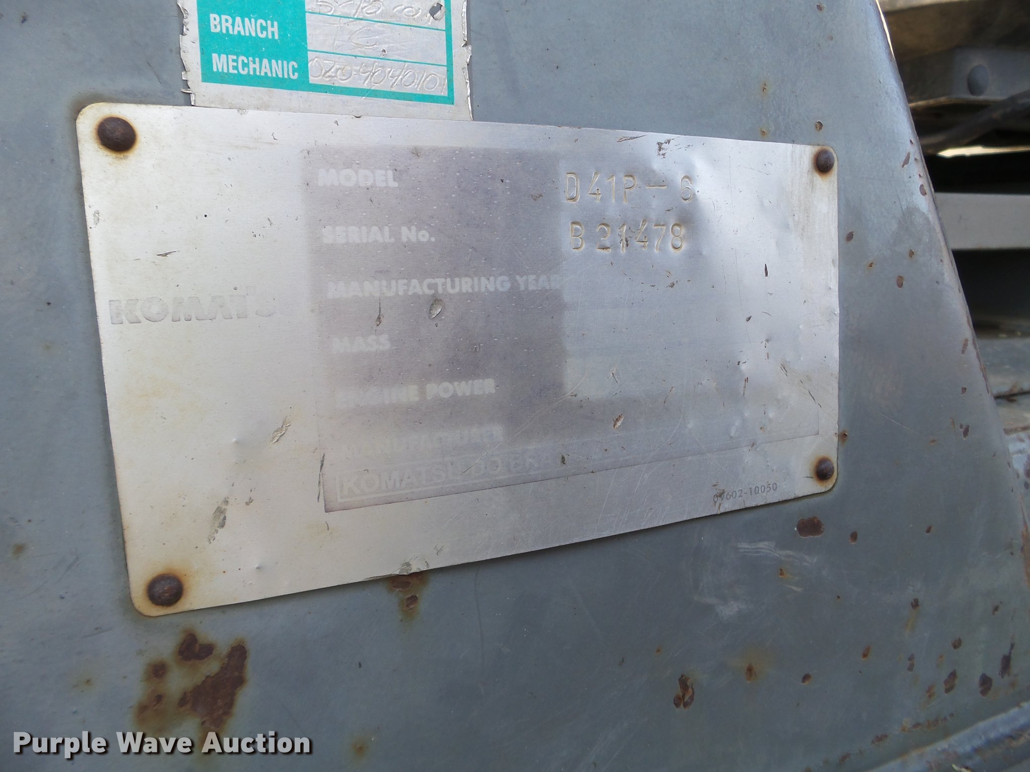 Purple Wave is selling a used Crawler Dozer in Minnesota. This item is a 2001 Komatsu D41P-6 dozer with the following: 7,853 hours on meter, Six cylinder diesel engine, Powershift transmission, 3F-3R gears, Canopy, Joystick steering, 132"W six-way straight dozer blade, Seven bottom rollers, Track guards, 27.5"W single grouser track pads, Serial B21478