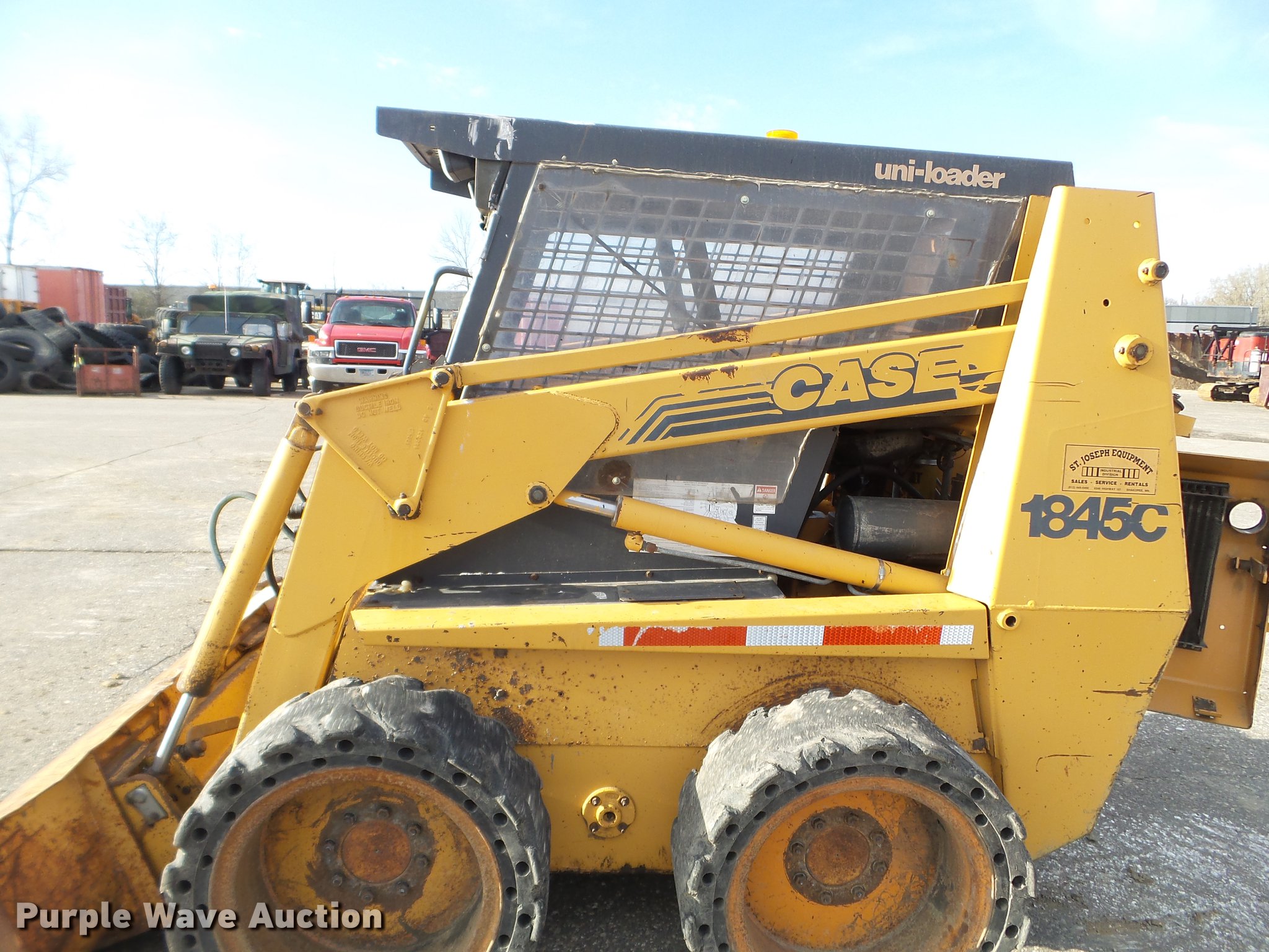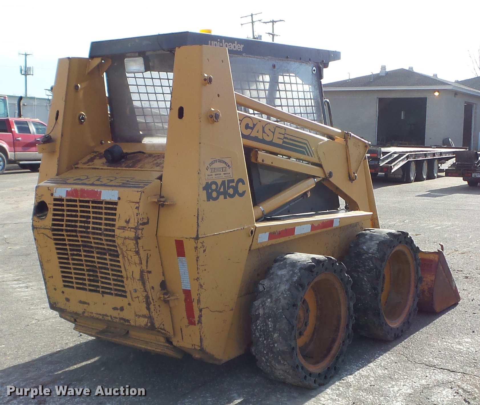 Purple Wave is selling a used Skid Steer Loader in Minnesota. This item is a 1995 Case 1845C skid steer with the following: 4,125 hours on meter, Case four cylinder diesel engine, Hydrostatic transmission, Enclosed cab, AC, Hand bucket controls, Front and rear work lights, Backup alarm, 72"W bucket, Bolt-on cutting edge, Manual quick coupler, Auxiliary hydraulics, Counter weights, 33 x 12-20 solid tires, (6) additional 12-16.5 tires, Door included, Serial JAF0162501