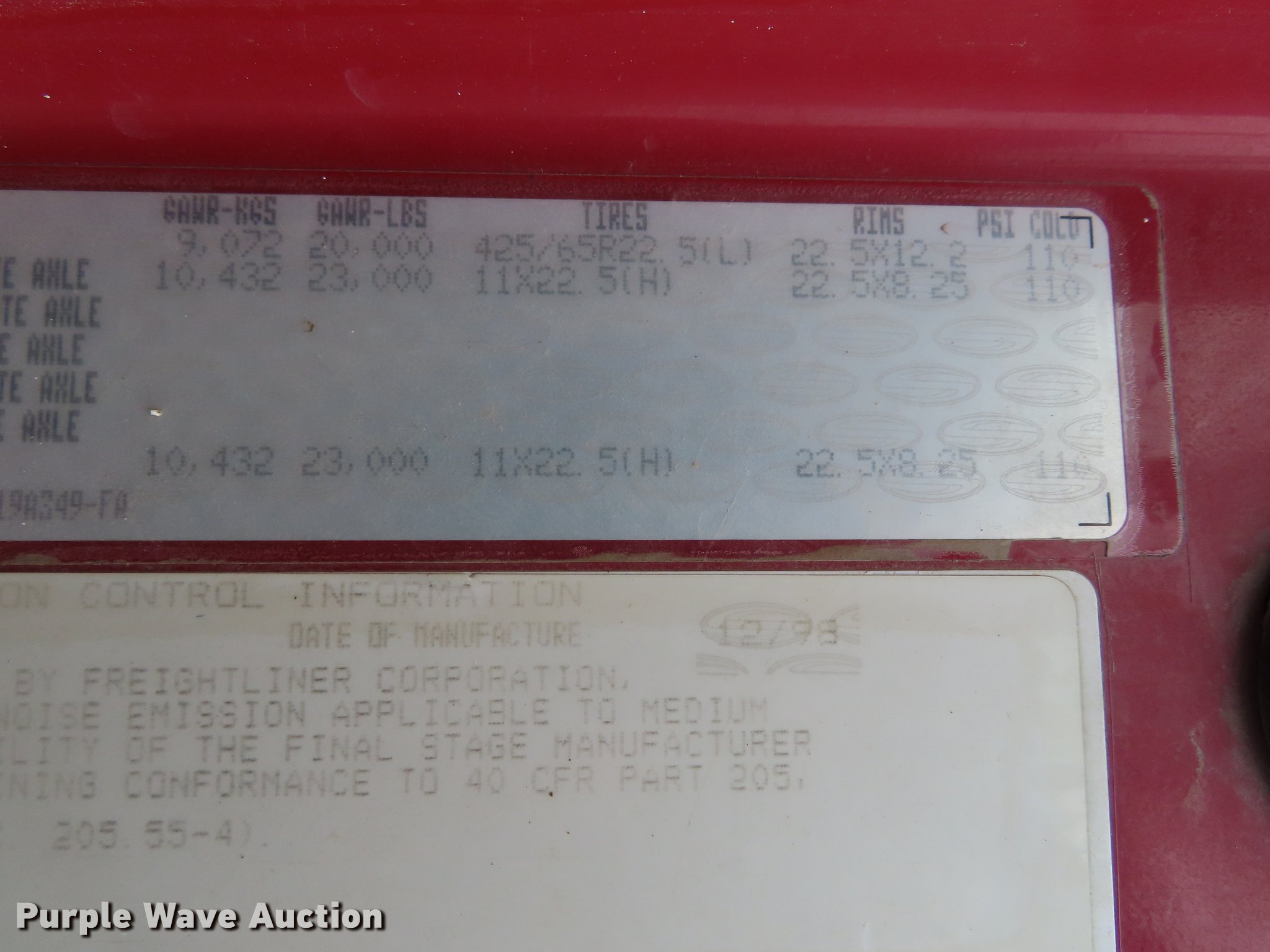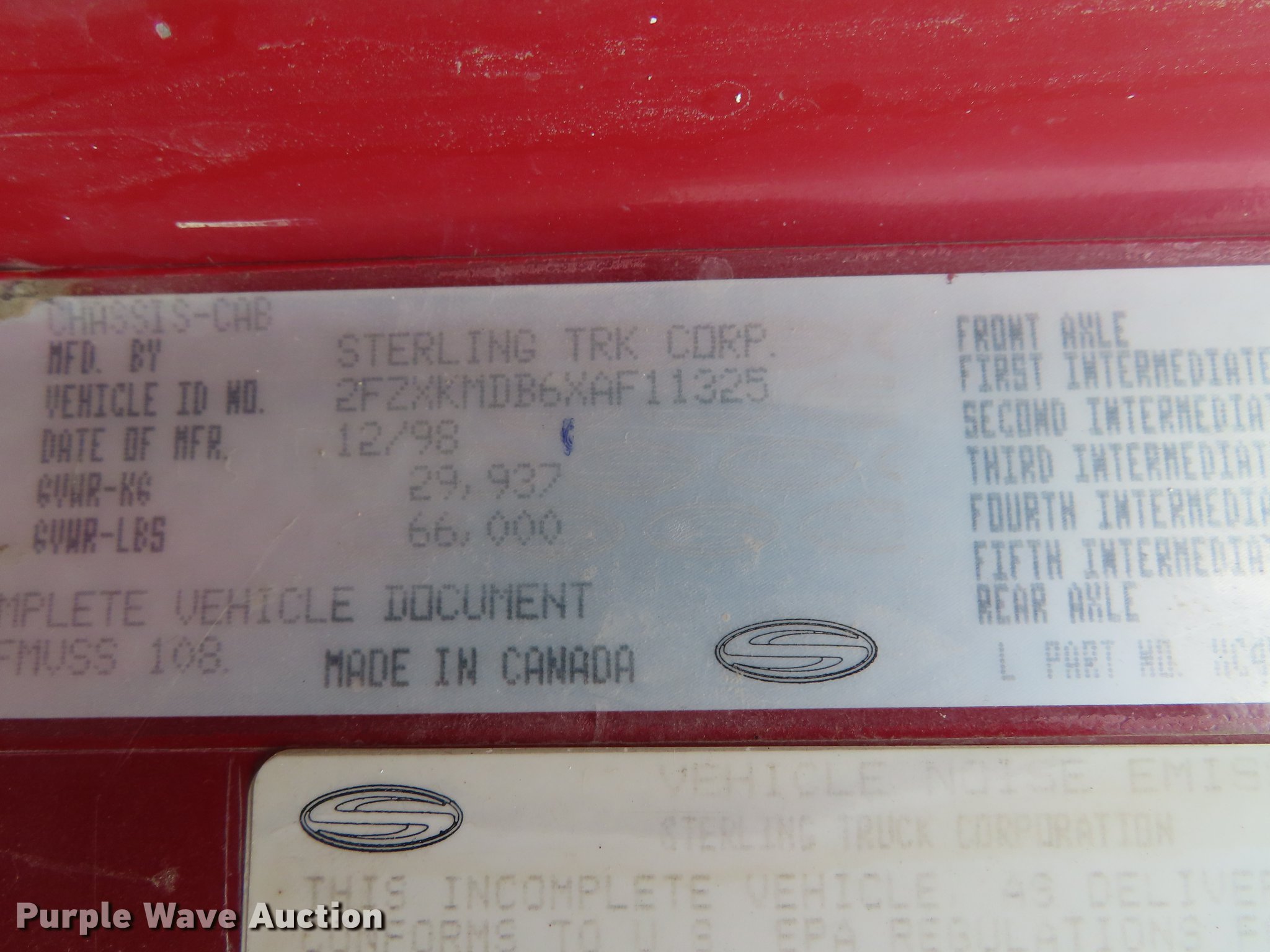 Purple Wave is selling a used Construction Dump Truck in Kansas. This item is a 1999 Sterling A-Line dump truck with the following: 590,344 miles on odometer, Cummins M11-400E 10.8L L6 diesel engine, 400 HP, Eaton Fuller eight speed manual transmission, Lo-Lo, Triple axle, Pusher lift axle, Inter-axle differential lock, AC and heat, Heated mirrors, Air suspension seat, PTO, 16'L x 96"W steel dump bed, 44" side height, Single ram hoist, Air operated end gate, Dual fuel tanks, Walking beam suspension, Air brakes, 425/65R22.5 front tires, 295/75R22.5 pusher axle tires, 11R22.5 rear tires, GVWR 86,000 lbs, FAWR 20,000 lbs, Lift axle GAWR 20,000 lbs, IAWR 23,000 lbs, RAWR 23,000 lbs