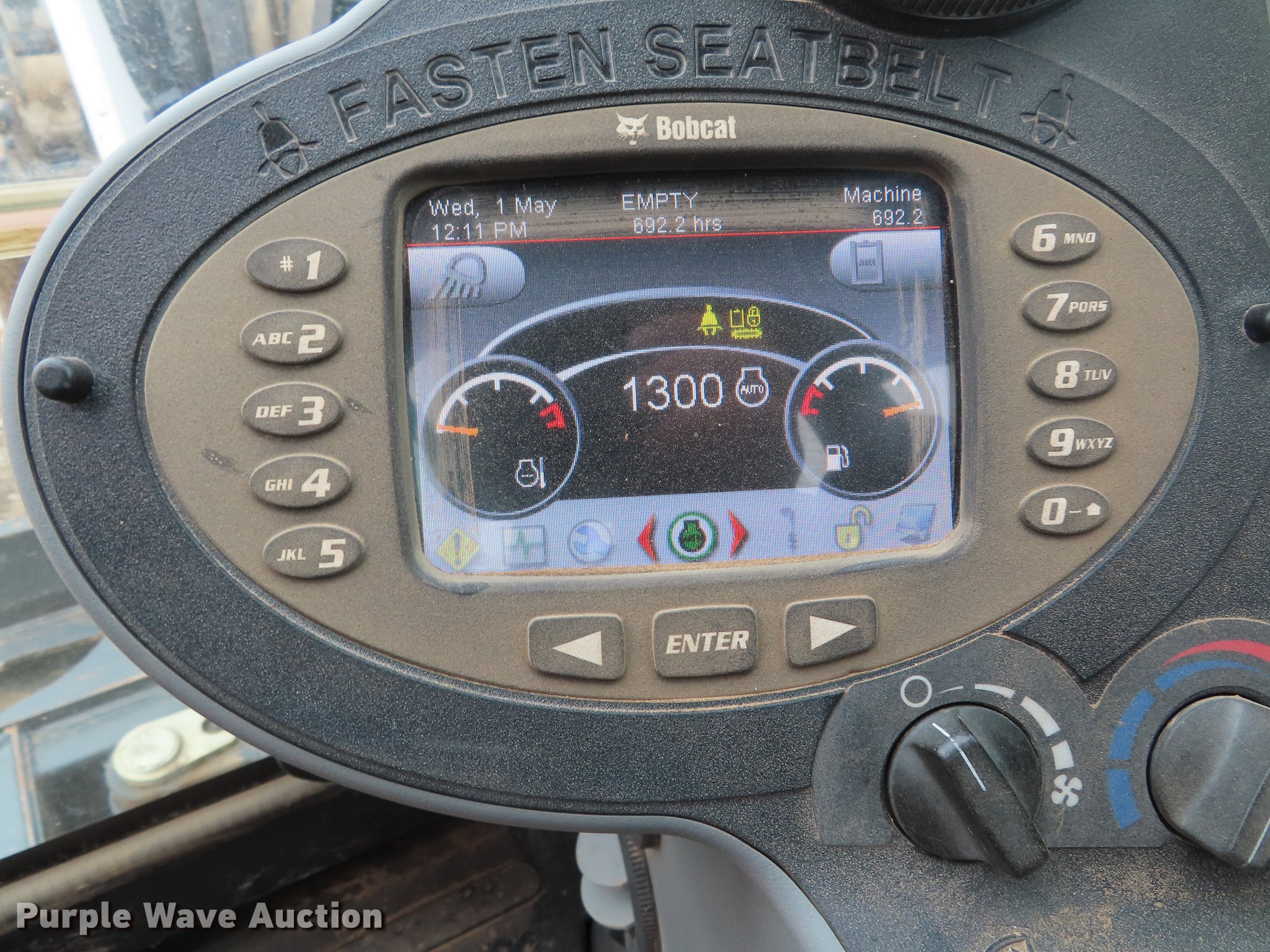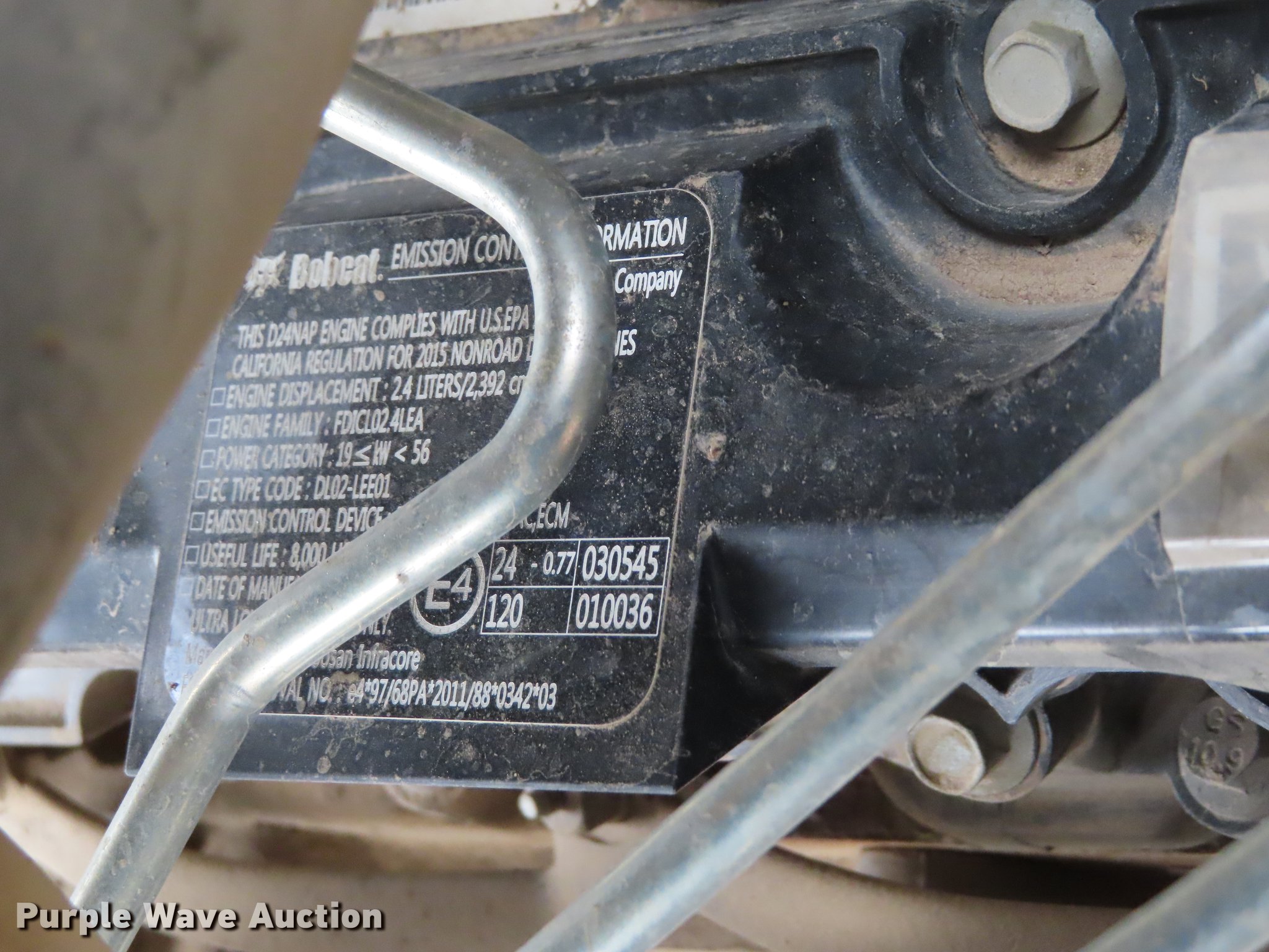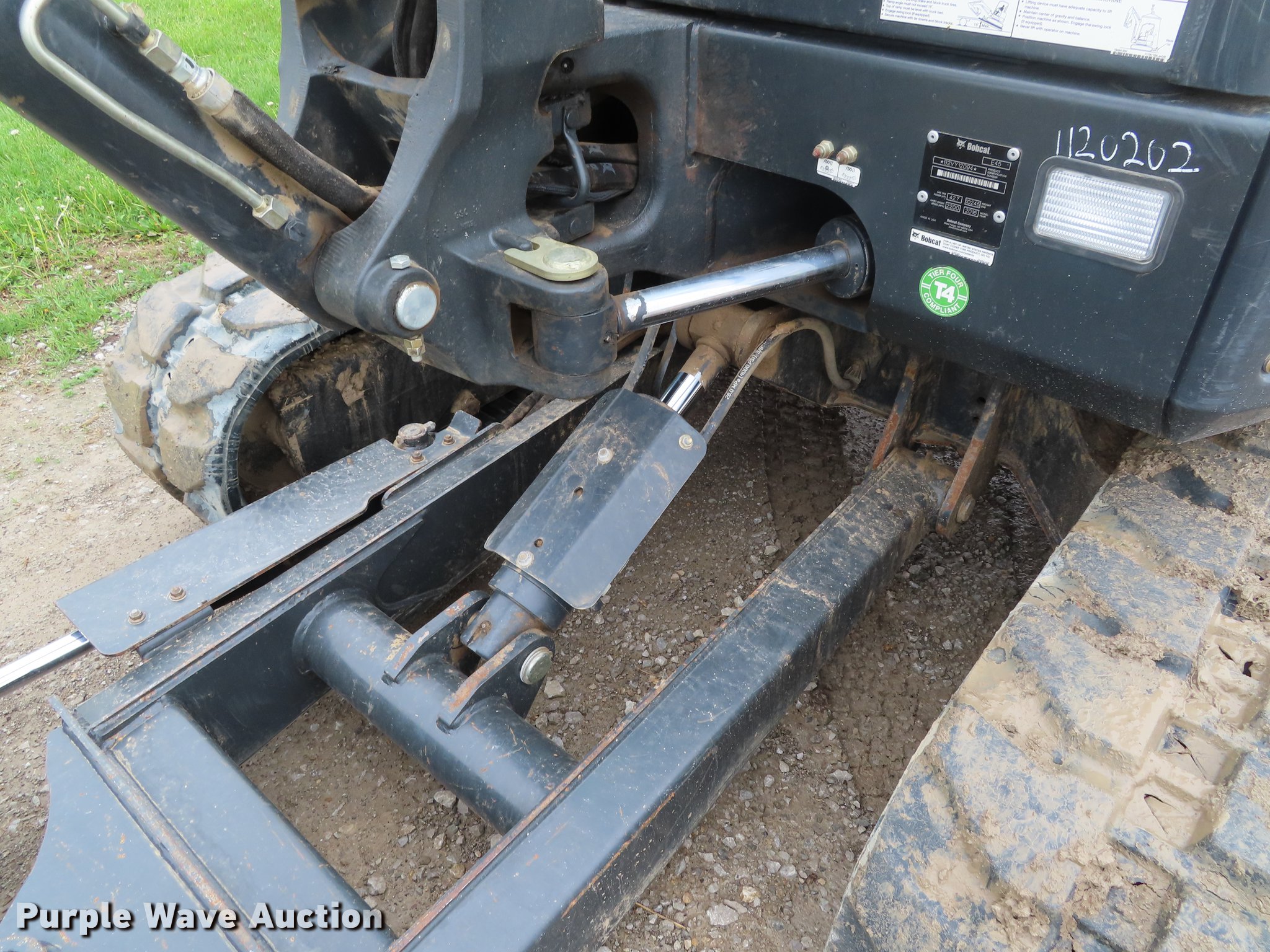 Purple Wave is selling a used Mini Excavator in Kansas. This item is a 2016 Bobcat E45 mini excavator with the following: 684 hours on meter, Bobcat four cylinder diesel engine, Hydrostatic transmission, Enclosed cab, AC and heat, AM/FM, Two-way auxiliary hydraulics, 78"W backfill angle blade, Swing boom, 67" stick length, Hydraulic quick coupler, Hydraulic thumb, 15.5"W rubber tracks, Serial B2VY12094