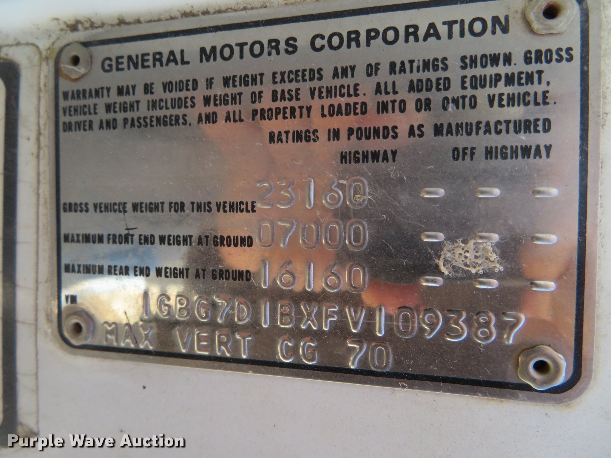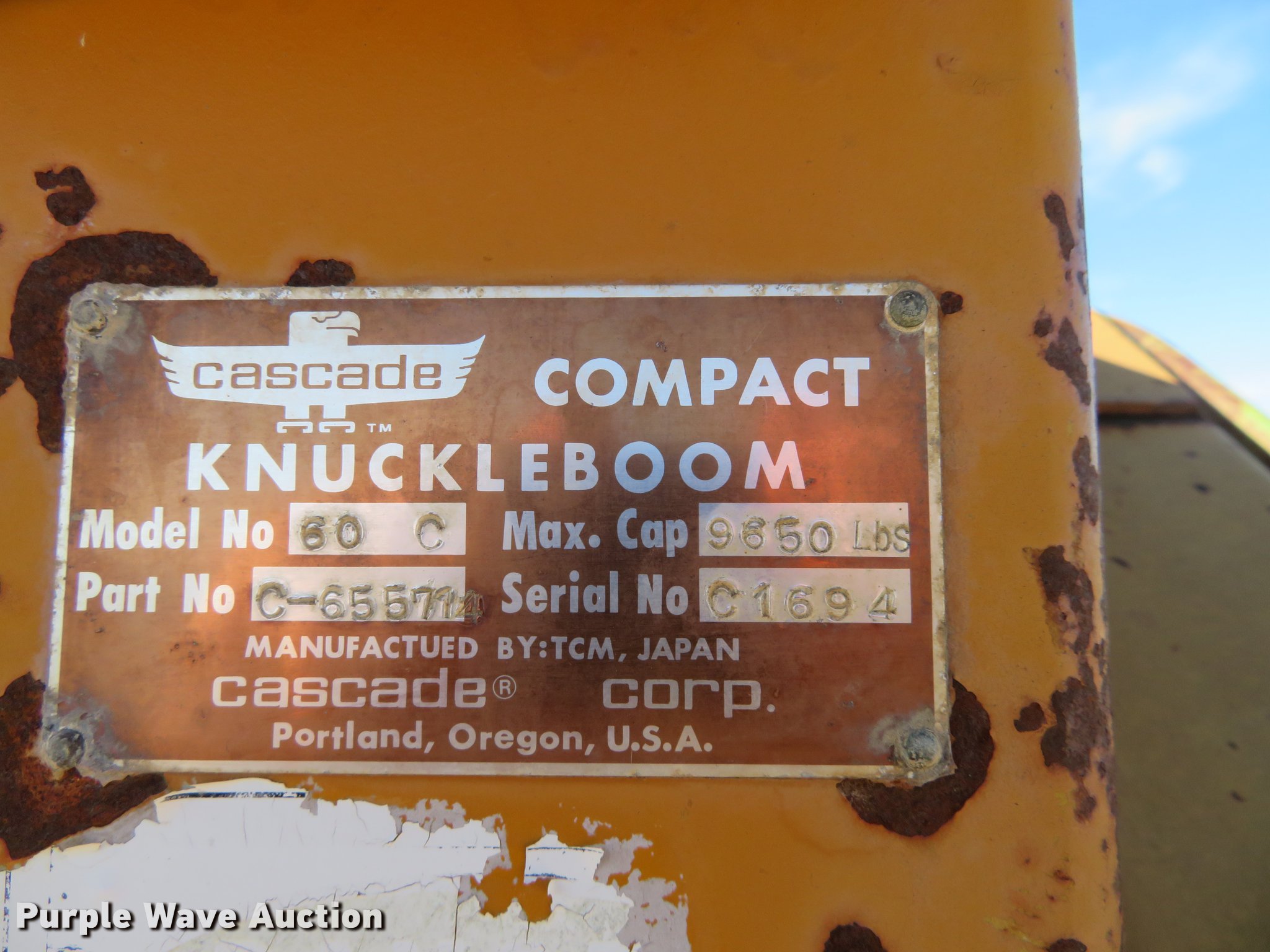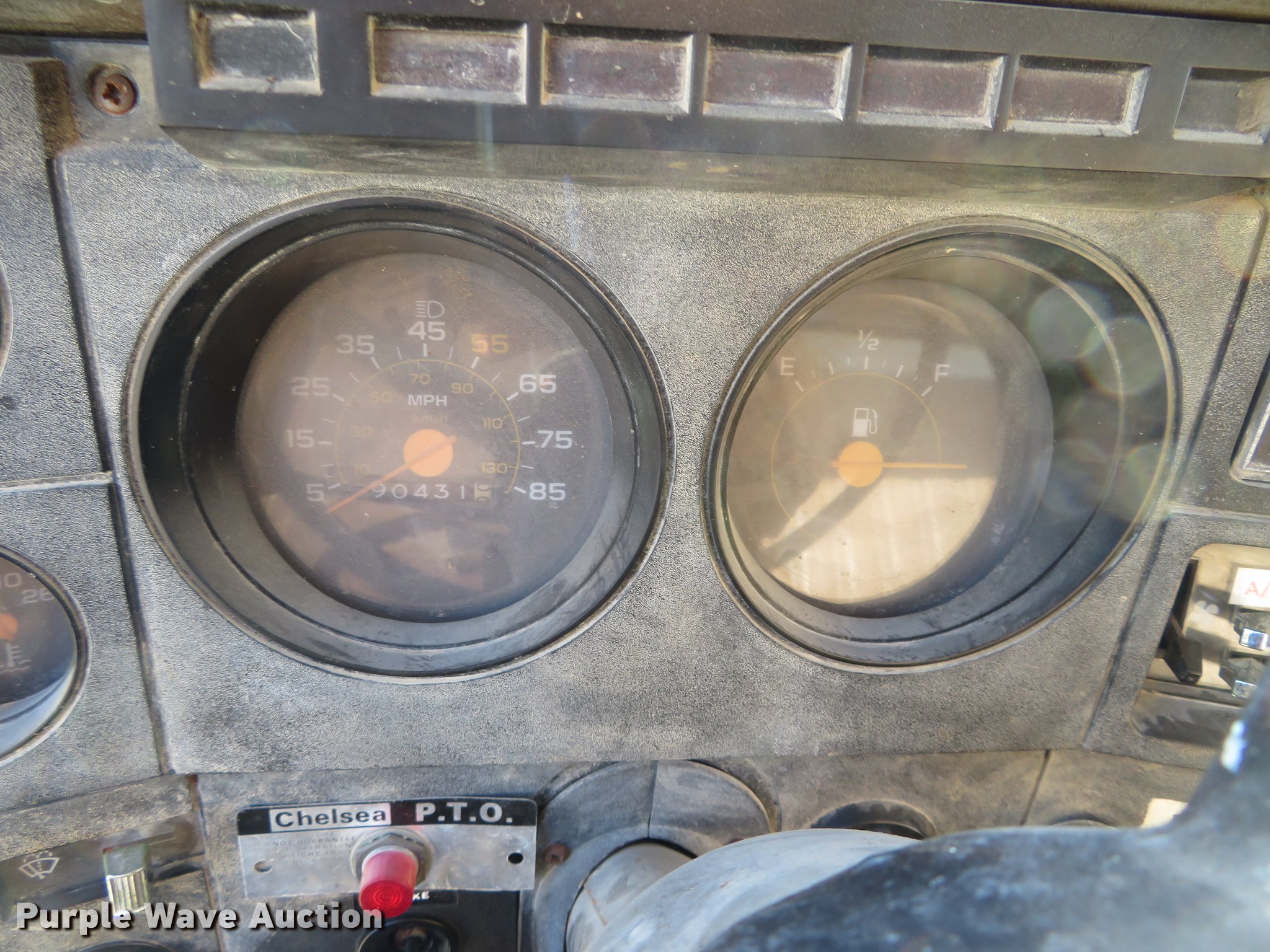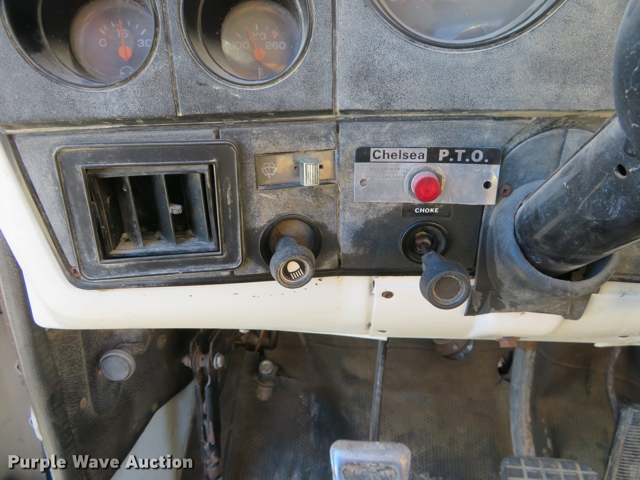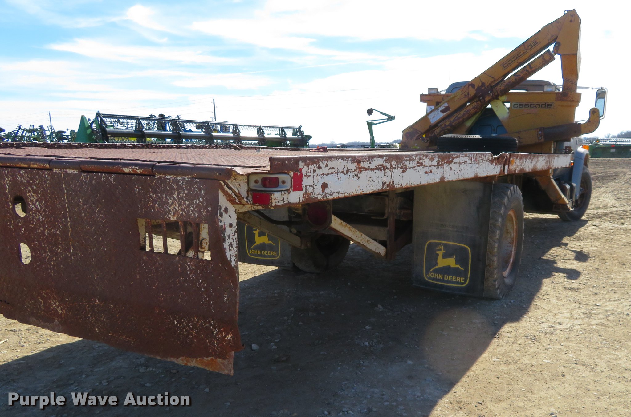 Purple Wave is selling a used Flat Bed Truck in Kansas. This item is a 1985 Chevrolet C70 flatbed truck with crane with the following: 90,431 miles on odometer, 6.0L V8 gas engine, Five speed manual transmission, 20'7"L x 8'W steel flatbed, 24"L dovetail, Chain driven winch, Cascade 60C compact knuckle boom, 9,650 lbs capacity, 9.00-20 tires