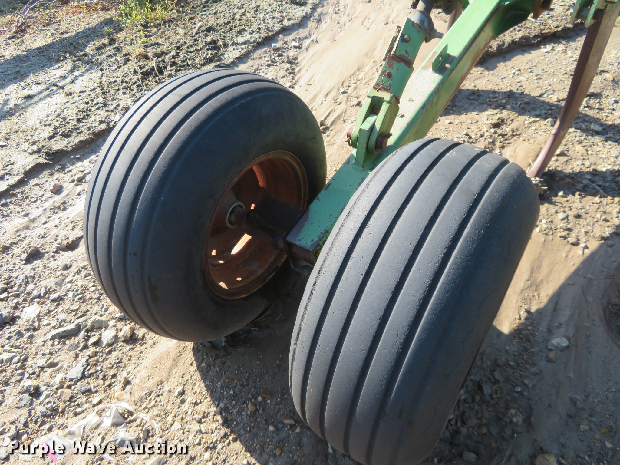 Purple Wave is selling a used Ripper in Kansas. This item is a John Deere 915 ripper with the following: 211"W, (9) shanks, Hydraulic lift, Pin hitch, 15" tires, Serial N00915X000551