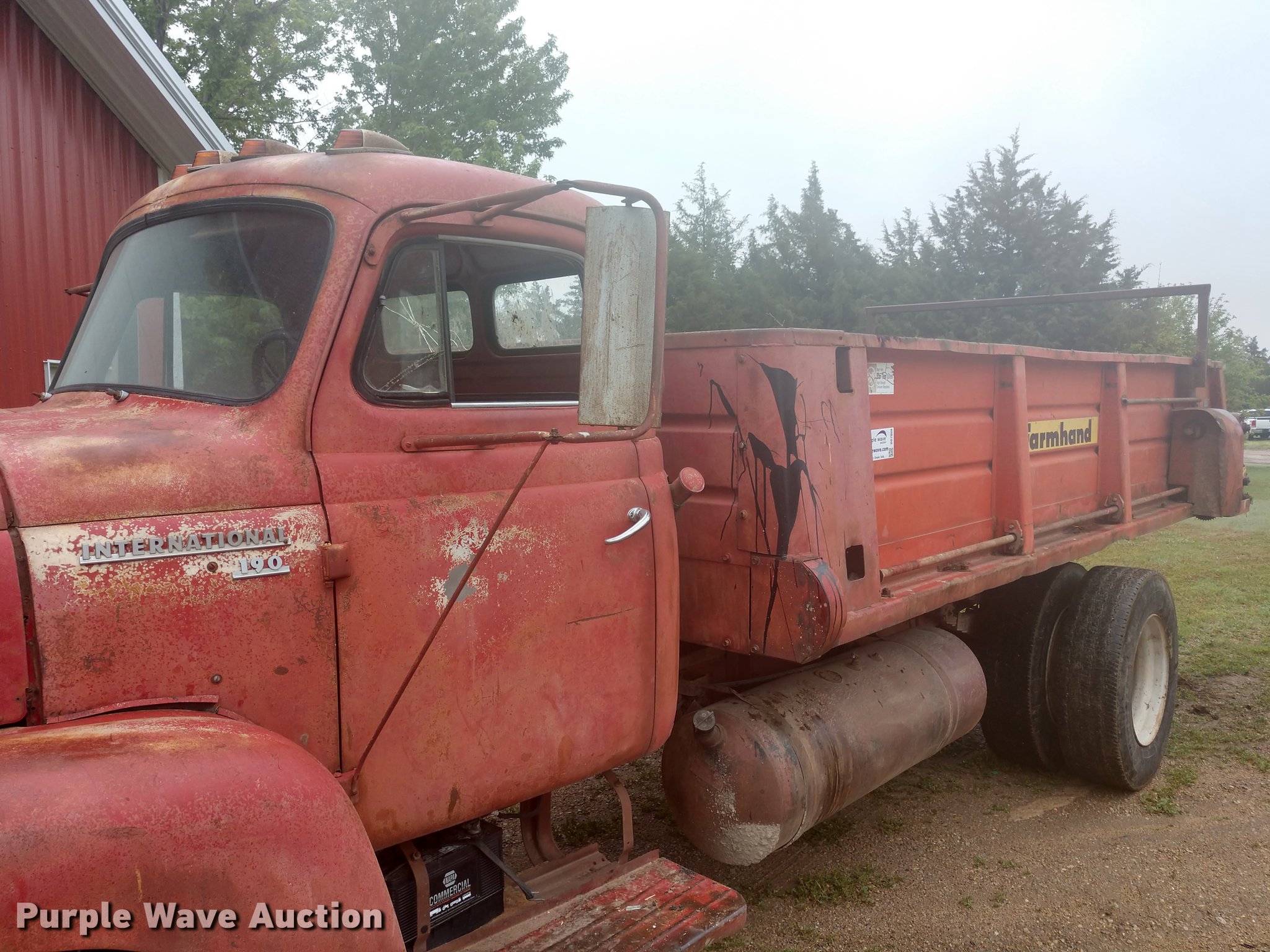 Purple Wave is selling a used Manure Spreader Truck in Kansas. This item is a 1952 International 190 manure spreader truck with the following: 88,452 miles on odometer, Six cylinder gas engine, Five speed manual transmission, Two speed rear end, Farm Hand H314-A spreader bed, 17'L x 80"W, 11R22.5 front tires, 275/80R22.5 rear tires