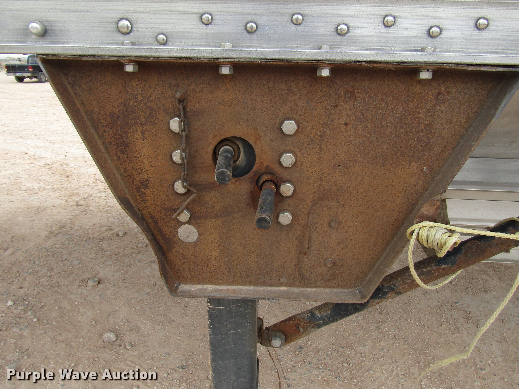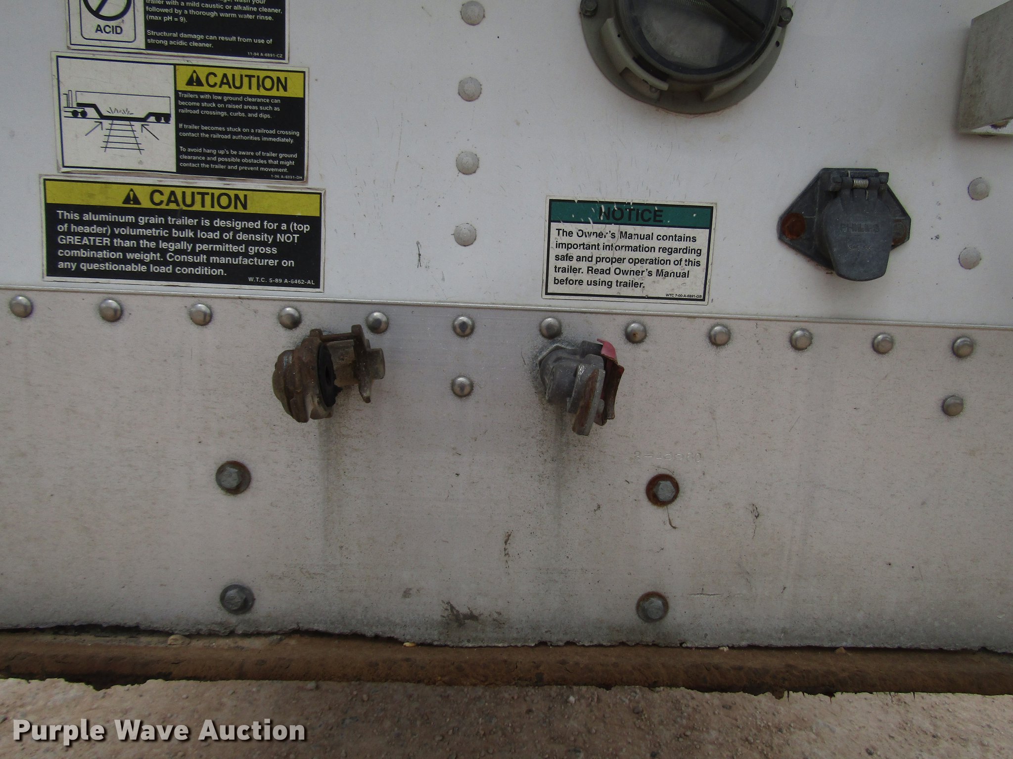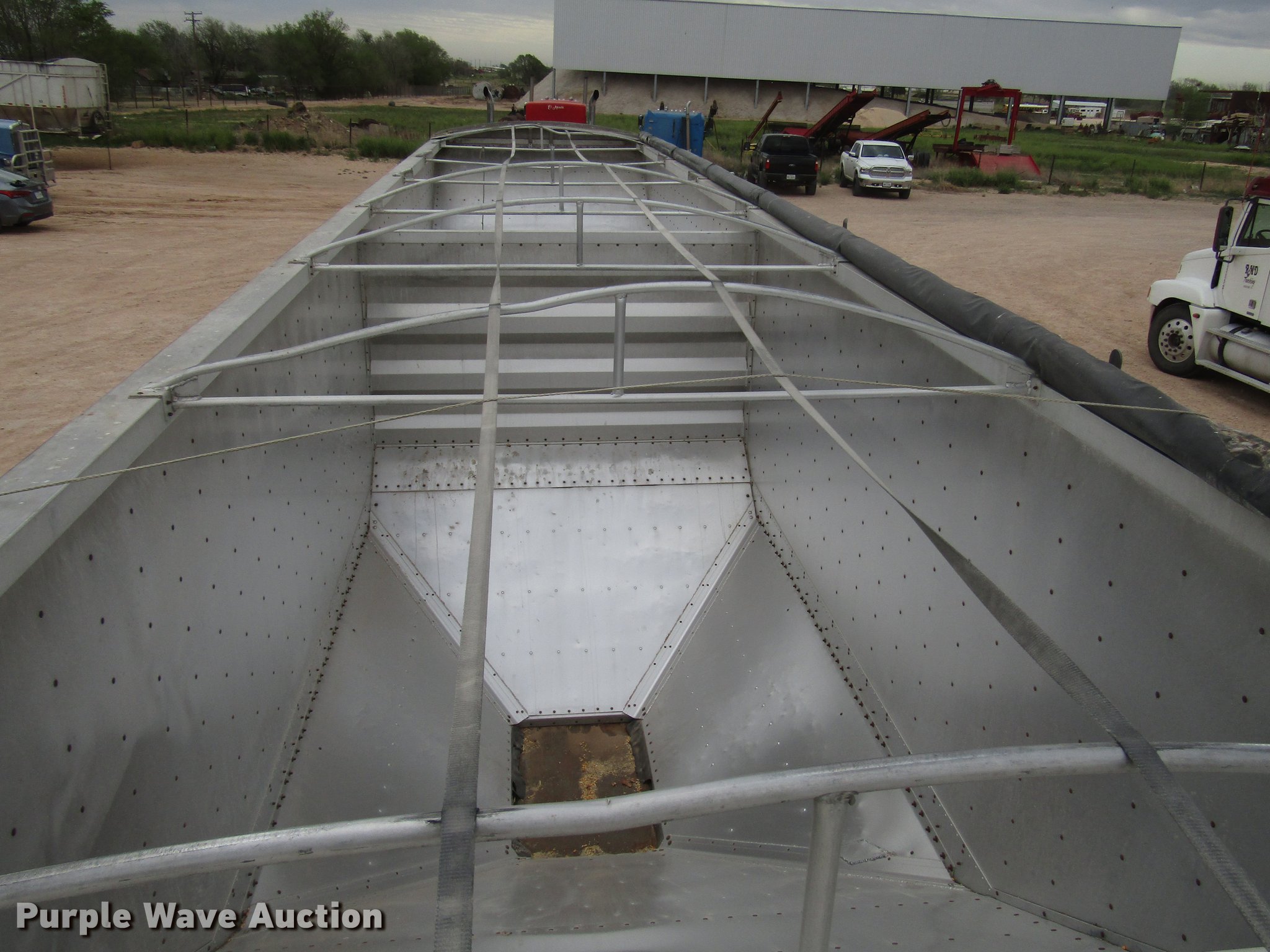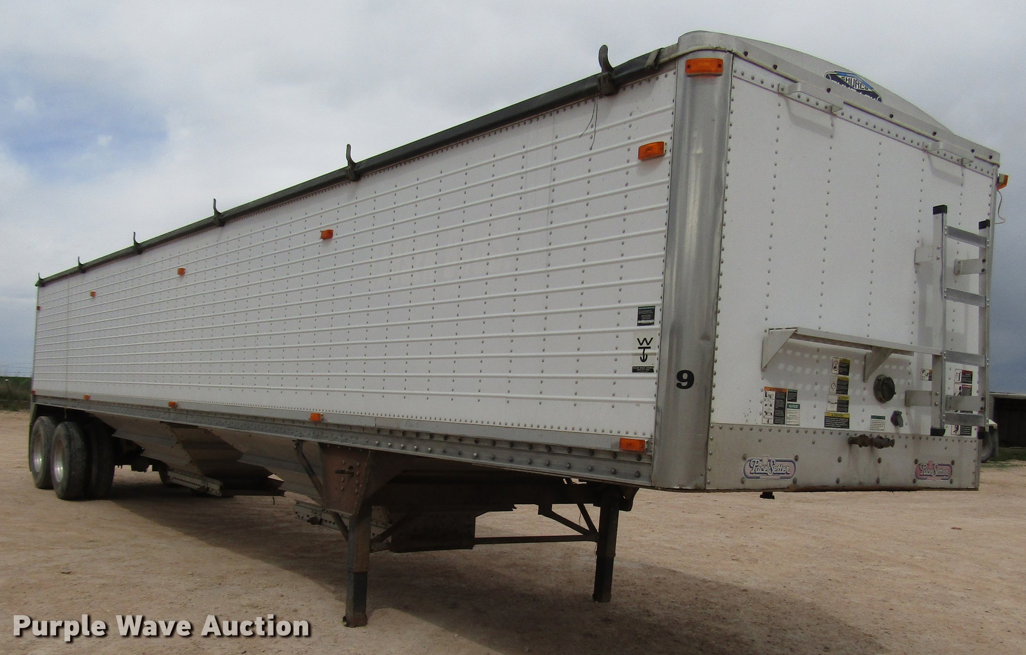 Purple Wave is selling a used Grain or Commodity Trailer in Texas. This item is a 2005 Wilson Pace Setter double hopper bottom grain trailer with the following: 42'L x 92"W overall, 68" side height, Manual trap gates, Front and rear ladders, Front and rear platforms, Roll tarp, Aluminum construction, Dual leg landing gear, Spring suspension, Air brakes, Tandem axle, Aluminum wheels, 11R22.5 tires, Tarp damaged