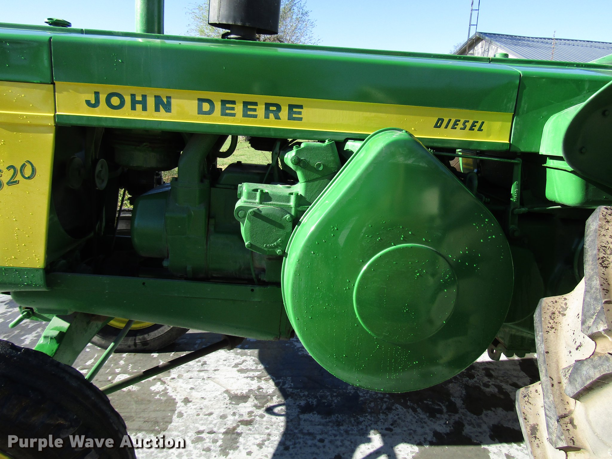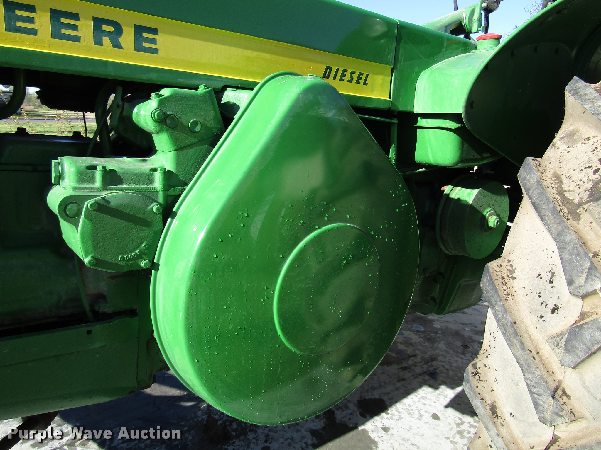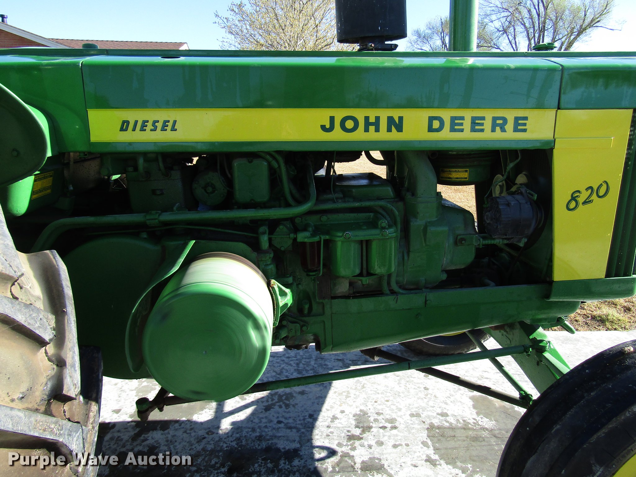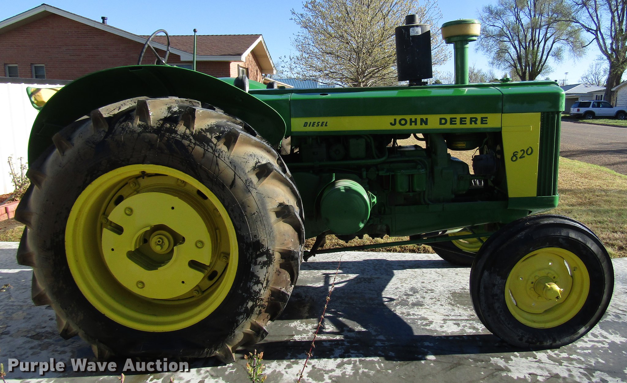 Purple Wave is selling a used Tractor in Texas. This item is a John Deere 820 tractor with the following: 5,468 hours on meter, John Deere two cylinder diesel engine, Four cylinder gas pony motor, Manual transmission, 6F-1R gears, Rear hydraulic remote set, 88" wheelbase, 7.50-18SL front tires, 18.4-34 rear tires, Unit has been converted to 12V, Serial 8207059