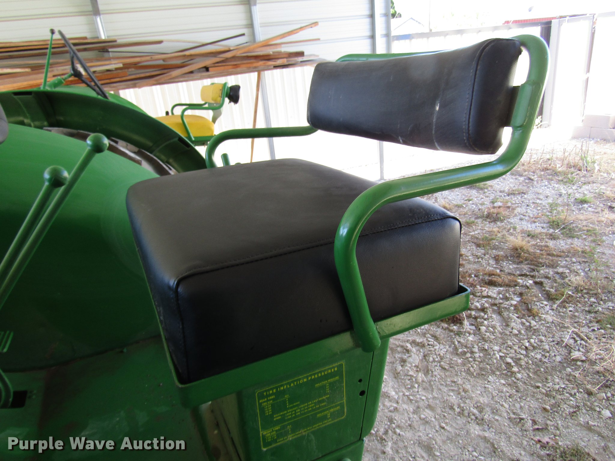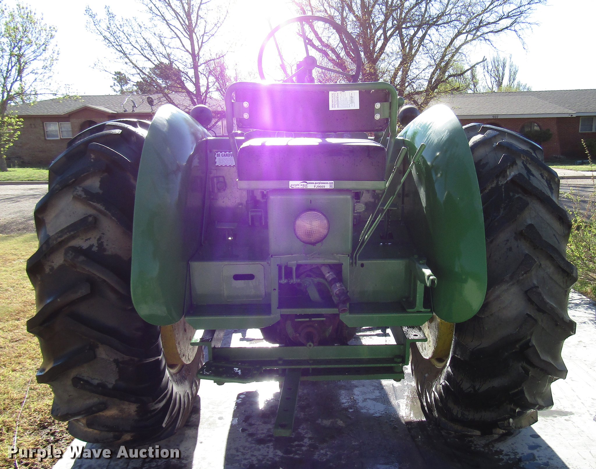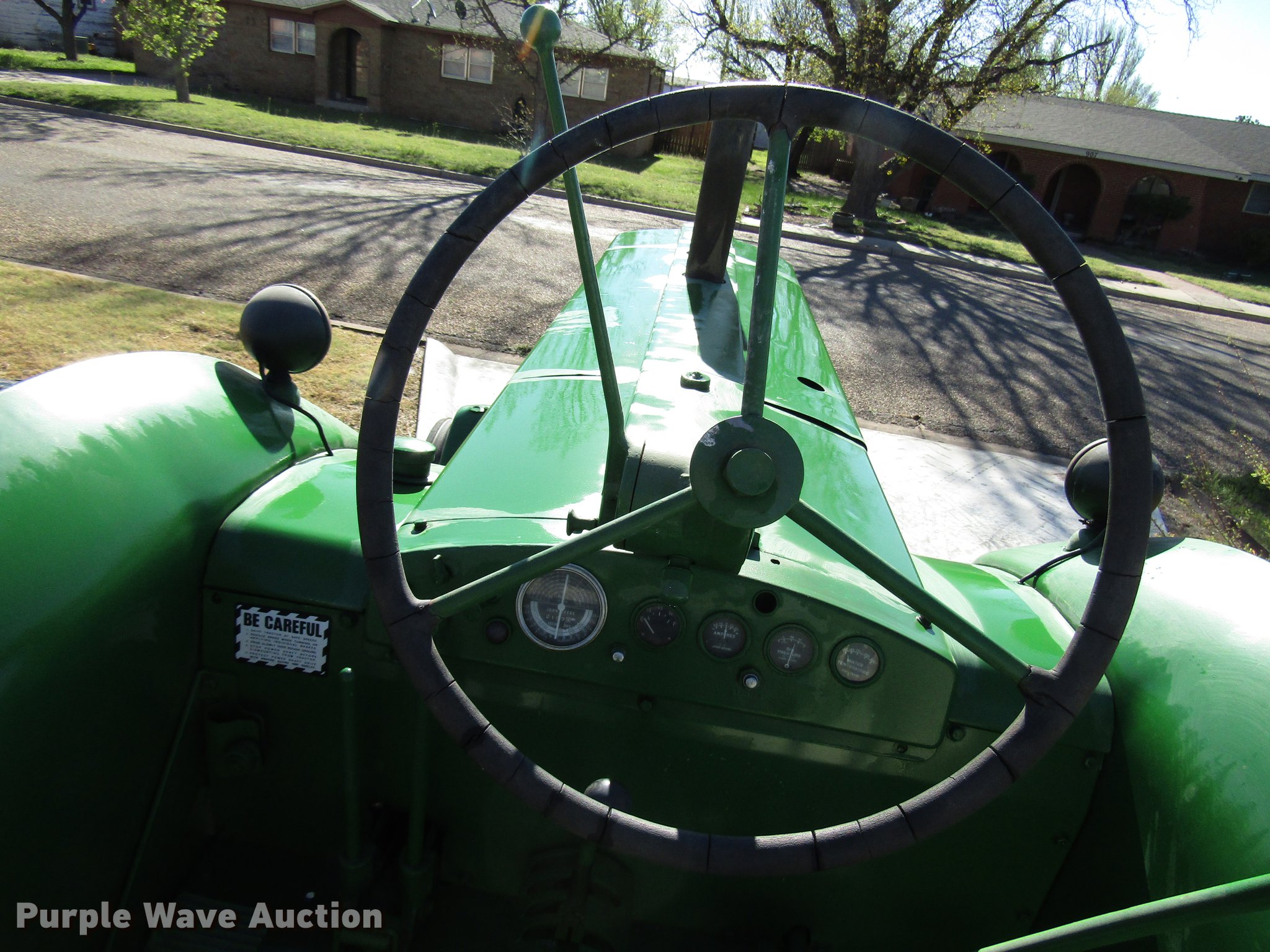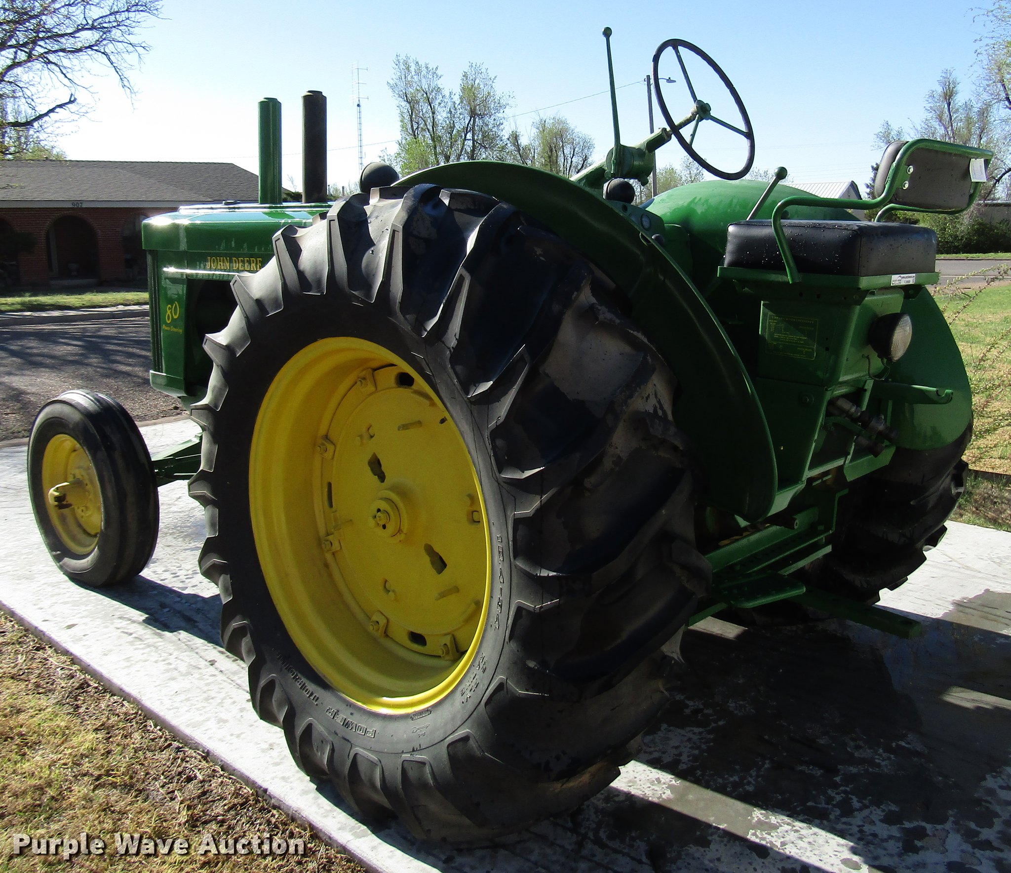 Purple Wave is selling a used Tractor in Texas. This item is a John Deere 80 tractor with the following: 2,107 hours on meter, John Deere two cylinder diesel engine, Four cylinder gas pony motor, Manual transmission, 6F-1R gears, 540 PTO, Rear hydraulic remote set, 86" wheelbase, 7.50-18SL front tires, 18.4-34 rear tires, Unit has been converted to 12V, Serial 8000173