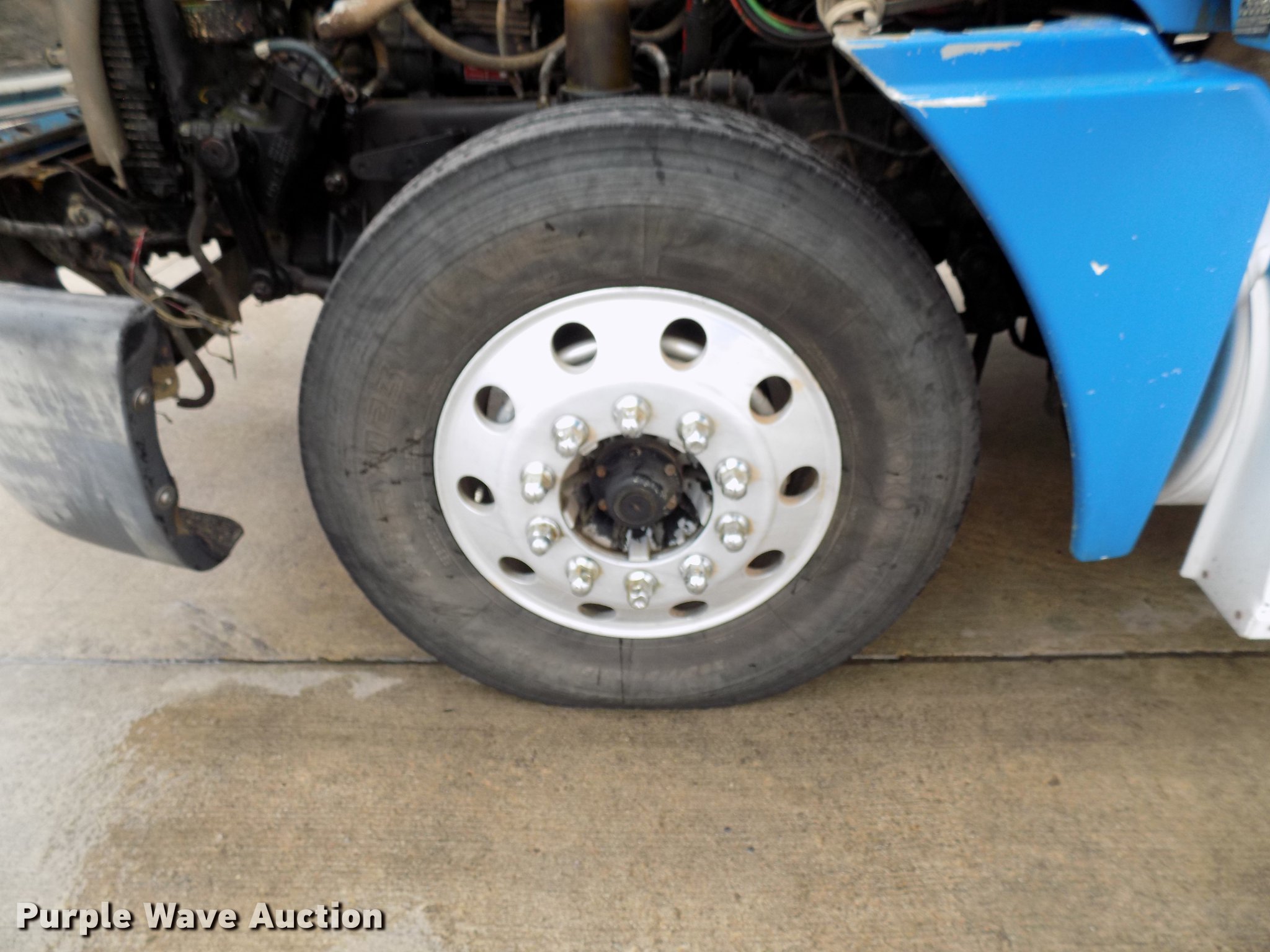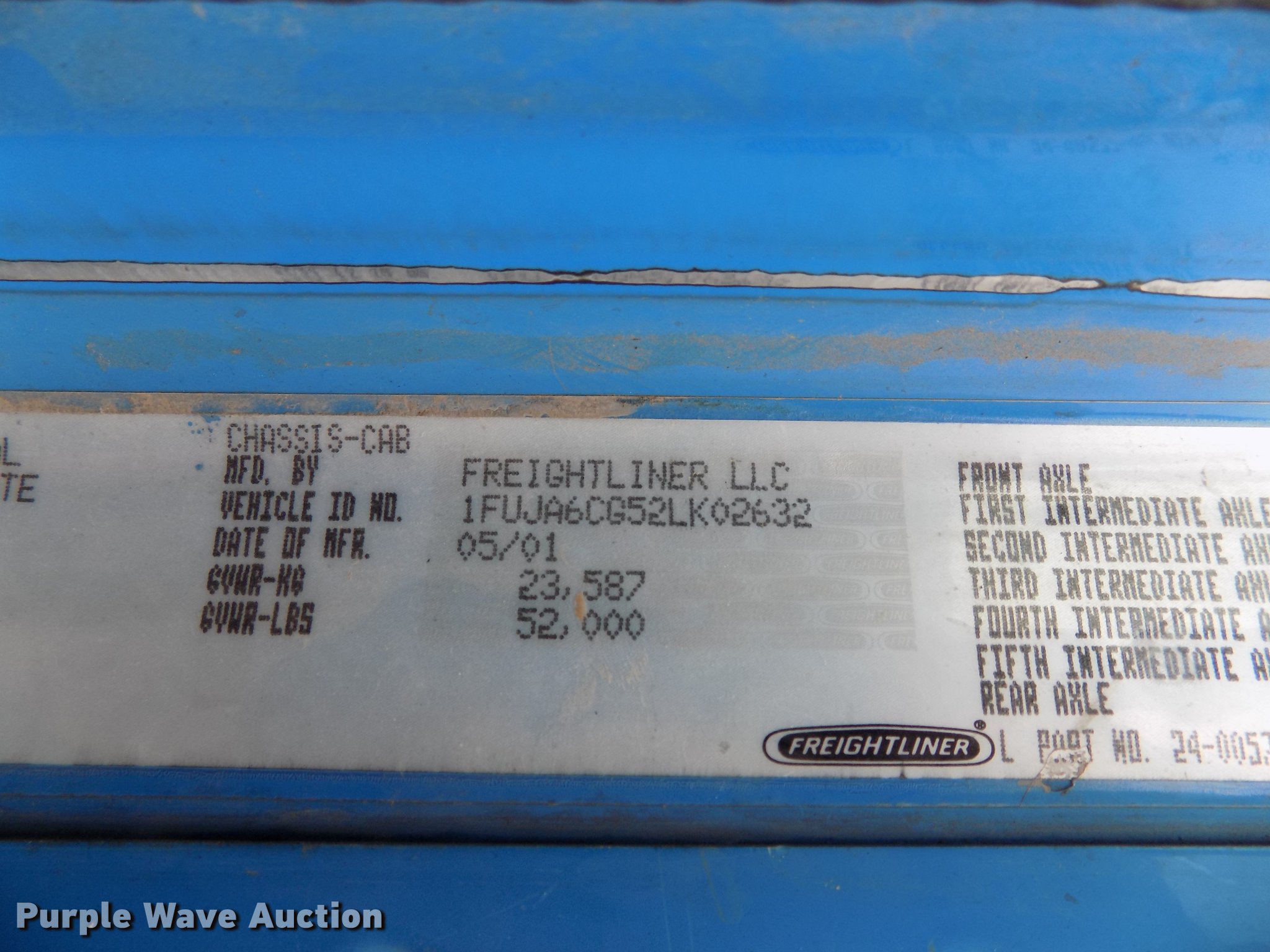Purple Wave is selling a used Truck Tractor in Oklahoma. This item is a 2002 Freightliner Columbia semi truck with the following: 137,898 miles on odometer, Detroit Diesel Series 60 12.7L L6 diesel engine, 10 speed manual transmission, Tandem axle, Inter-axle differential lock, AC and heat, Power windows, Air suspension seat, Sleeper, Single bed, PTO, Wet kit, Sliding fifth wheel plate, Dual fuel tanks, Air suspension, Air brakes, 236" wheelbase, 295/75R22.5 tires, GVWR 52,000 lbs