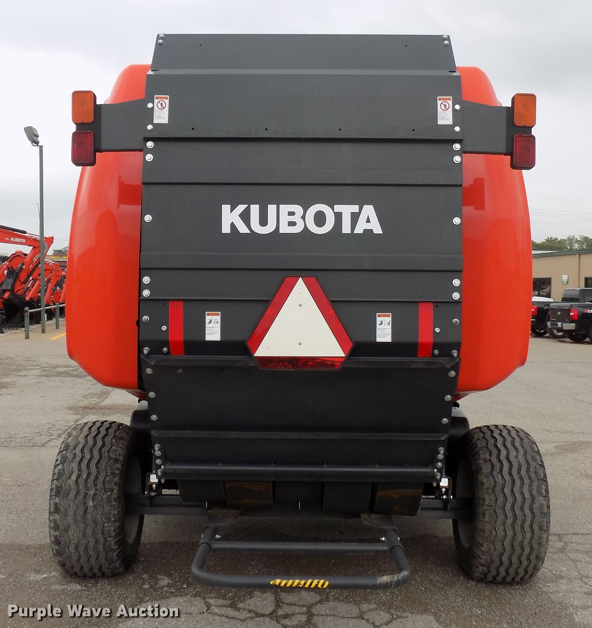Purple Wave is selling a used Round Baler in Oklahoma. This item is a Kubota BV4180 round baler with the following: Approx. 6,000 bale count, 4' x 6' bale capacity, 60"W pickup, 16x6.50-8 gauge wheels, Auto-tie, Twine tie, Net-wrap, Bale kicker, Silage special, Transport lights, 540 PTO, Pin hitch, 15.0-55 tires, Serial SNKB167467, Unit# A013029