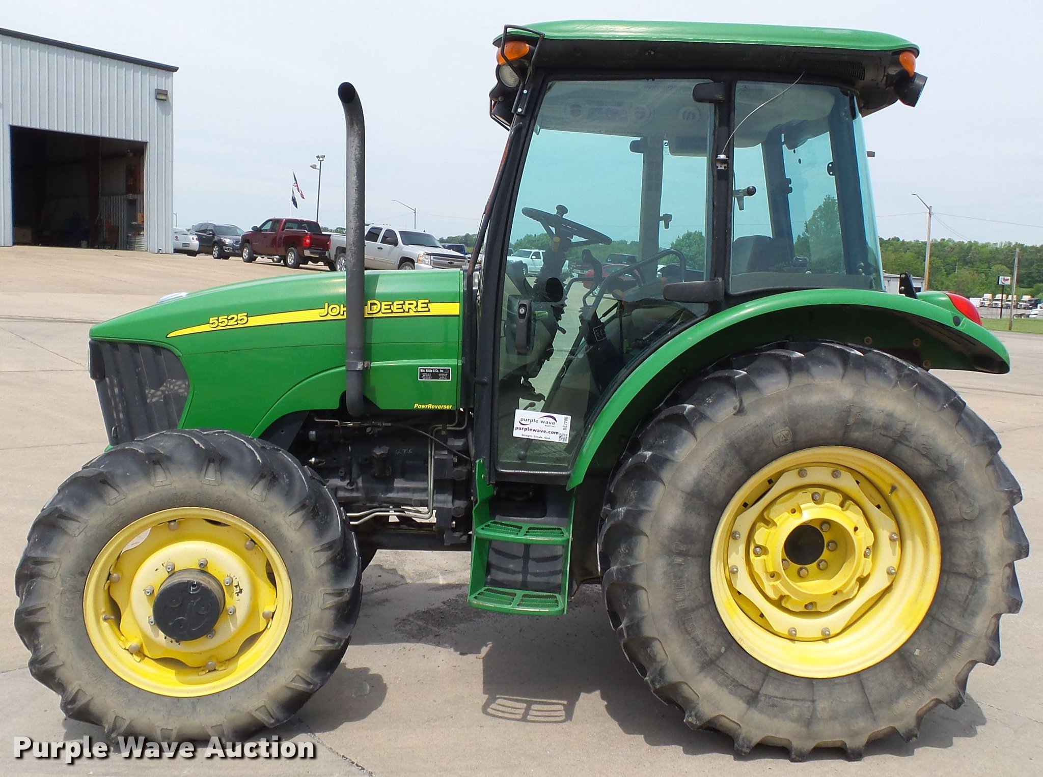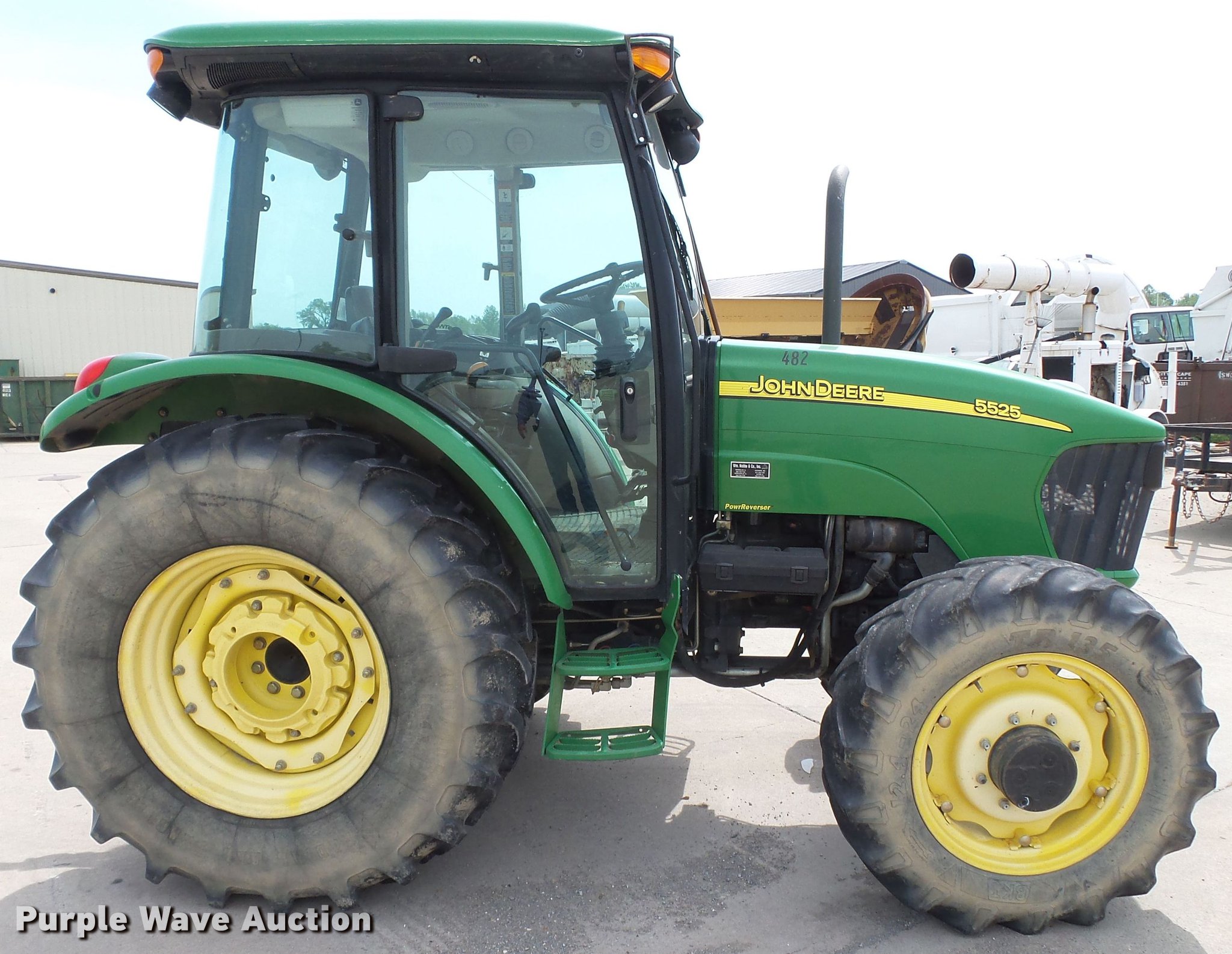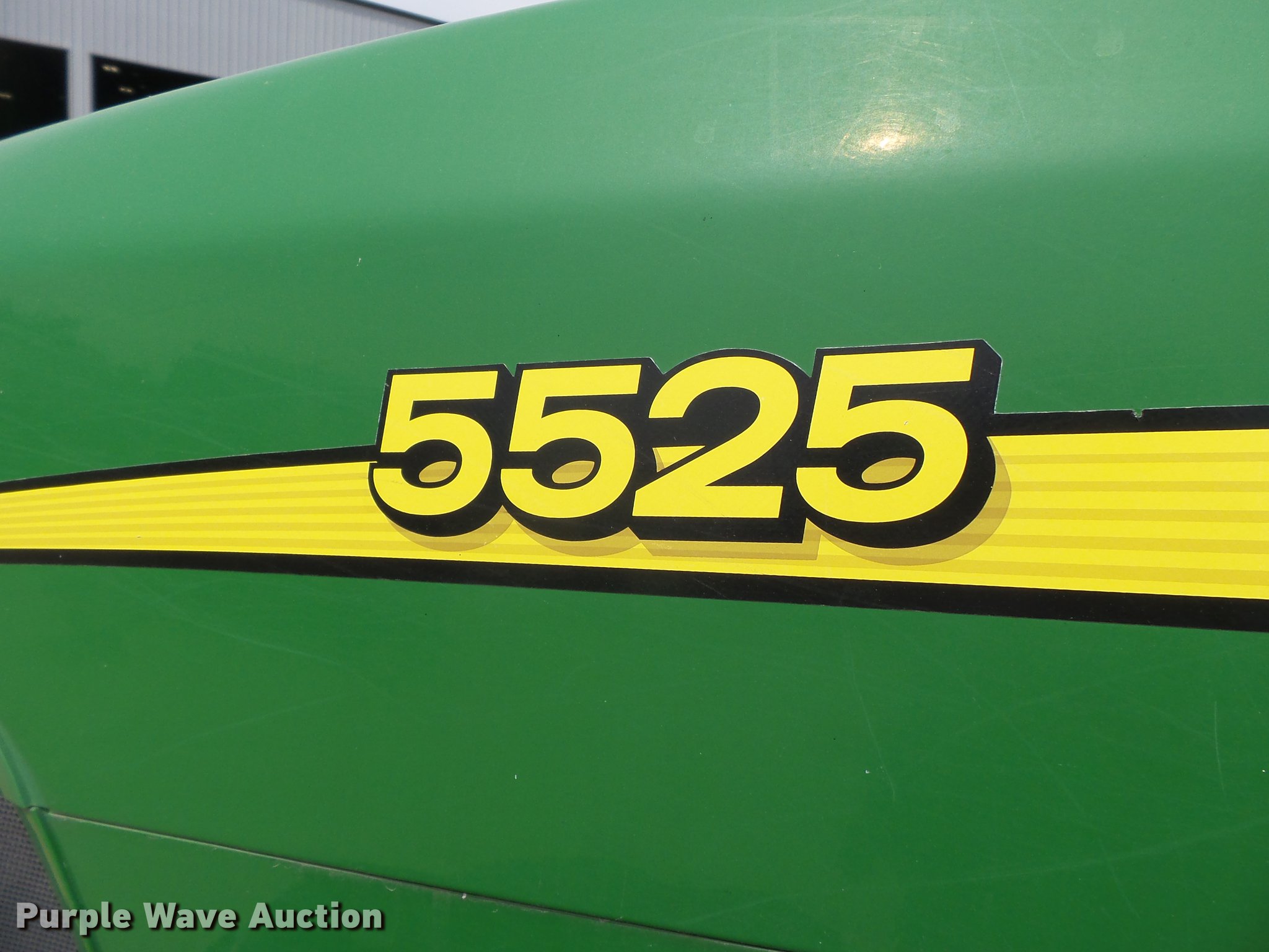 Purple Wave is selling a used Tractor in Missouri. This item is a John Deere 5525 MFWD tractor with the following: 4,372 hours on meter, John Deere 4045D four cylinder diesel engine, Manual transmission, 12F-12R gears, Left-hand reverser, Differential lock, AC and heat, AM/FM, Three point, Seven pin outlet, 540 PTO, (2) front hydraulic remote sets, (2) rear hydraulic remote sets, (2) wheel weights, 12.4-24 front tires, 18.4/80R30 rear tires, Two-way radio not included, Unit# 482