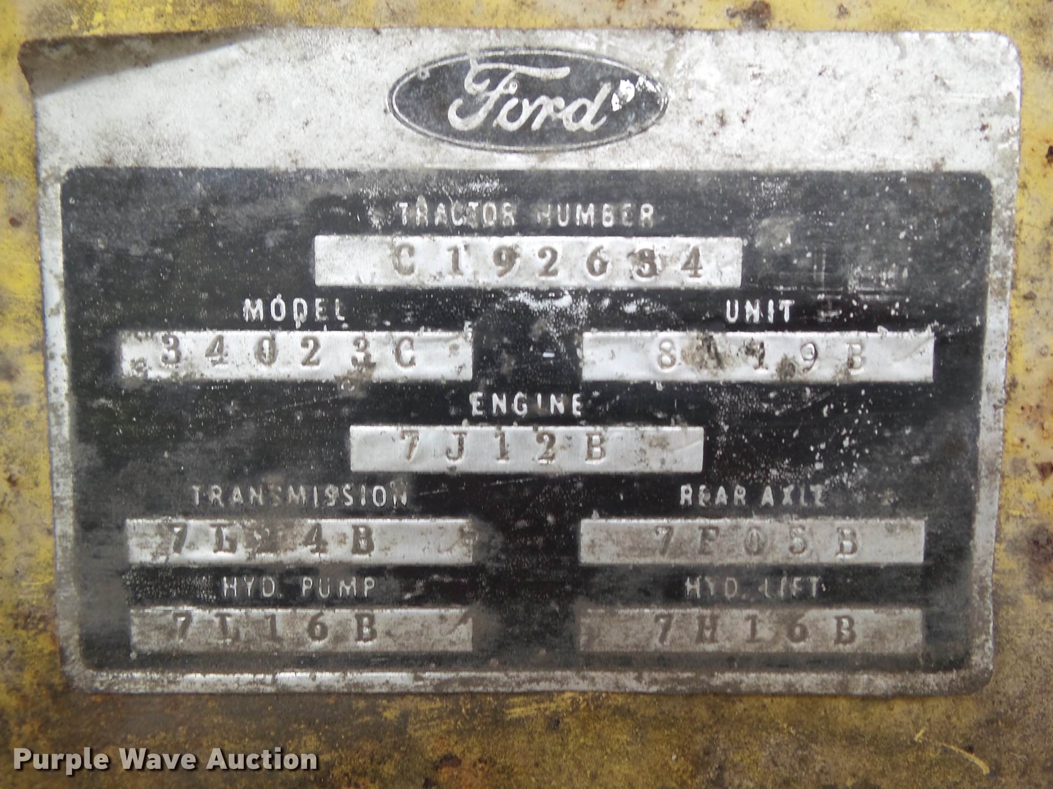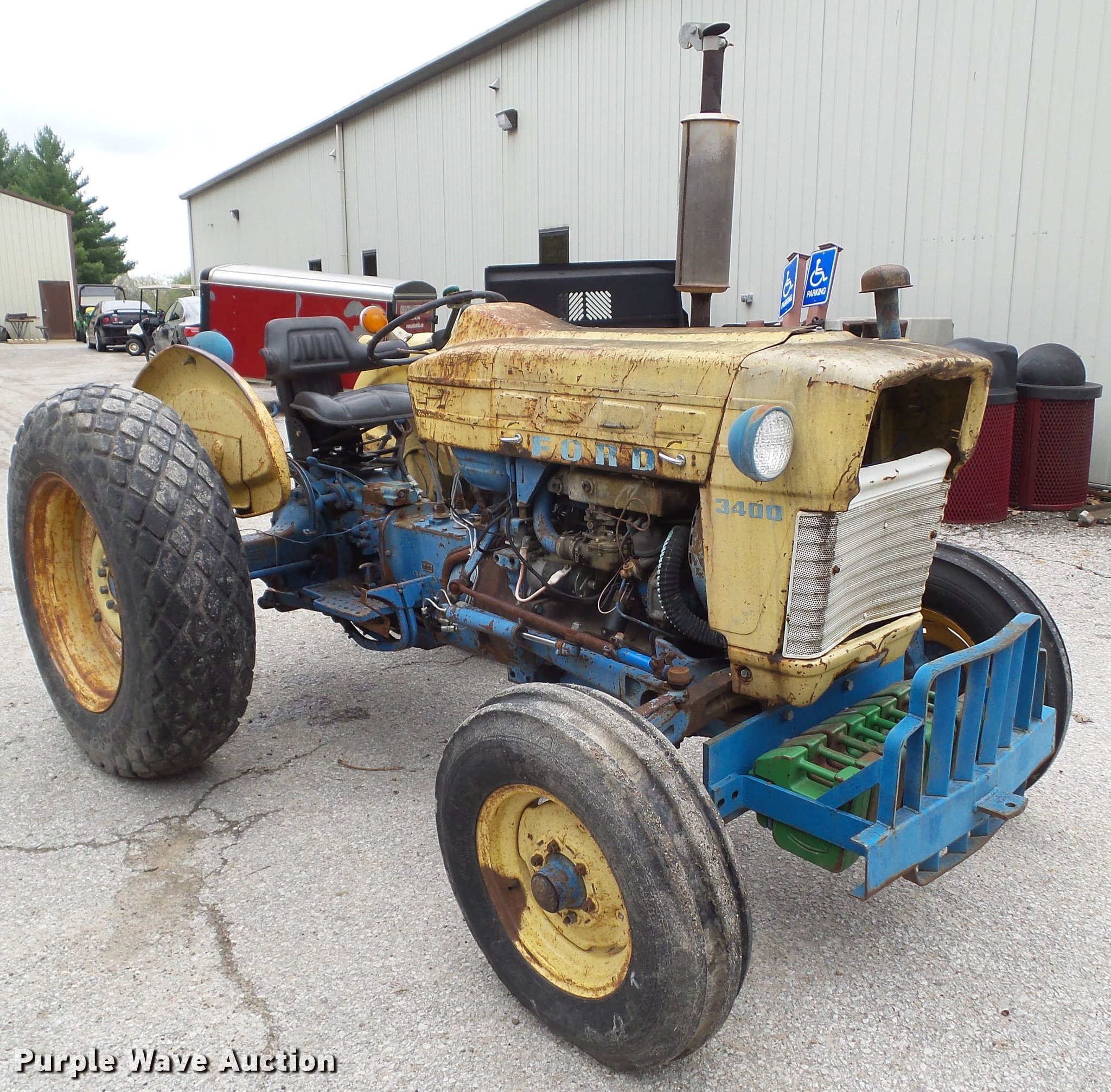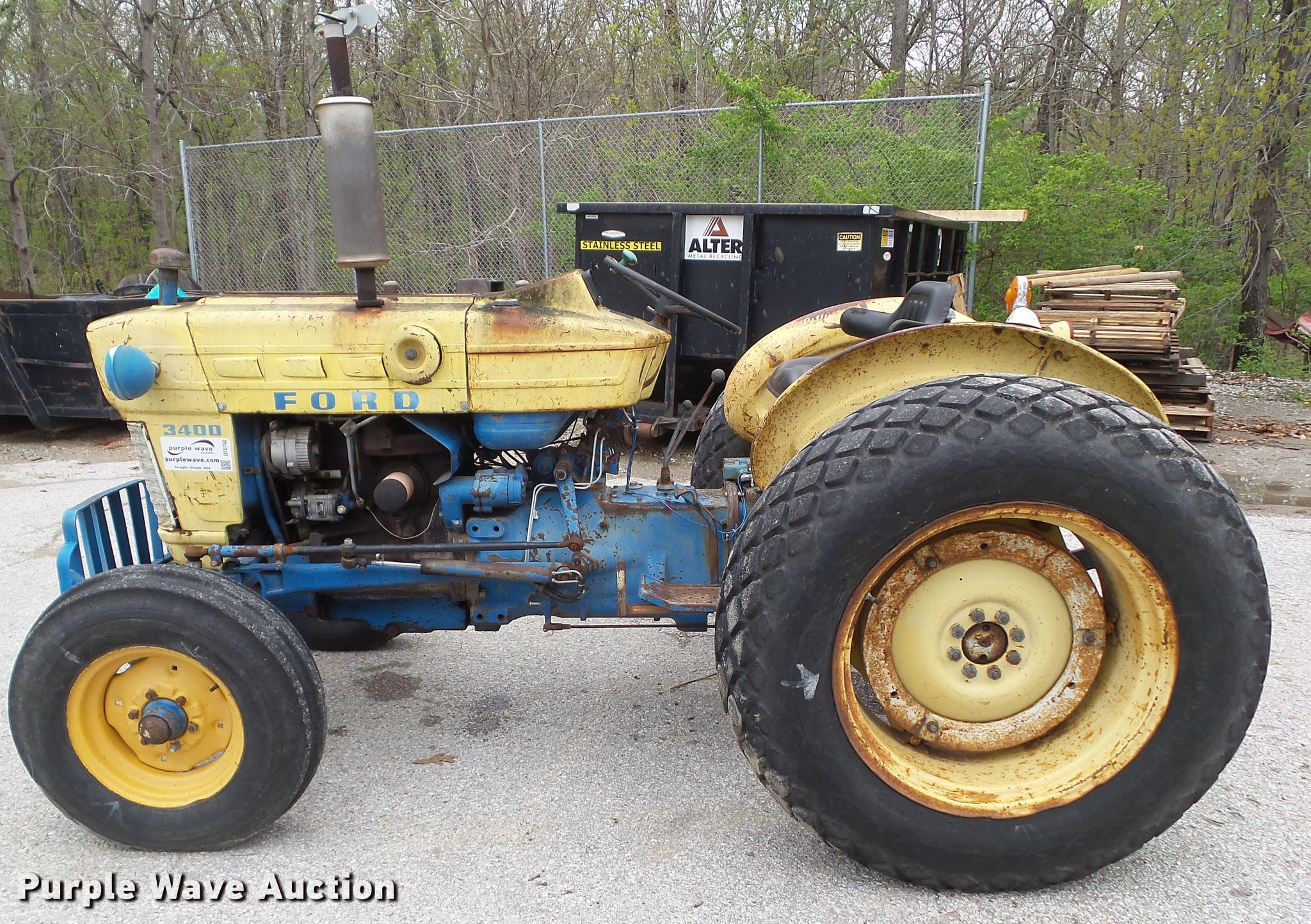 Purple Wave is selling a used Tractor in Iowa. This item is a 1968 Ford 3400 tractor with the following: Ford 3400 2.6L three cylinder gas engine, 46 HP, Serial 7J12B, Dual power transmission, 8F-2R gears, Three point, 540 PTO, Rear hydraulic remote set, (8) suitcase weights, 81" wheelbase, 7.50-16SL front tires, 13.6-28 rear tires, Serial C192634