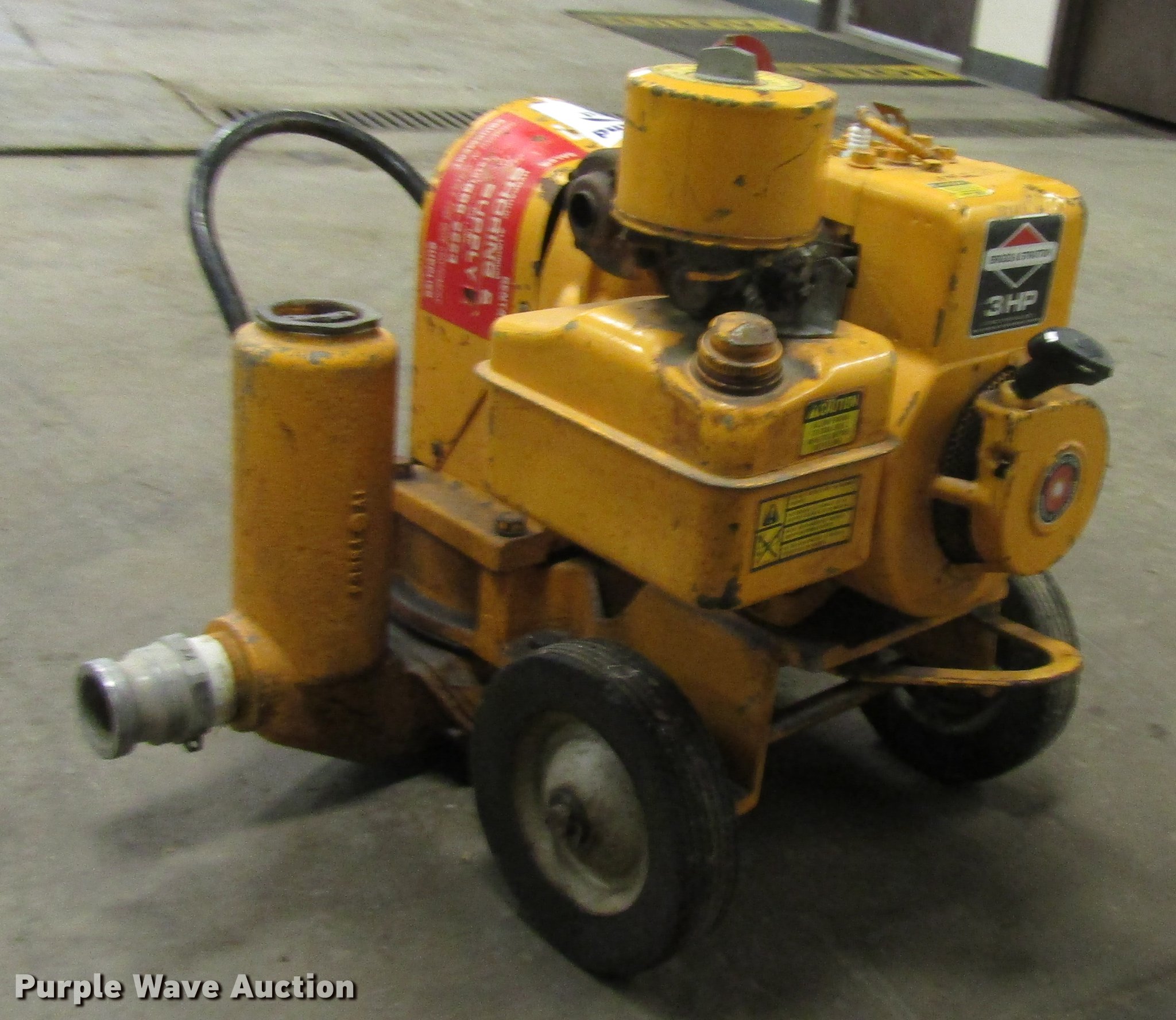 Purple Wave is selling a used Pump in Kansas. This item is a Wacker pump with the following: Briggs & Stratton gas engine, 3 HP, 1.5" inlet/outlet, 60 gpm, Unknown operating condition, Serial 579401047