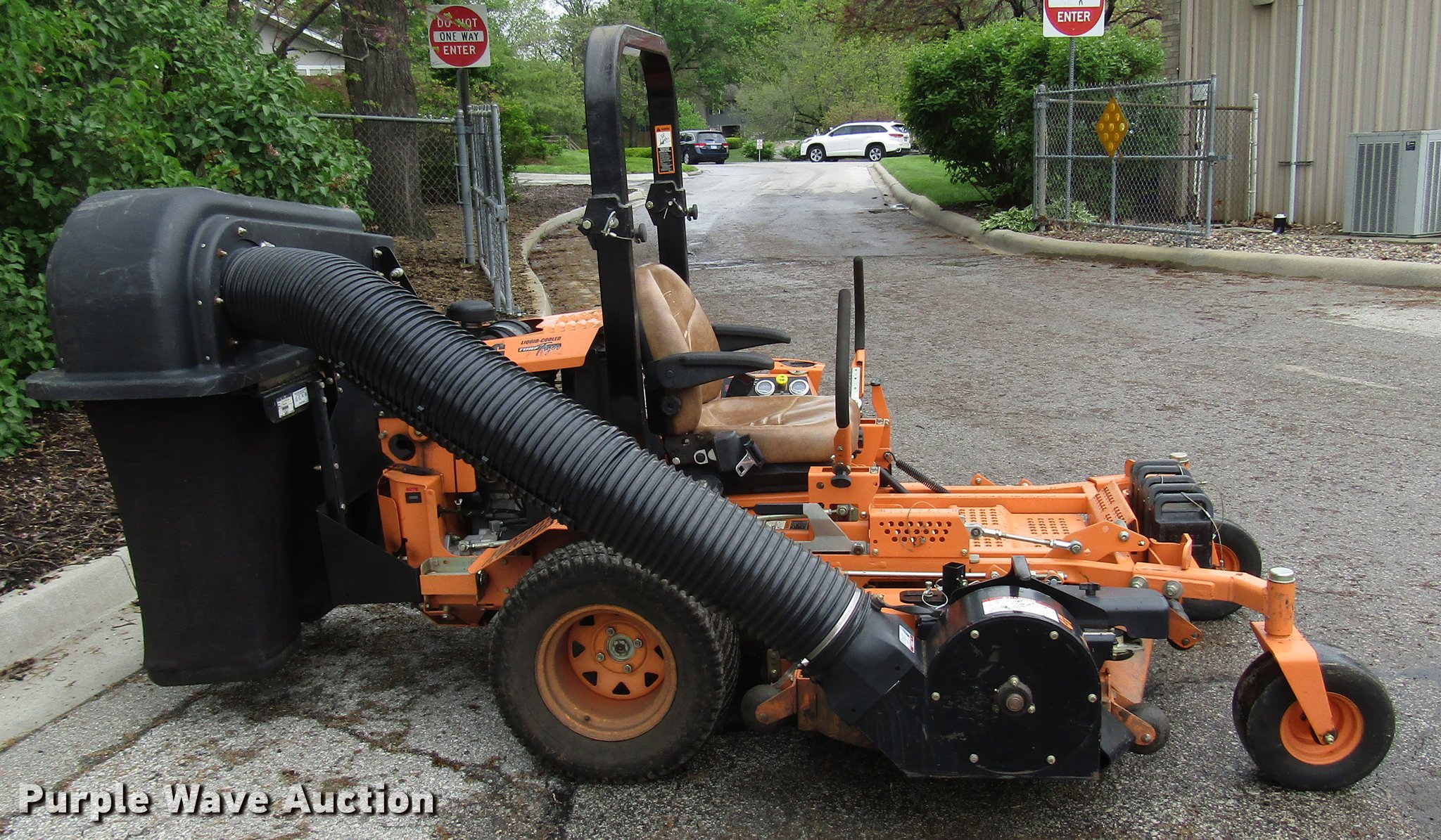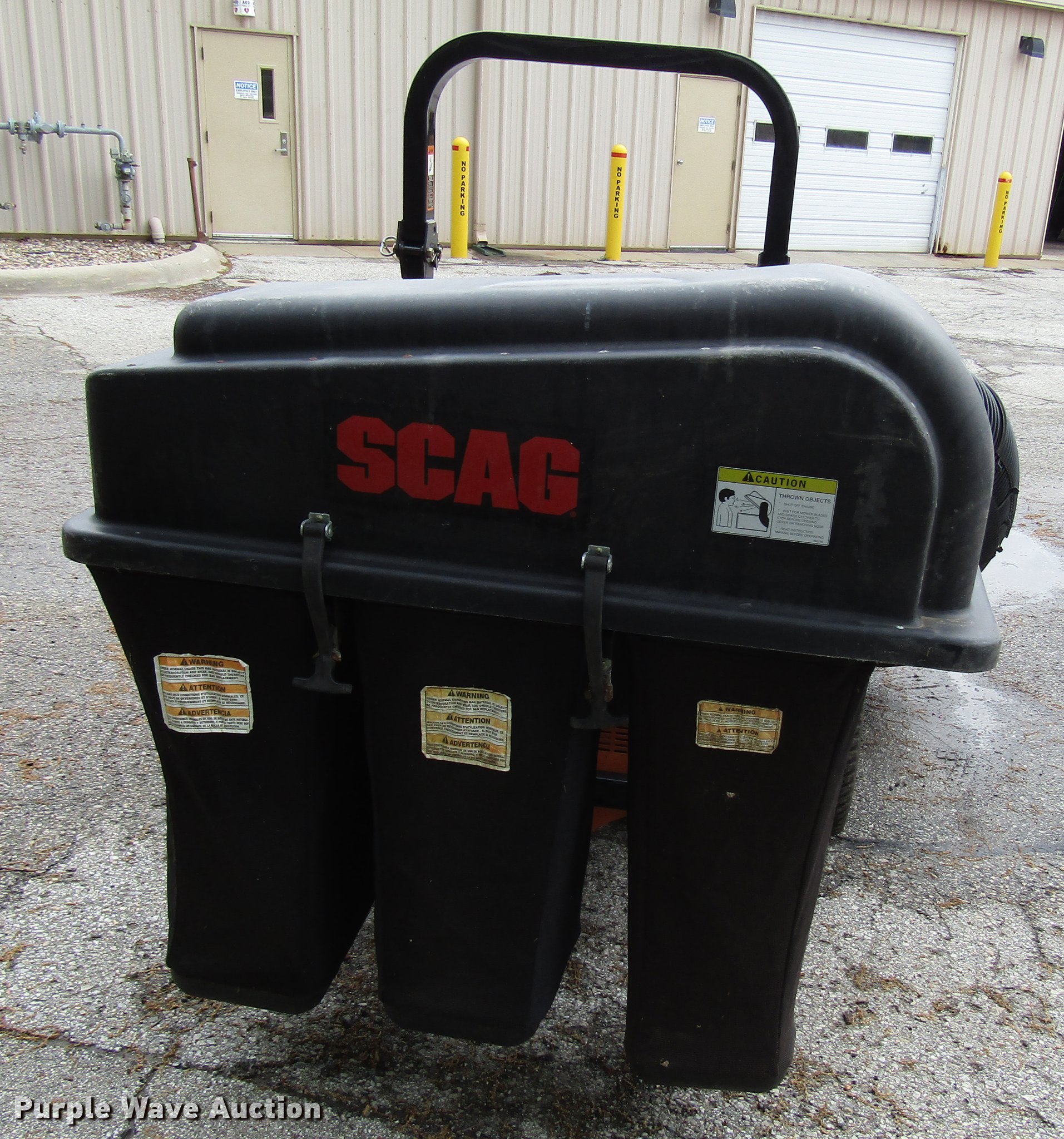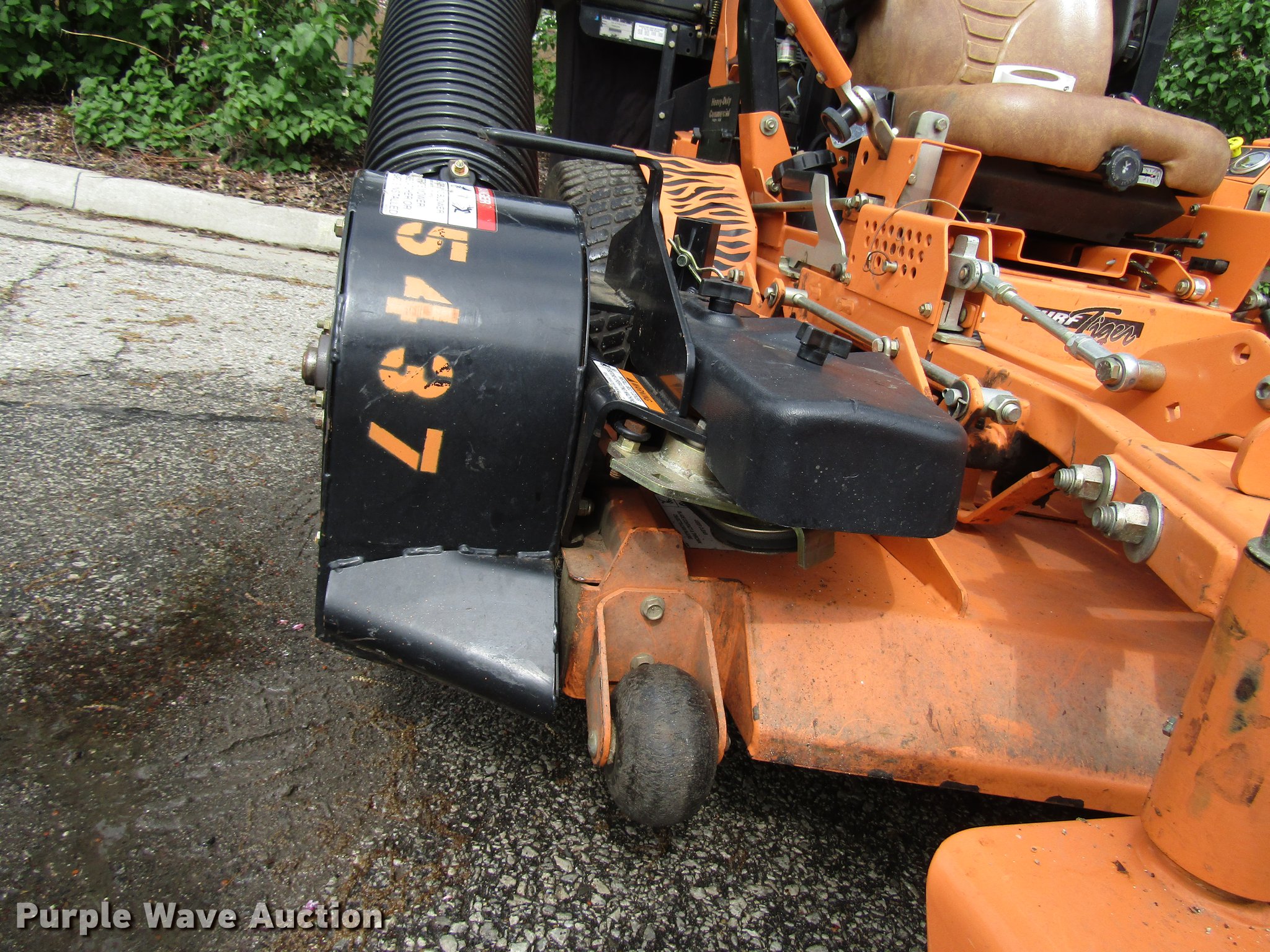 Purple Wave is selling a used Commercial Turf Mower in Kansas. This item is a Scag Turf Tiger ZTR lawn mower with the following: 38 hours on meter, 889 total hours, Hours meter has been replaced, 60" cut, Kohler two cylinder gas engine, 31 HP, Hydrostatic transmission, OROPS, Grass bagger, Flip up front deck, Counterweights, 13x6.50-14.50 front tires, 24x12.00-12 rear tires, Serial E3700205