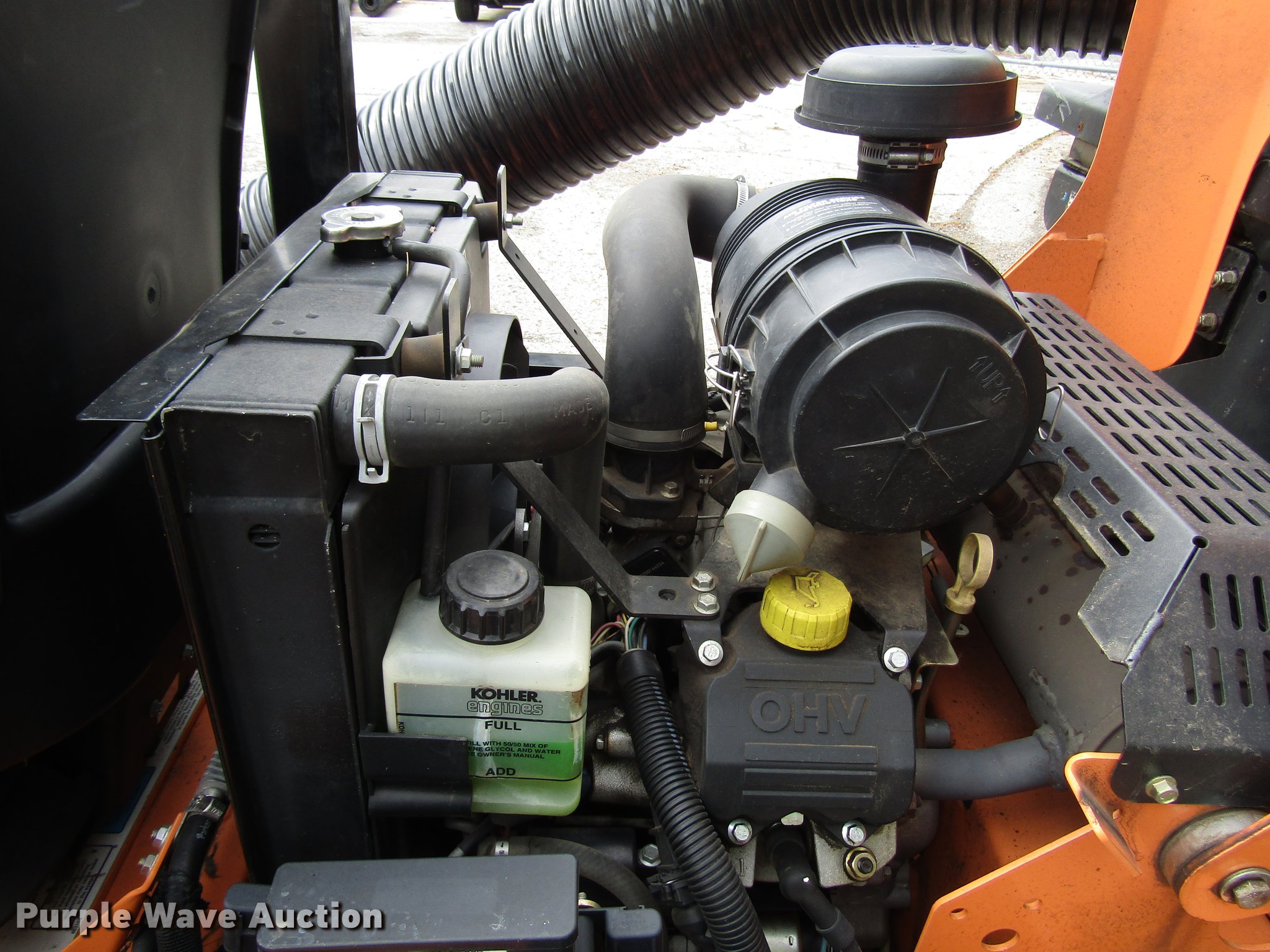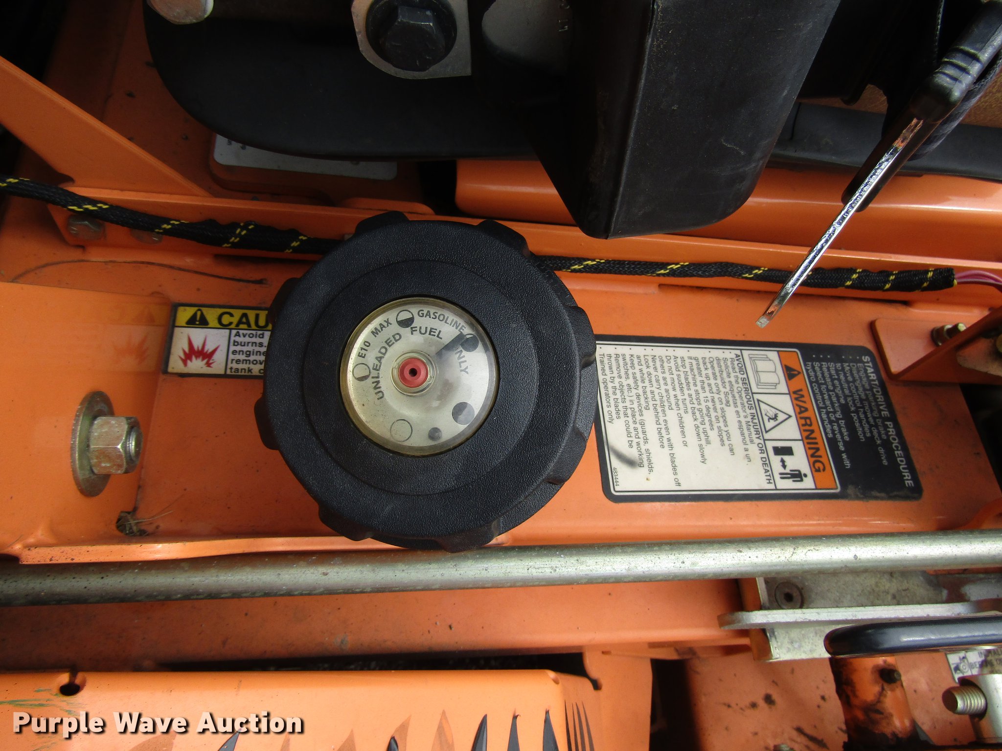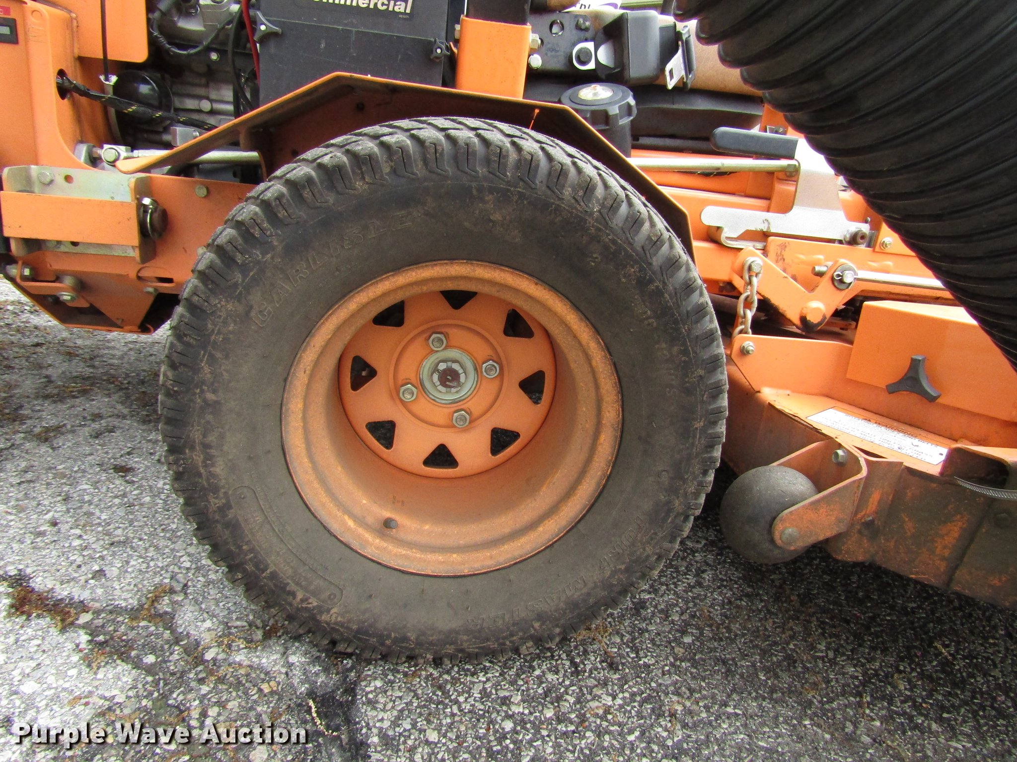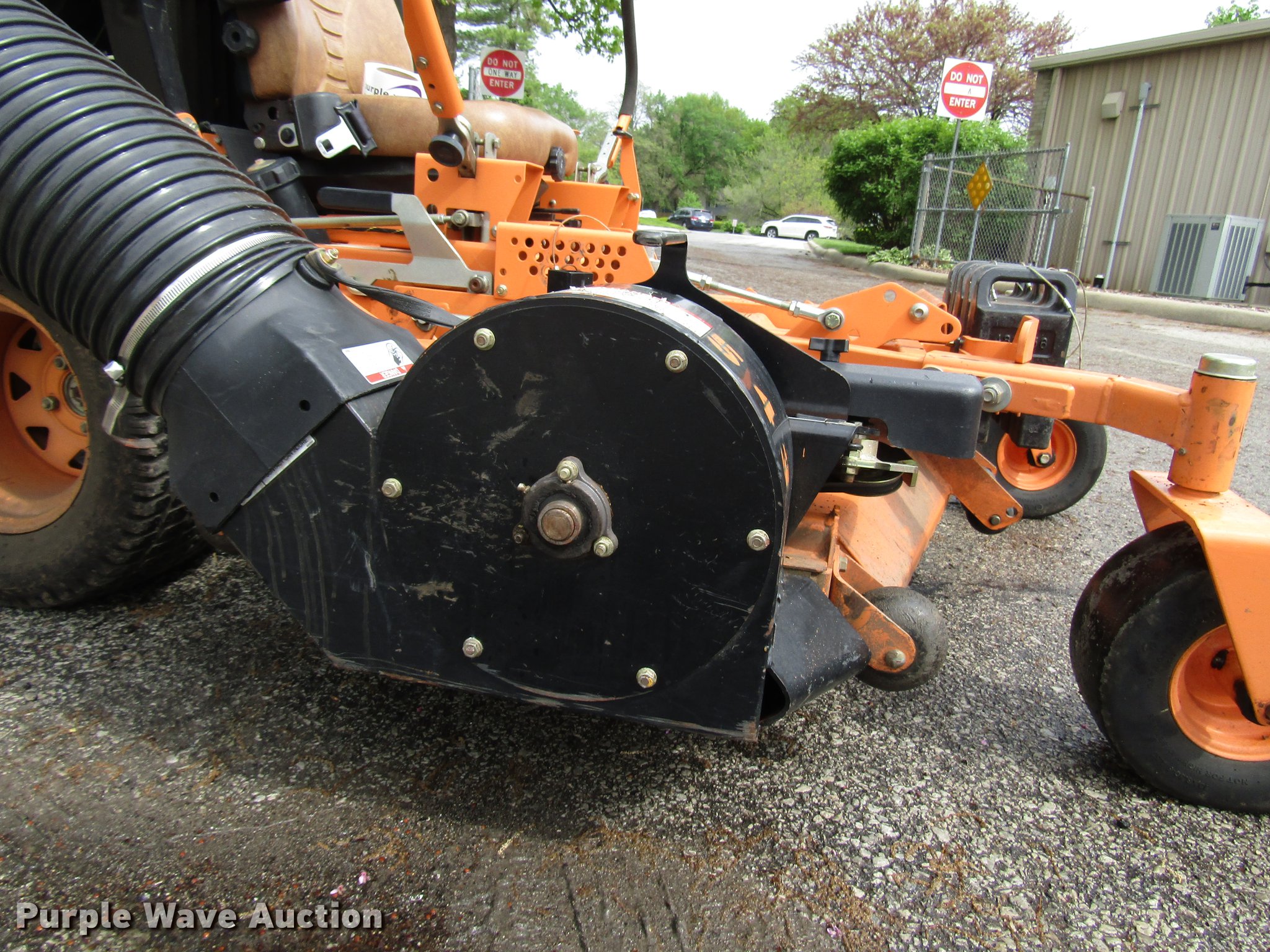 Purple Wave is selling a used Commercial Turf Mower in Kansas. This item is a Scag Turf Tiger ZTR lawn mower with the following: 38 hours on meter, 889 total hours, Hours meter has been replaced, 60" cut, Kohler two cylinder gas engine, 31 HP, Hydrostatic transmission, OROPS, Grass bagger, Flip up front deck, Counterweights, 13x6.50-14.50 front tires, 24x12.00-12 rear tires, Serial E3700205
