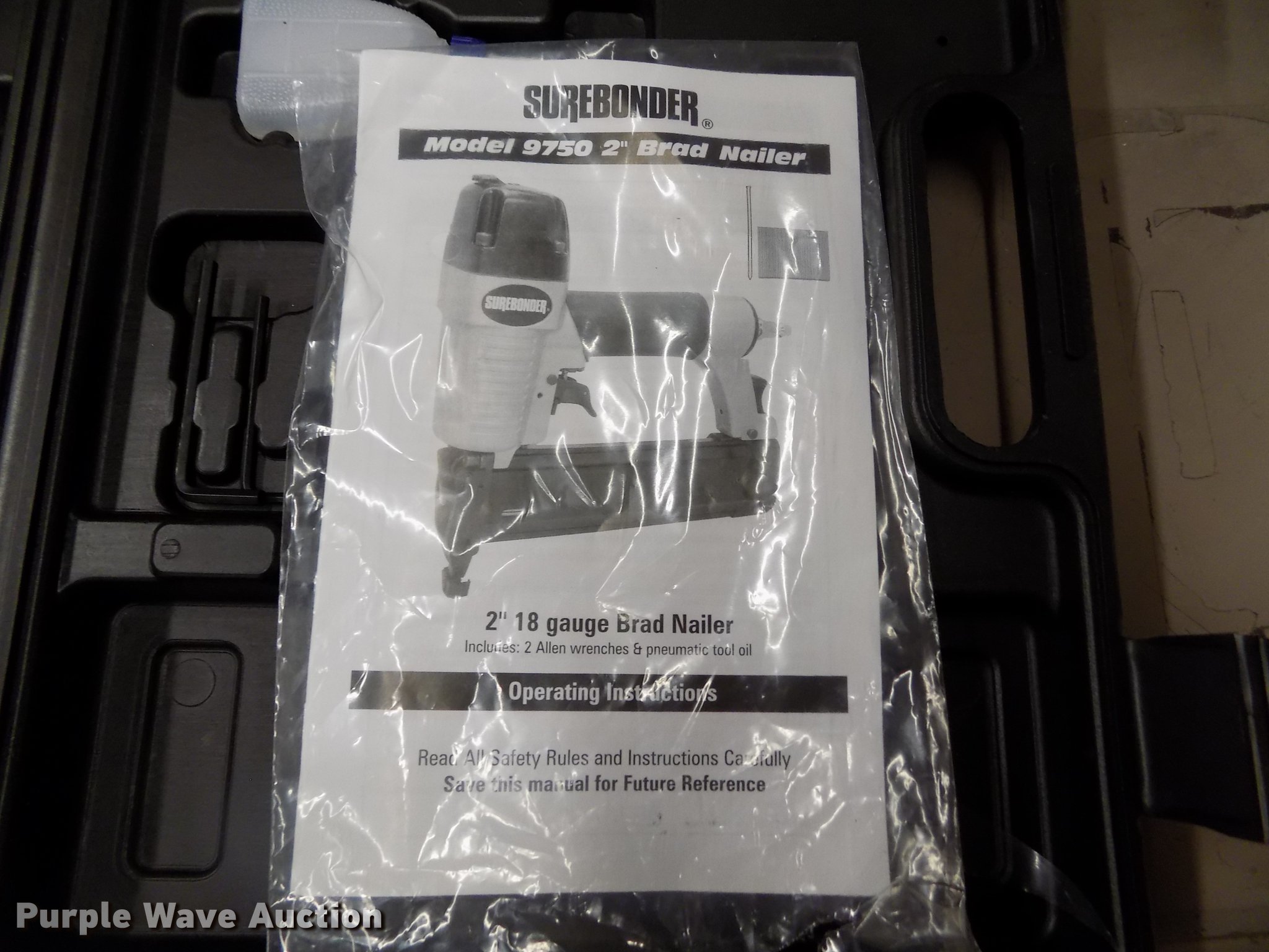 Surebonder 9750 brad nailer has sold in Great Bend, Kansas for $77. Item FG9331 sold on June 4th, 2019.