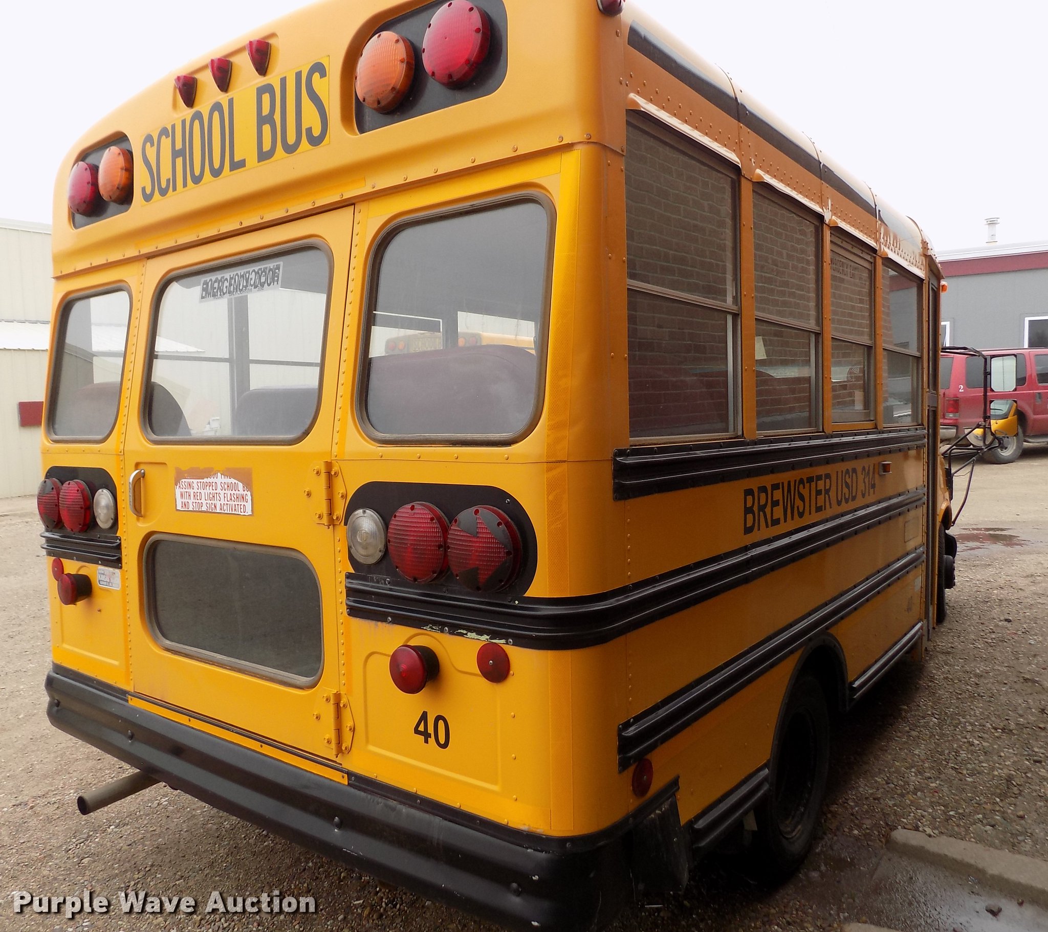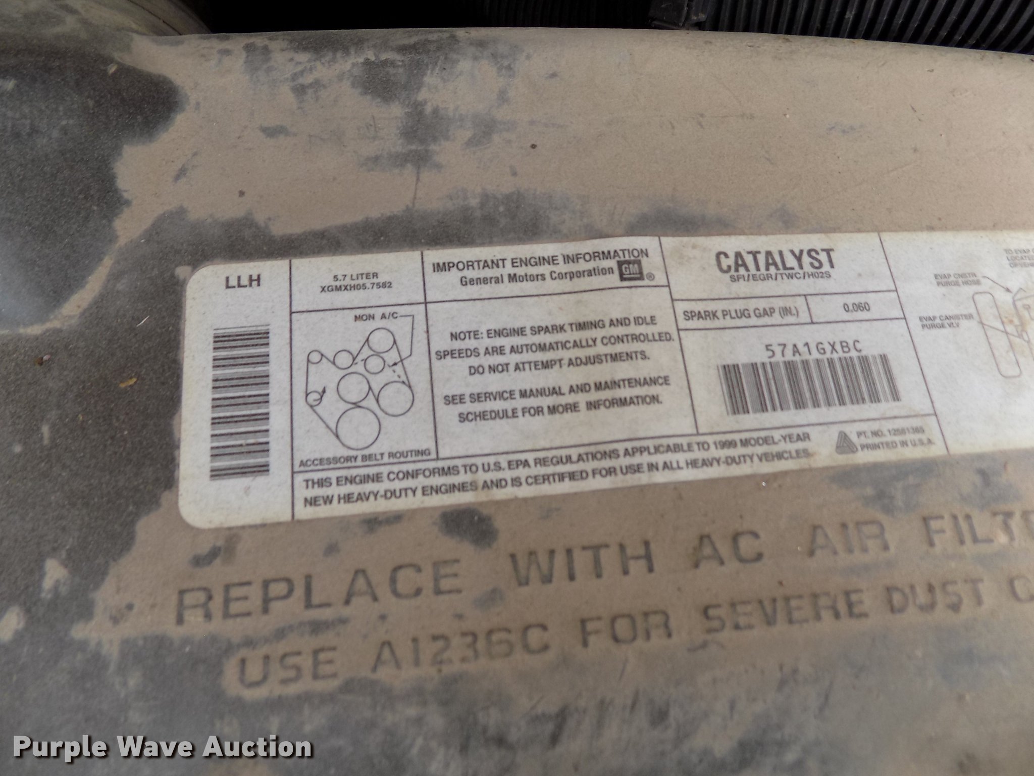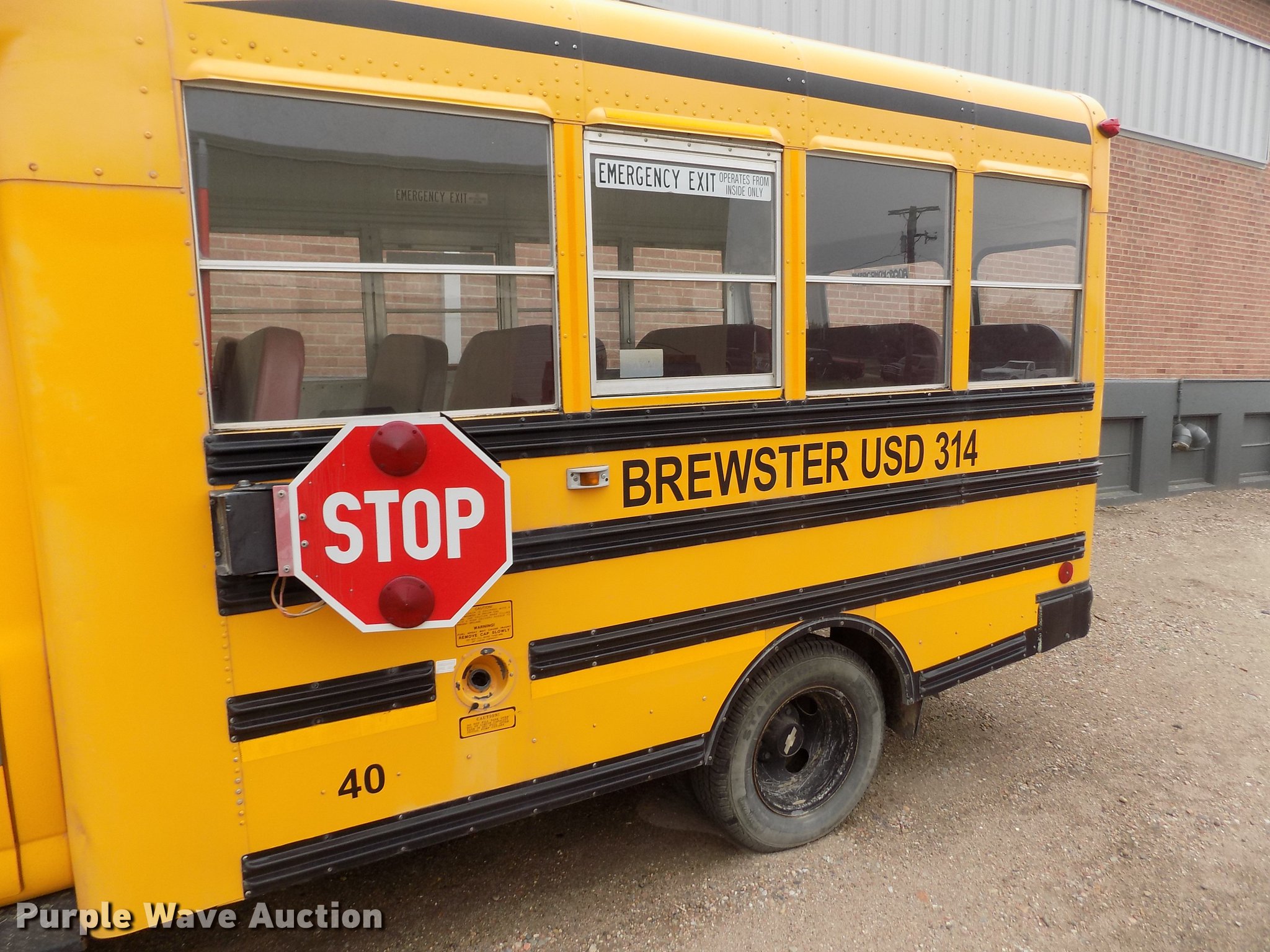 Purple Wave is selling a used Bus in Kansas. This item is a 1999 Chevrolet Express 3500 school bus with the following: 161,488 miles on odometer, 5.7L V8 OHV 16V gas engine, Automatic transmission, Single axle, Heat, Heated mirrors, 21 passenger capacity, Ceiling, rear, and side emergency exits, Emergency door alarms, Beacon light, Lighted stop sign, Blue Bird Microbird body, Spring suspension, Hydraulic brakes, 225/75R16 tires, GVWR 10,000 lbs, Decals will be removed prior to auction, Engine electrical issues, Dead batteries, Fuel cap missing, Unit must be towed or hauled