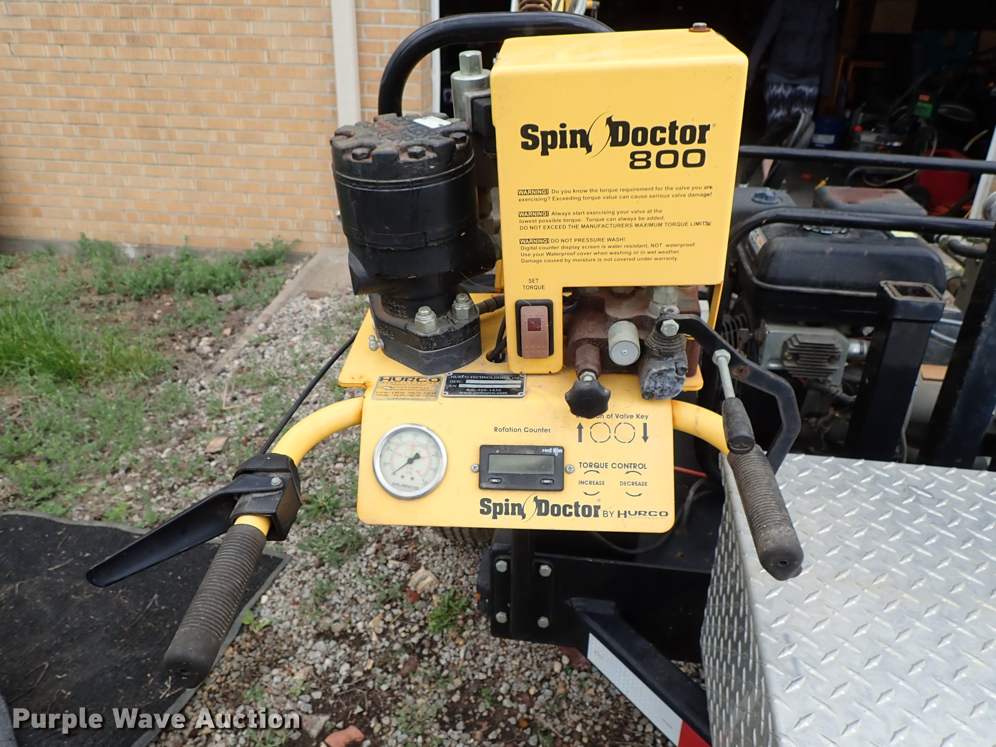 Purple Wave is selling a used Tools in Kansas. This item is a 2010 Hurco Spin Doctor 800 valve exerciser with the following: Subaru gas engine, 13.5 HP, Rotation counter, Hydraulic boom, 54" x 51" trailer, Ball hitch, GVWR 1,000 lbs, Serial 022210-1251-800