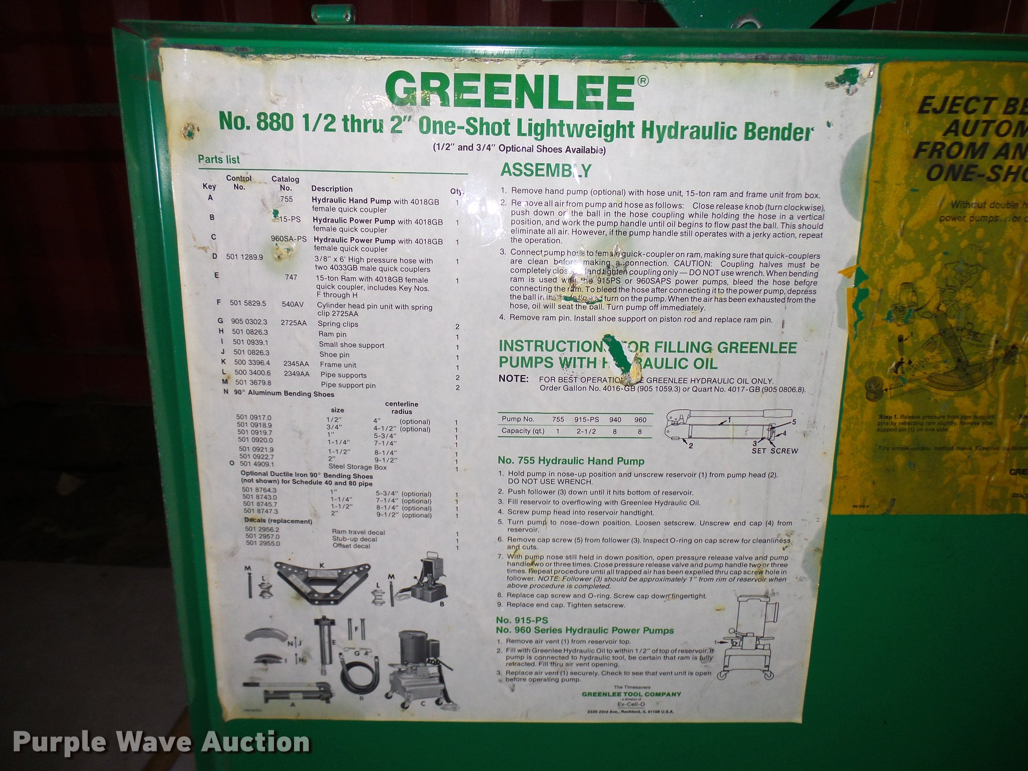 Greenlee 880 bender | SOLD! June 5 Vehicles and Equipment Auction