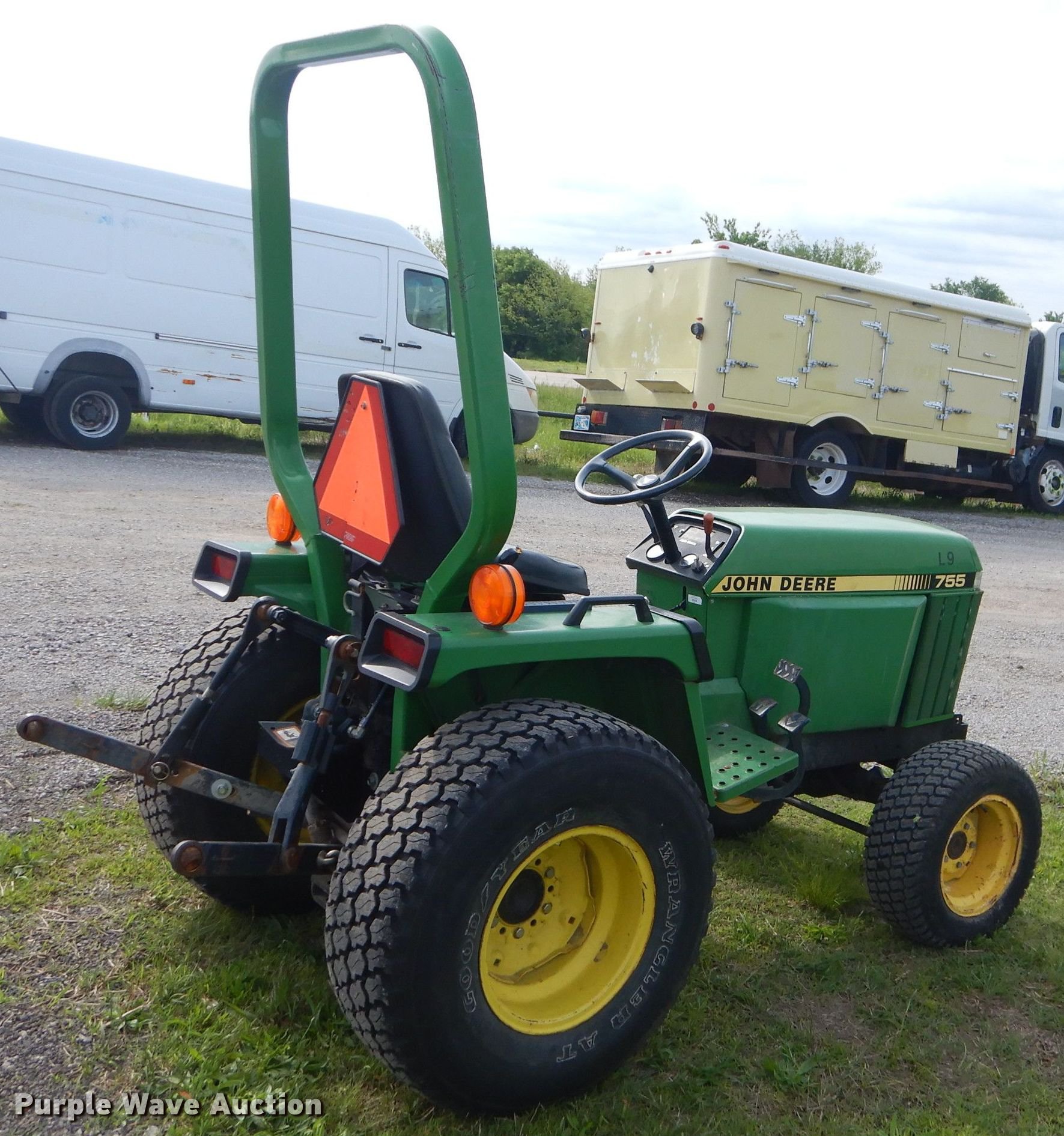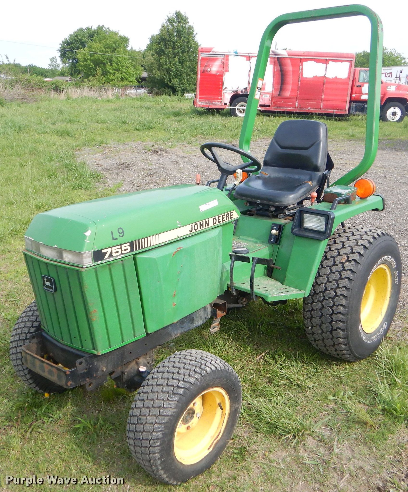 Purple Wave is selling a used Tractor in Oklahoma. This item is a John Deere 755 tractor with the following: 14 hours on meter, Yanmar three cylinder diesel engine, Hydrostatic transmission, Differential lock, Three point, 540 PTO, 60" wheelbase, 23x8.50-12 front tires, 33x12.50R15 rear tires, Unit# L9