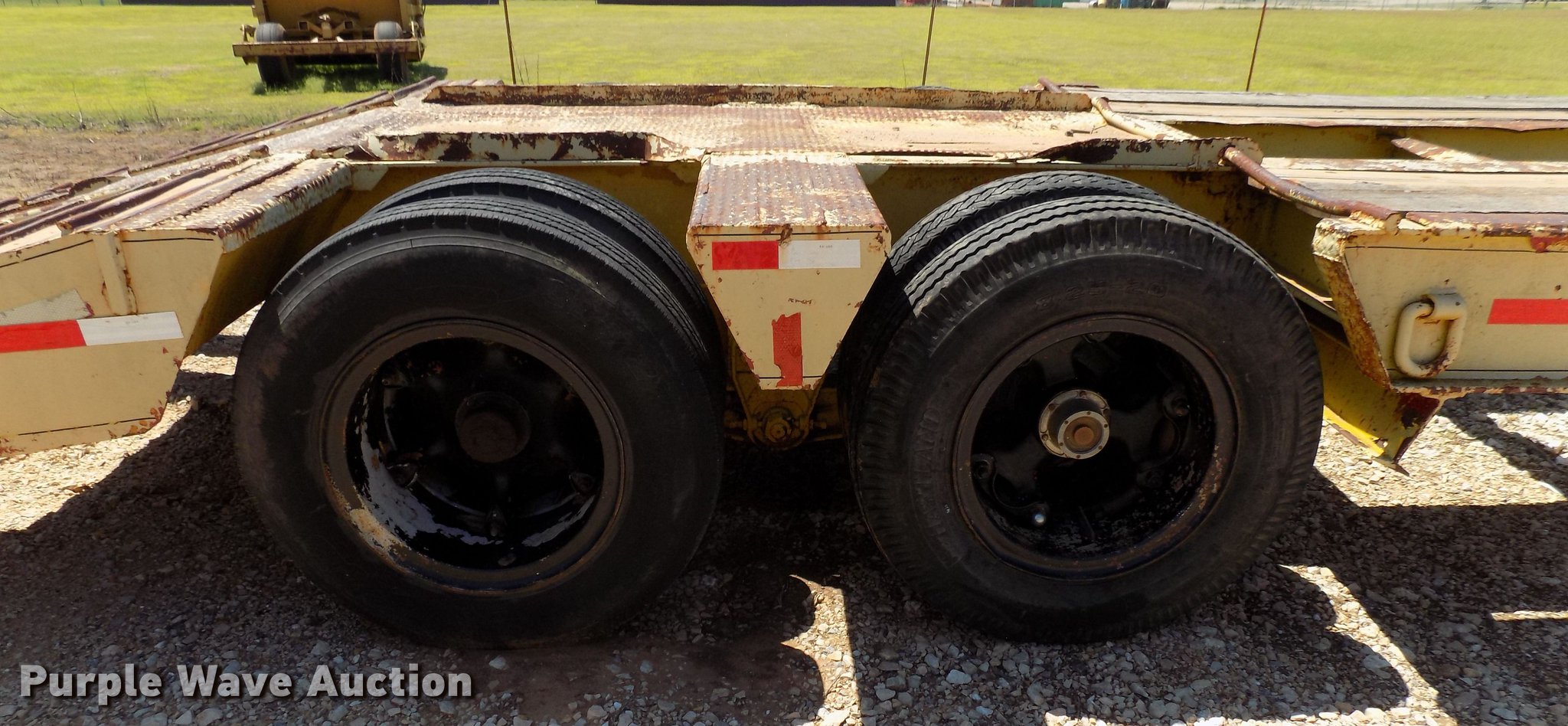Purple Wave is selling a used Equip. Trailer in Oklahoma. This item is a 2013 Shopbuilt lowboy equipment trailer with the following: 45'L x 96"W wood deck, Single leg landing gear, Spring suspension, Air brakes, Tandem axle, Steel wheels, 8.25R20 tires