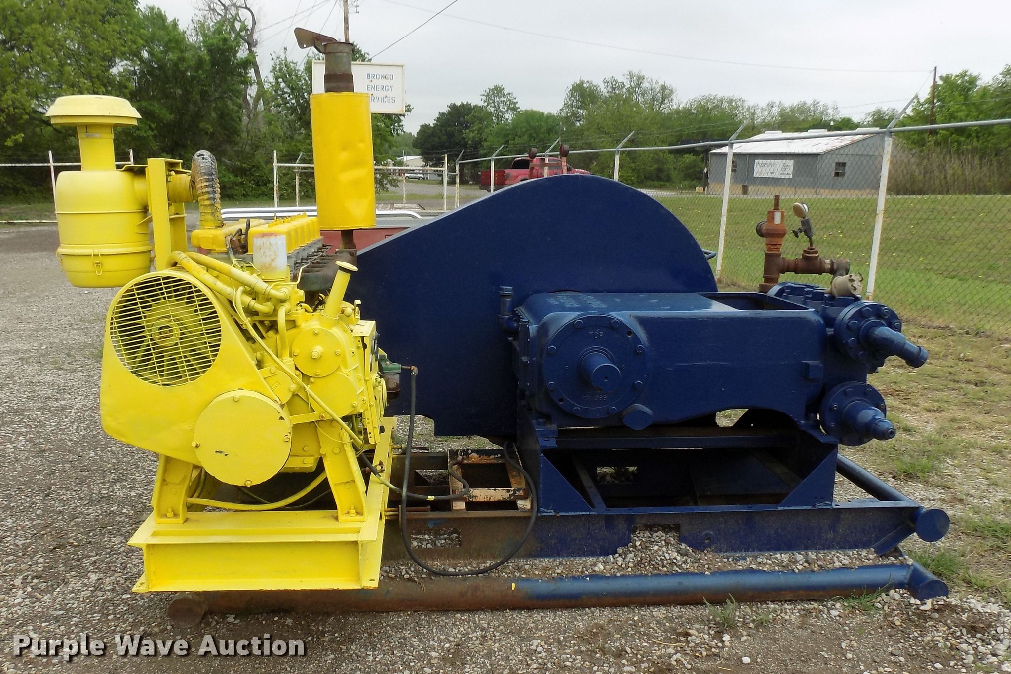 Purple Wave is selling a used Pump in Oklahoma. This item is a Gardner Denver PX172 triplex pump with the following: 3,338 engine hours on meter, Six cylinder diesel engine, 110 HP, 4" outlet, Twin disc clutch