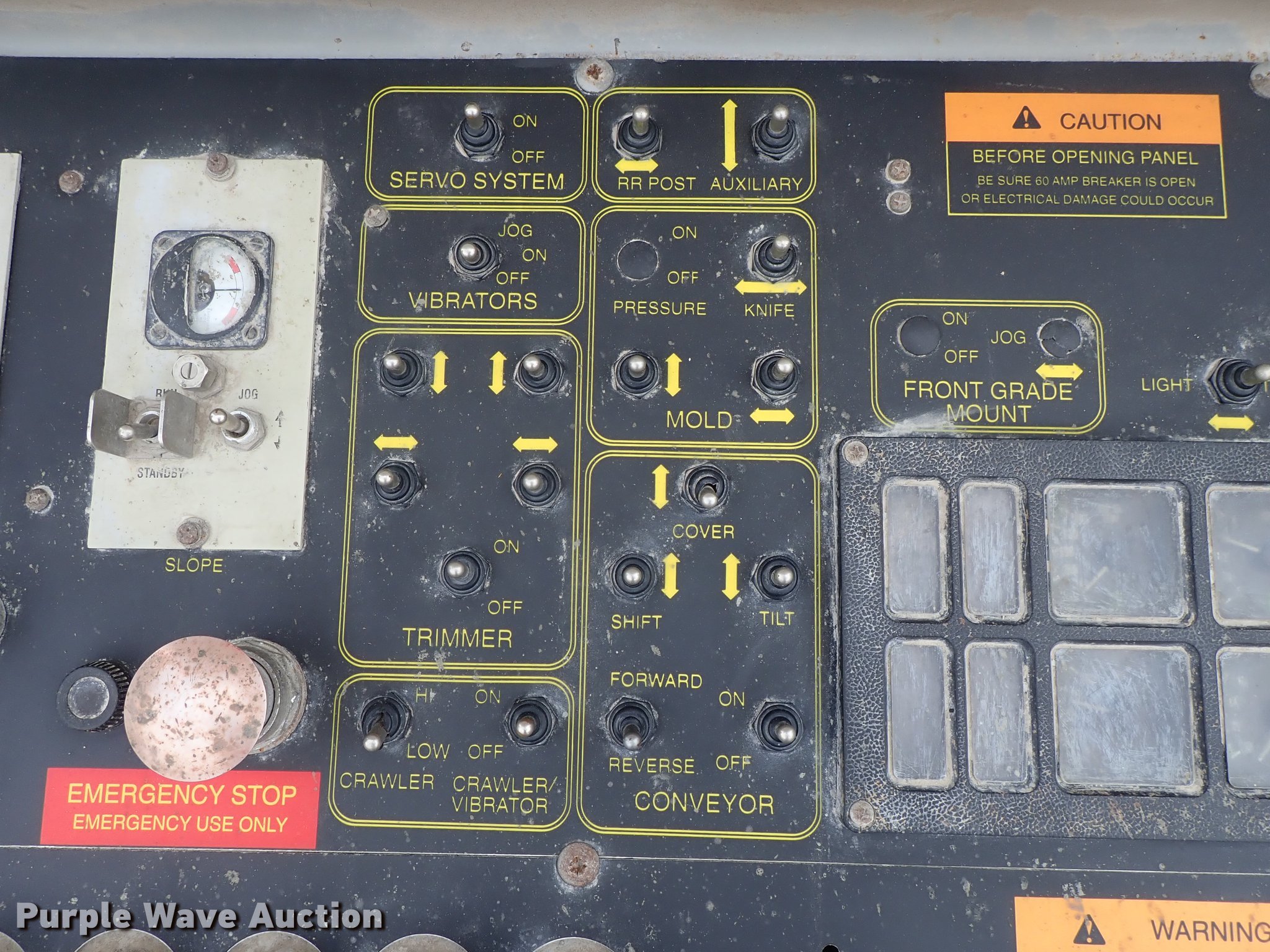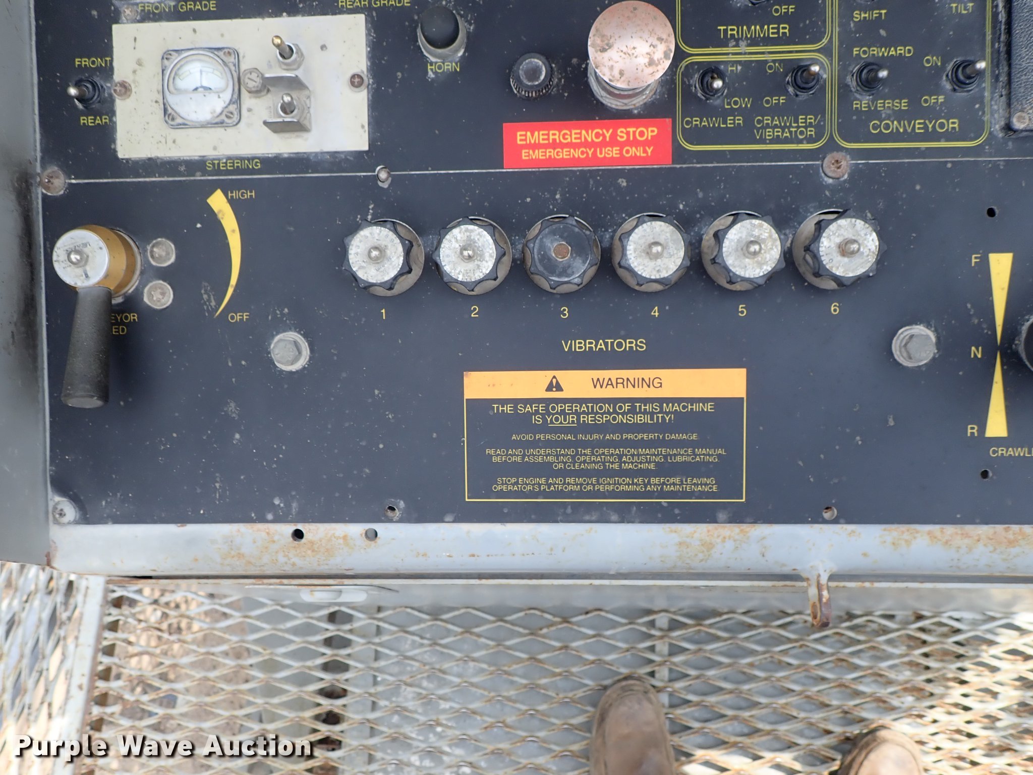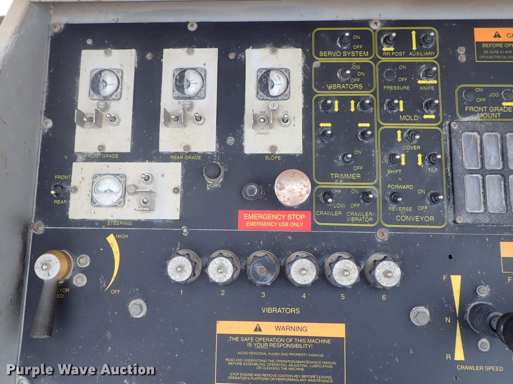 Purple Wave is selling a used Concrete Paver or Curb Machine in Kansas. This item is a Power Curber 5700-B curb machine with the following: 1,198 hours on meter, Four cylinder diesel engine, Hydrostatic transmission, 13'L x 16" diameter feed auger, 42"W x 12" diameter trimmer auger, Adjustable conveyor speed, 12"W steel tracks, Serial 57B1197886