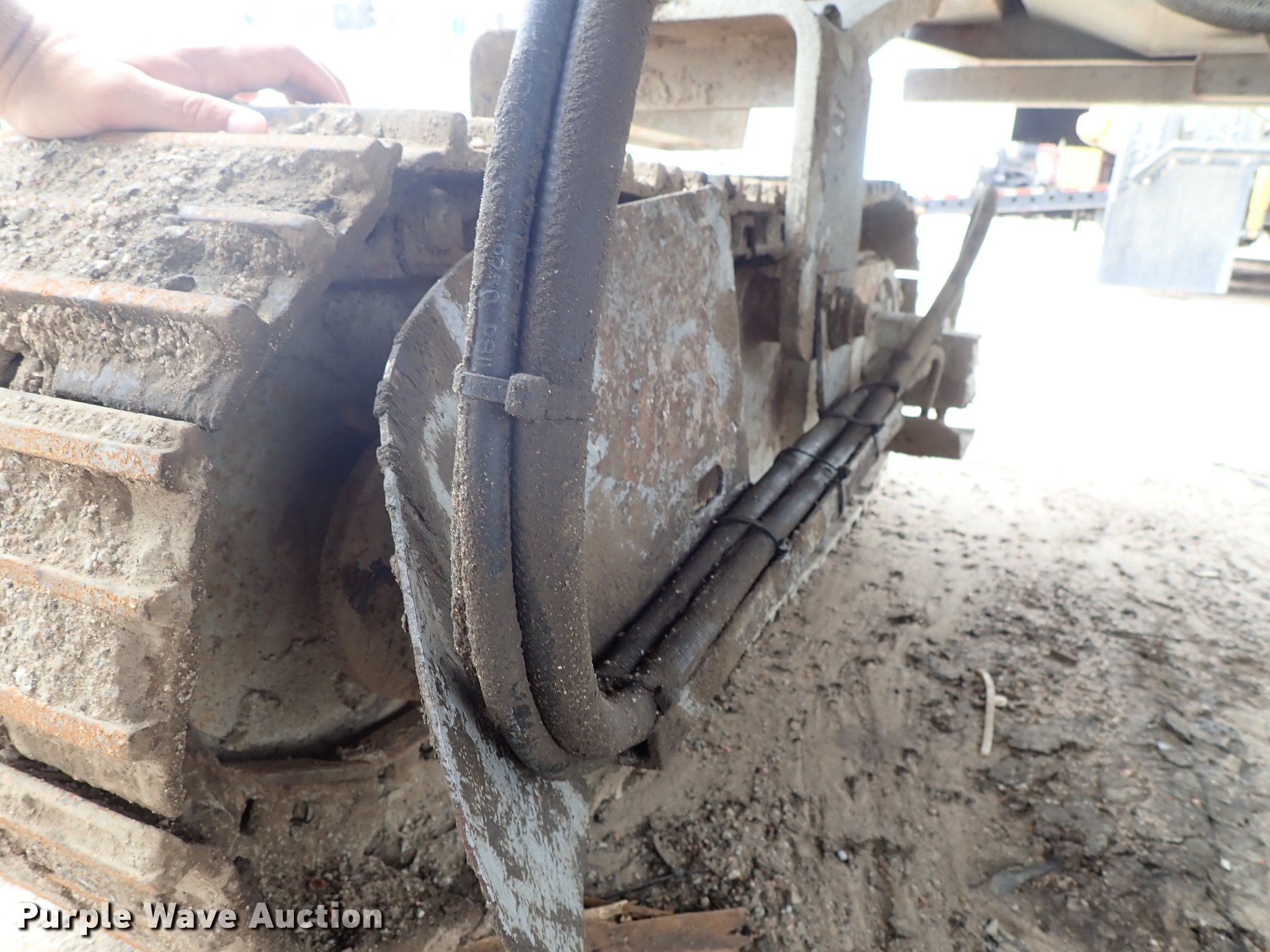 Power Curber 5700-B curb machine. 1,198 hours on meter, Four cylinder diesel engine, Hydrostatic transmission, 13'L x 16" diameter feed auger, 42"W x 12" diameter trimmer auger, Adjustable conveyor speed, 12"W steel tracks, Serial 57B1197886. Kansas Paving. 4880 N Broadway. Park City, KS 67219