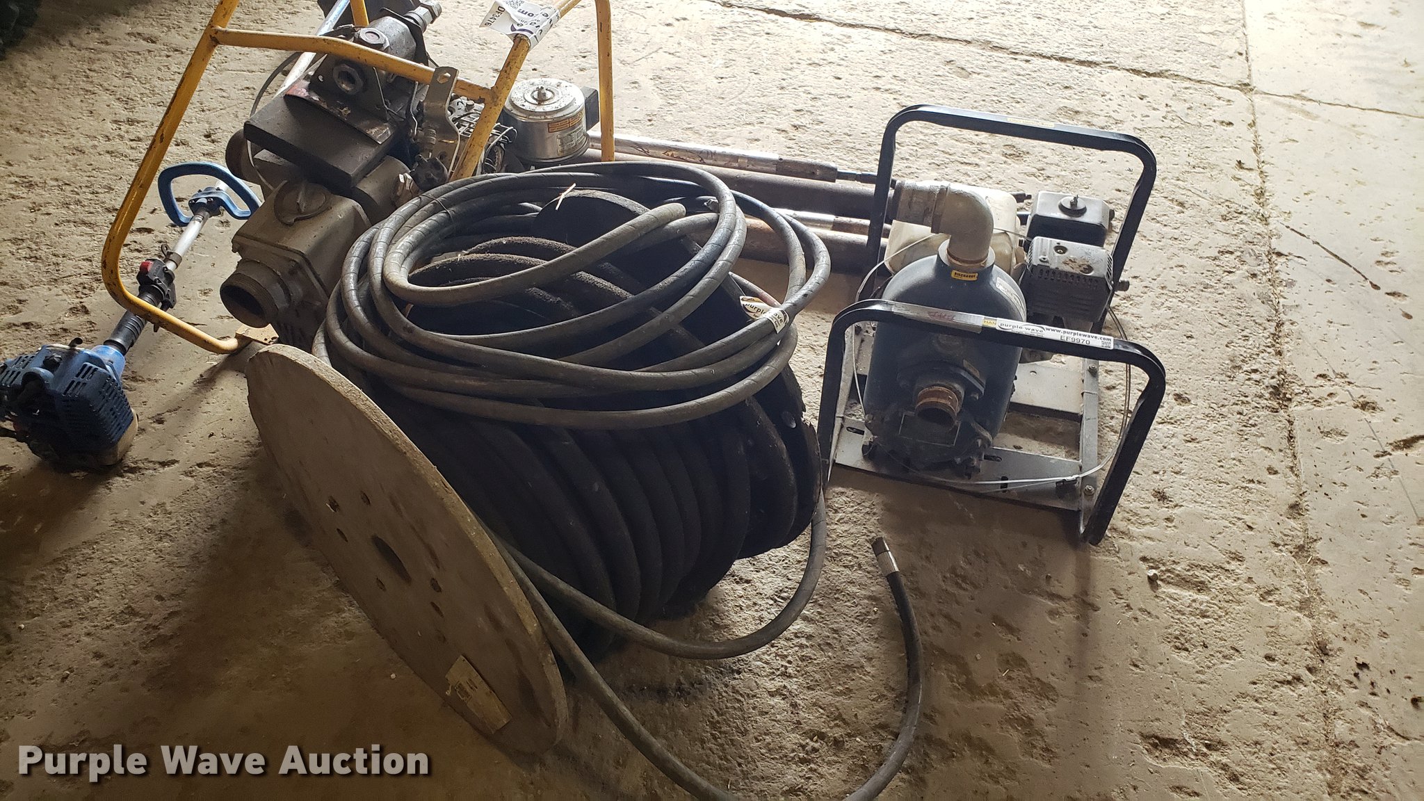 Purple Wave is selling a used Tools in Missouri. This item is a Tools with the following: (2) 2" water pumps, Honda gas engine, Unknown operating conditions, 3" pump, Briggs & Stratton gas engine, 8 HP,, Hydraulic hose, Used with piercing tools, (4) piercing units, Lennox heater, Natural gas fired, 176,000 BTU, 13'L x 51"W utility rack, Tamper, Briggs & Stratton 900 gas engine, 24"L x 21"W plate