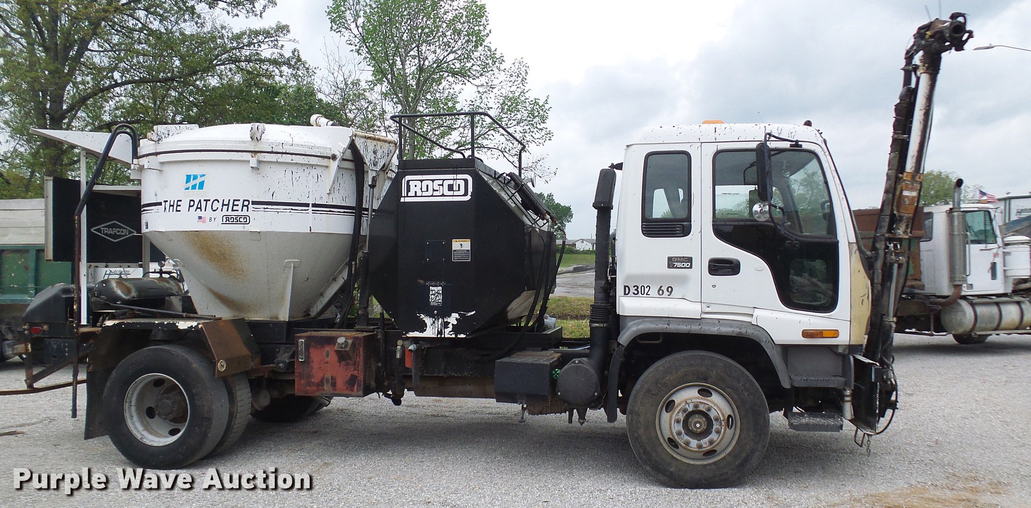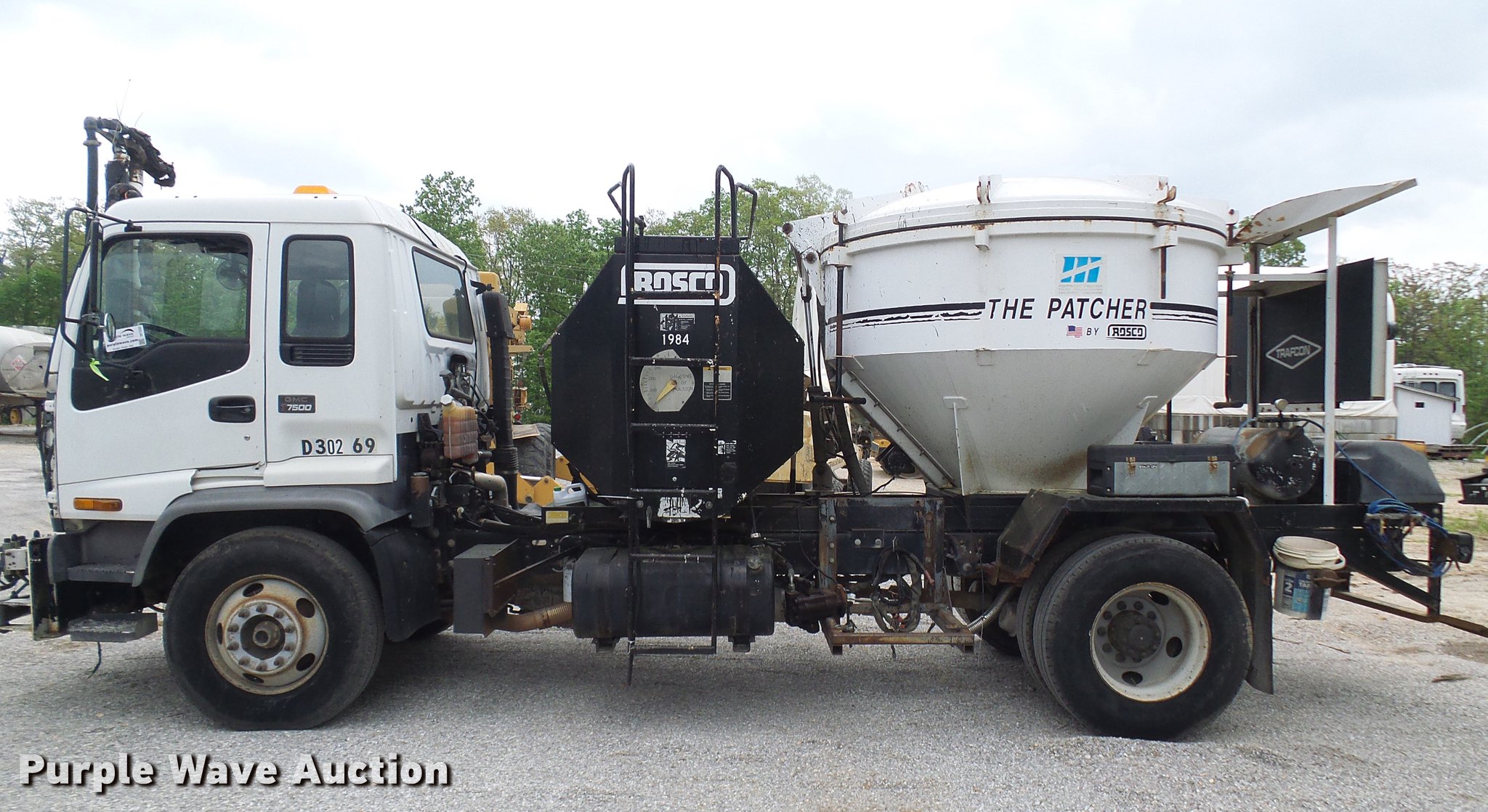 Purple Wave is selling a used Oil Distributor Truck in Missouri. This item is a 2002 GMC T7500 asphalt patch truck with the following: 99,204 miles on odometer, Caterpillar 3126 7.2L L6 diesel engine, Automatic transmission, Single axle, AC and heat, Suspension seat, PTO, Rosco RA300 patcher bed, 400 gallon capacity, Ladder, Serial 98512, Spring suspension, Air brakes, 11R22.5 tires, Unit# D30269